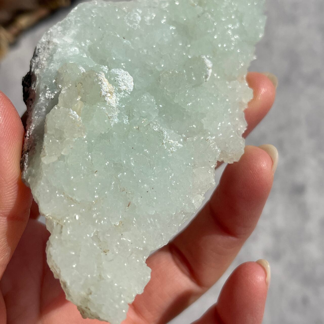 みずみずしい淡いグリーン色が魅力のインド産プレナイト原石。
