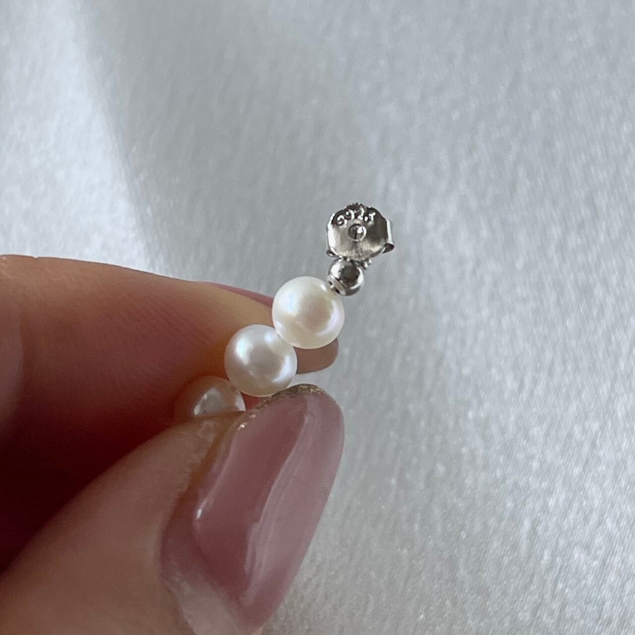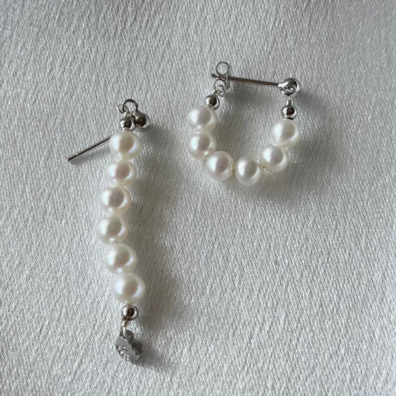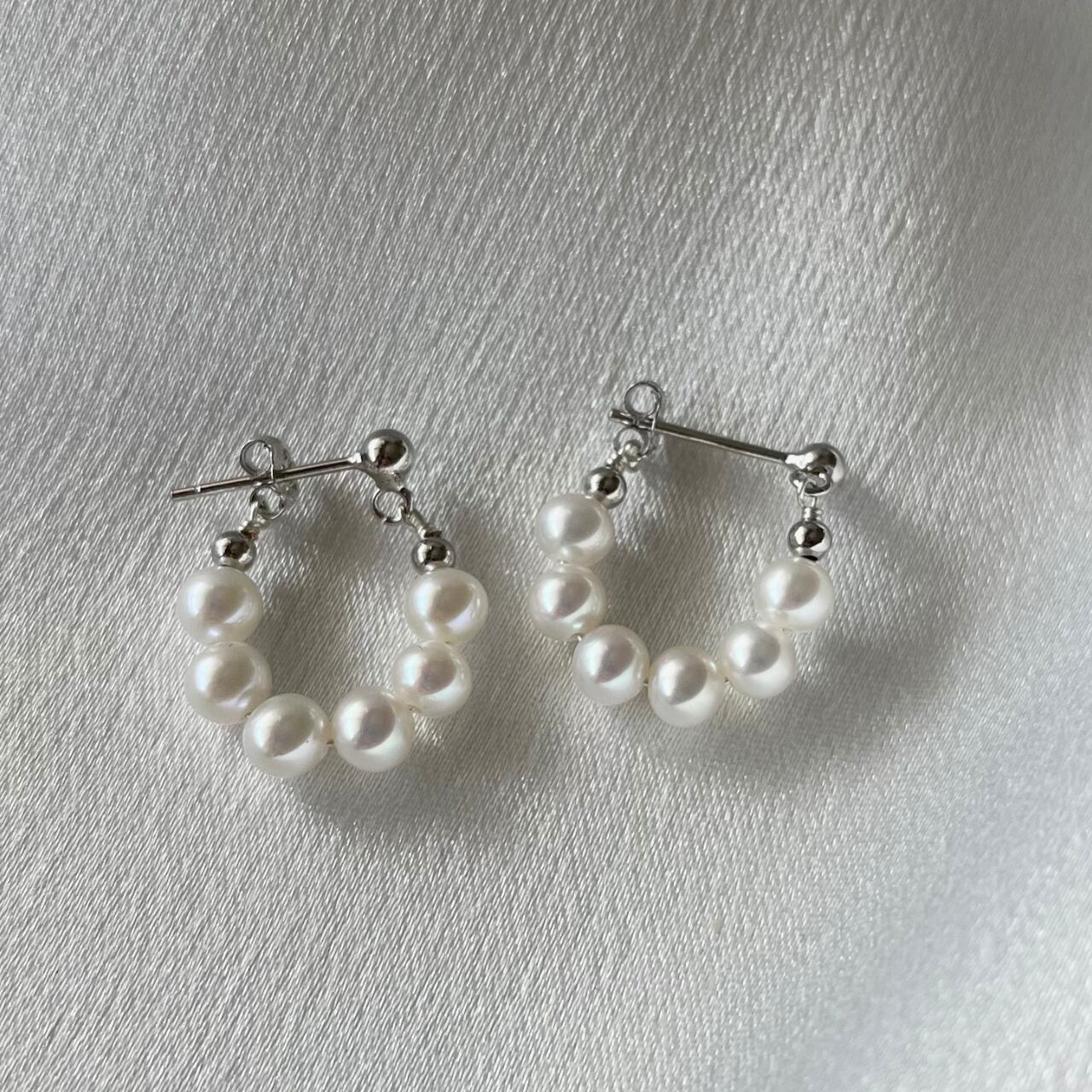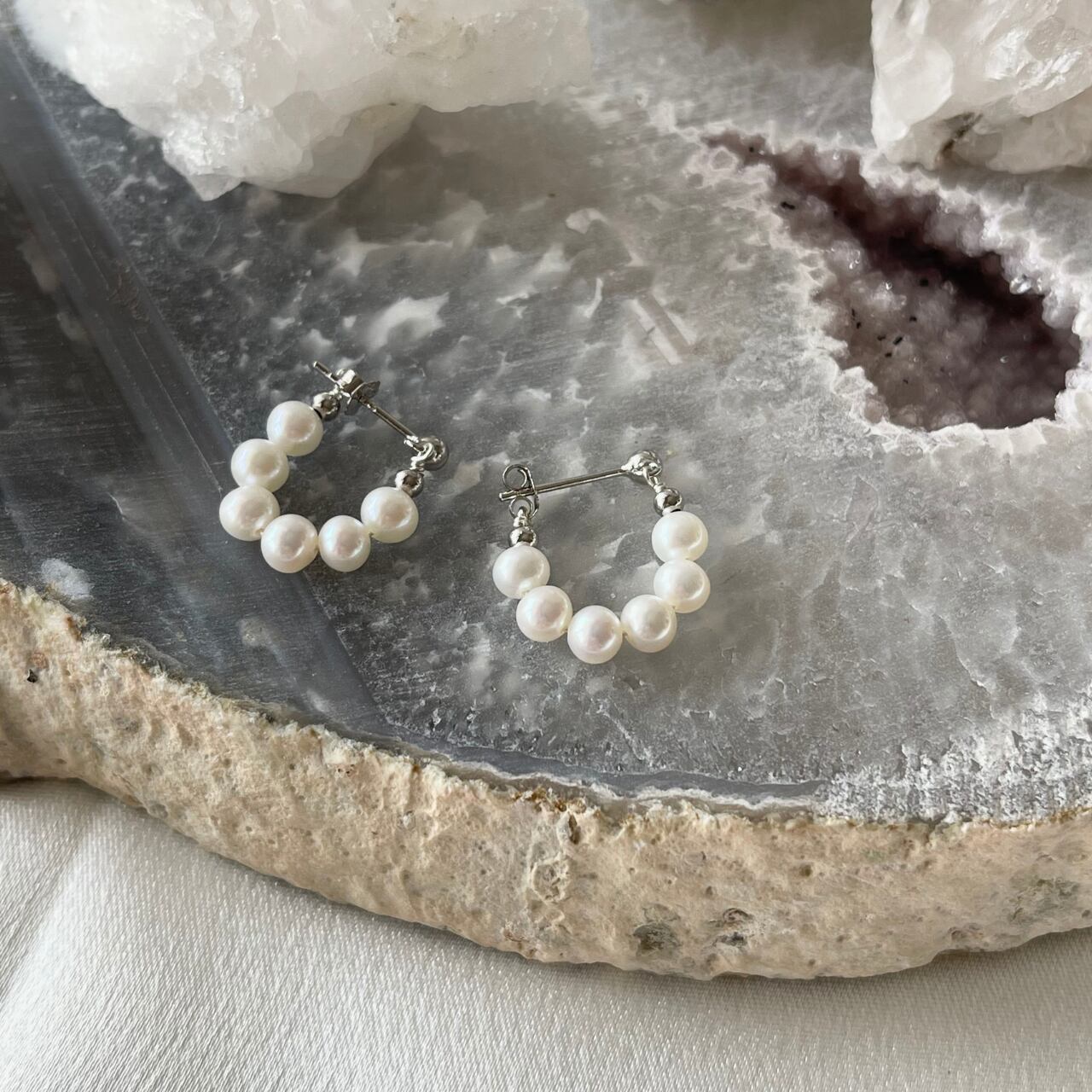 華奢なパールが可愛らしくて女性らしい、白い淡水パールのフープピアス。