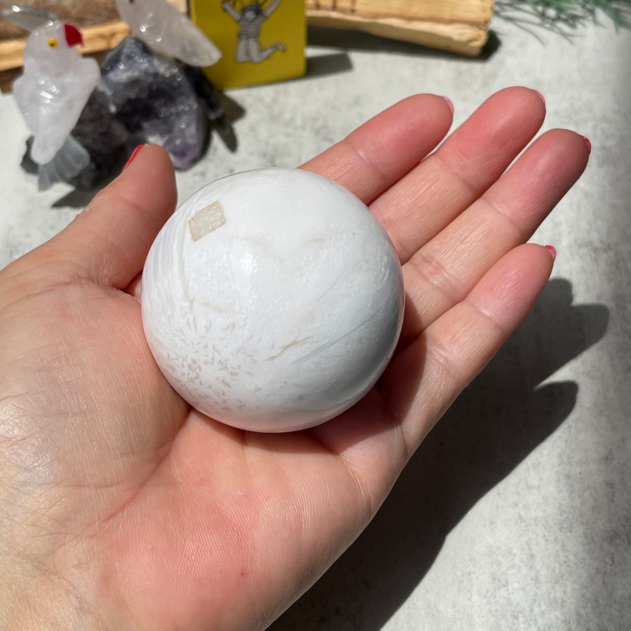 この可愛らしい真っ白な石を手にすると、気持ちがとても落ち着き、内面から美しく、きれいになれるような雰囲気を感じます。