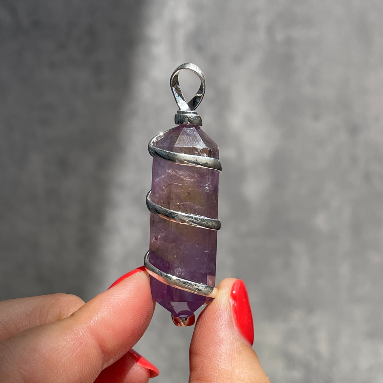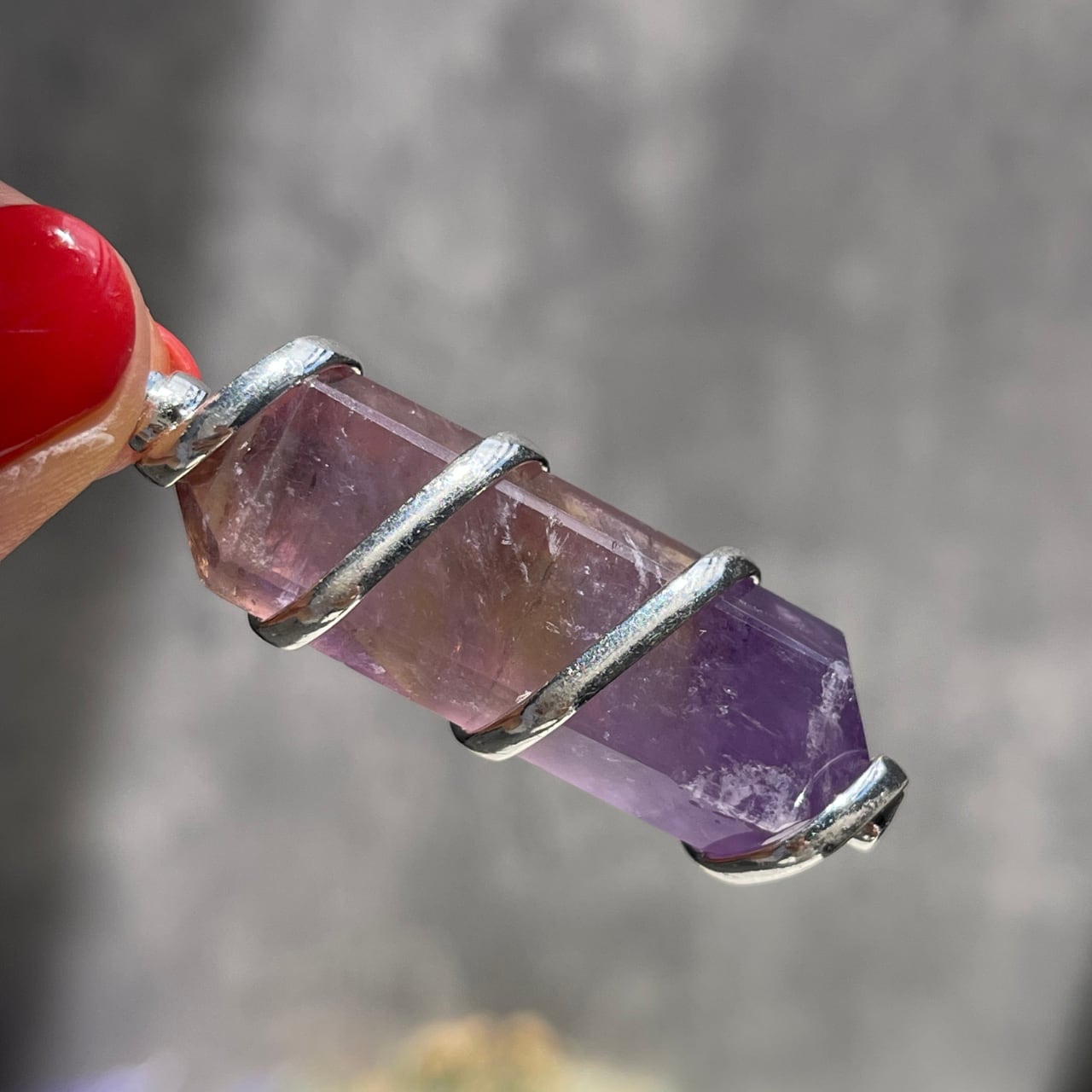 ダブルターミネーティッド(DT)形状をした、ブラジル産アメトリンのペンダントトップ。