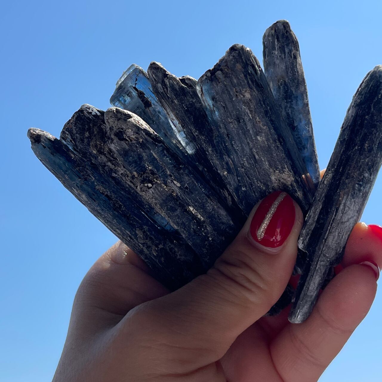 落ち着いた深い青色をした、ジンバブエ産ブルーカイヤナイトスティック。