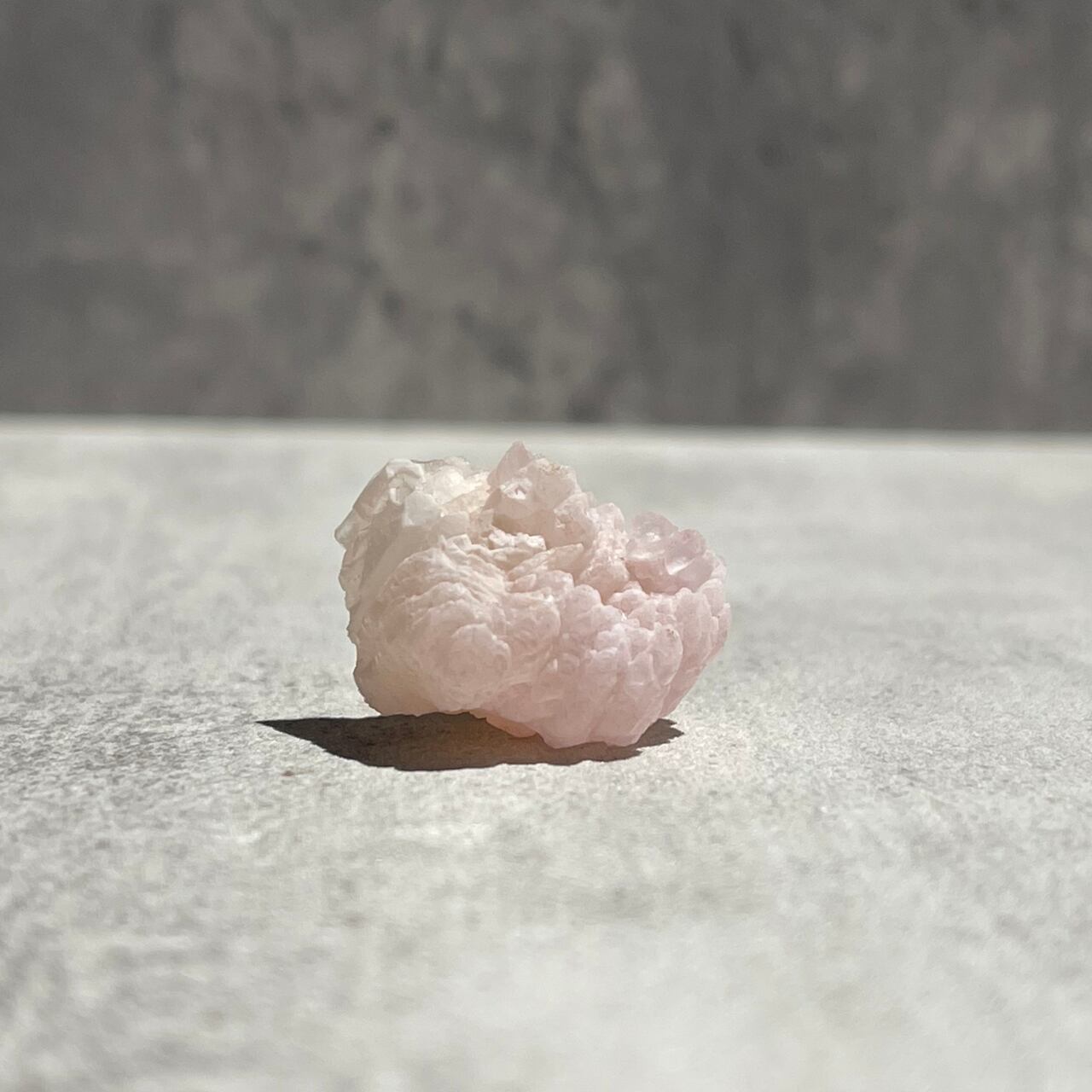 ローズクォーツは結晶ではなく、塊状で産出することがほとんどで、厳密に言うと、塊状のものは紅石英、結晶したものを紅水晶と呼んで区別しています。