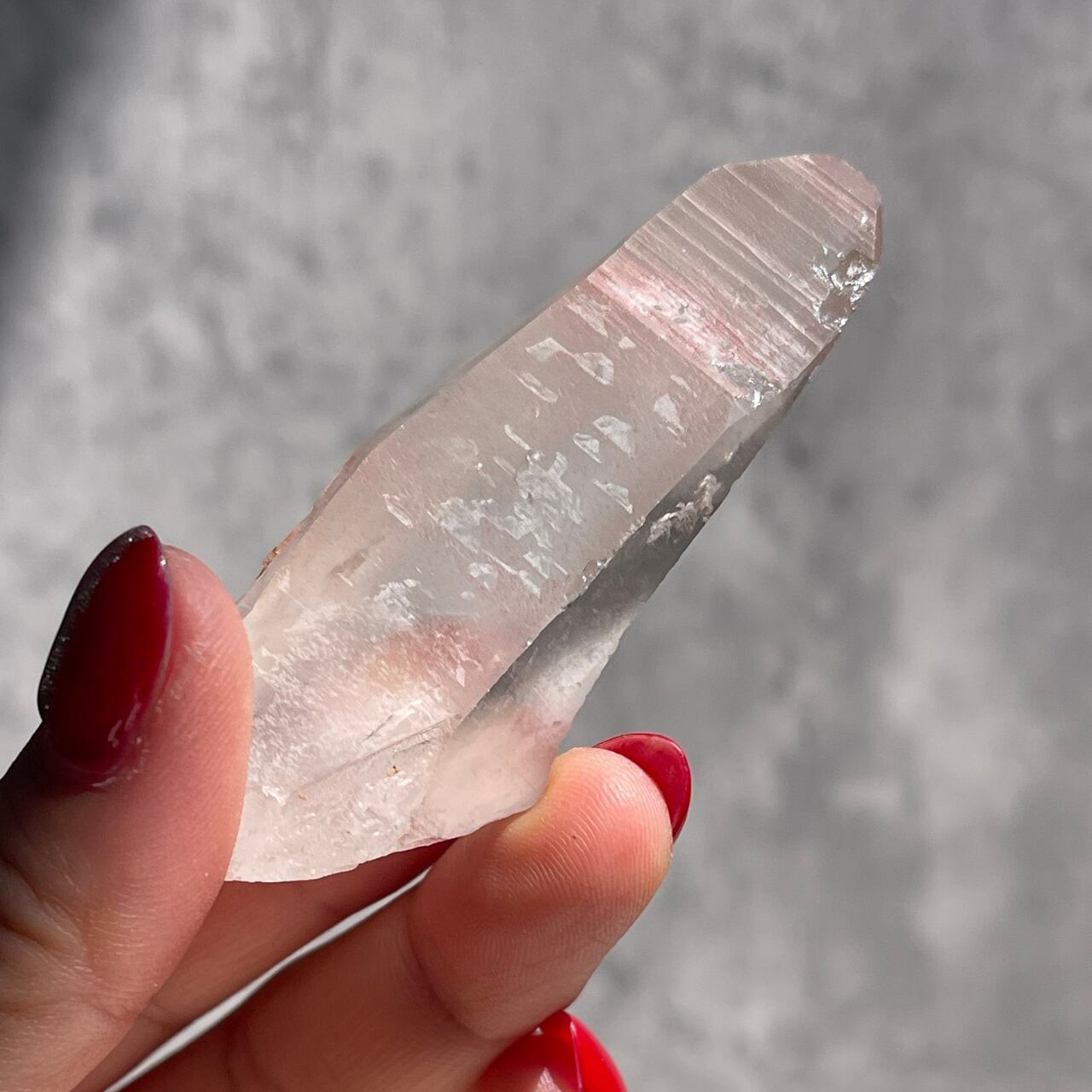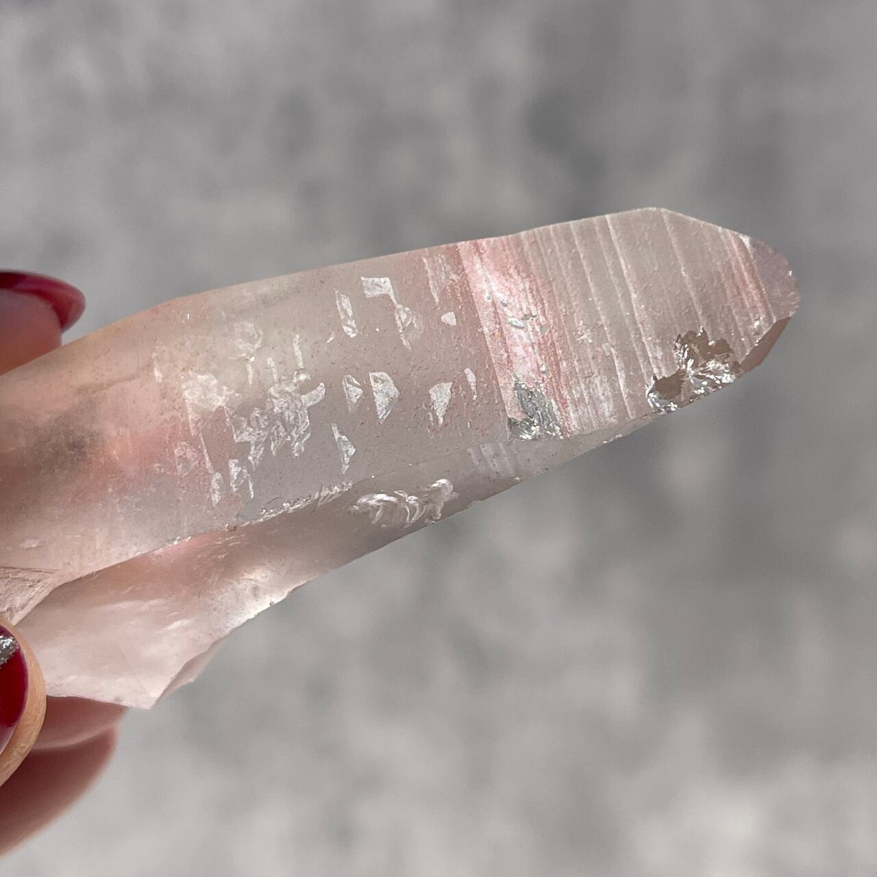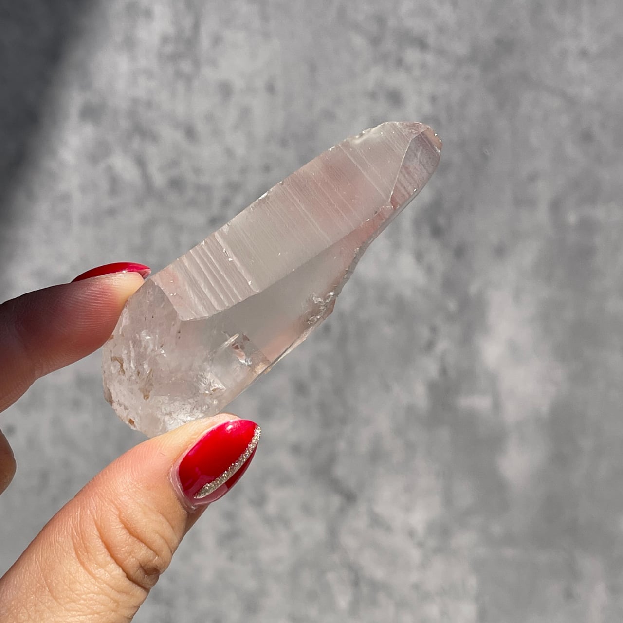 バーコードのような縞模様が見られる、淡いピンク色のブラジル・ミナスジェライス州産ピンクレムリアン。