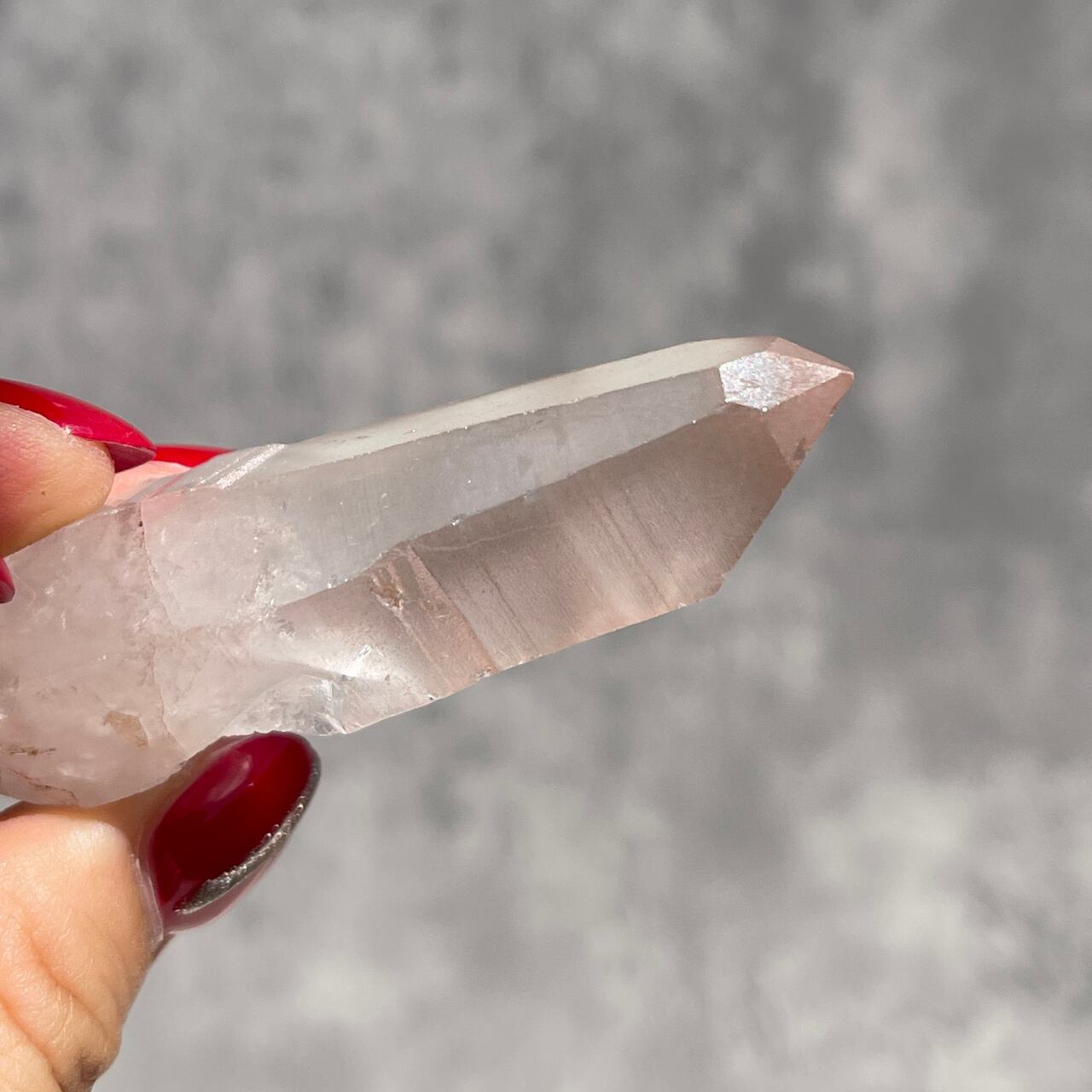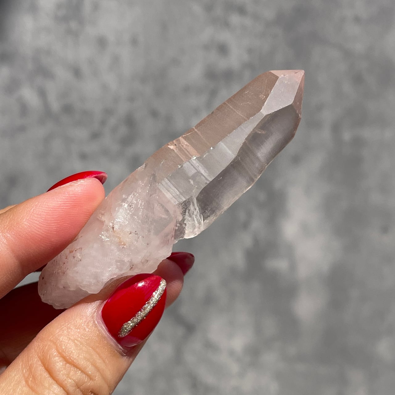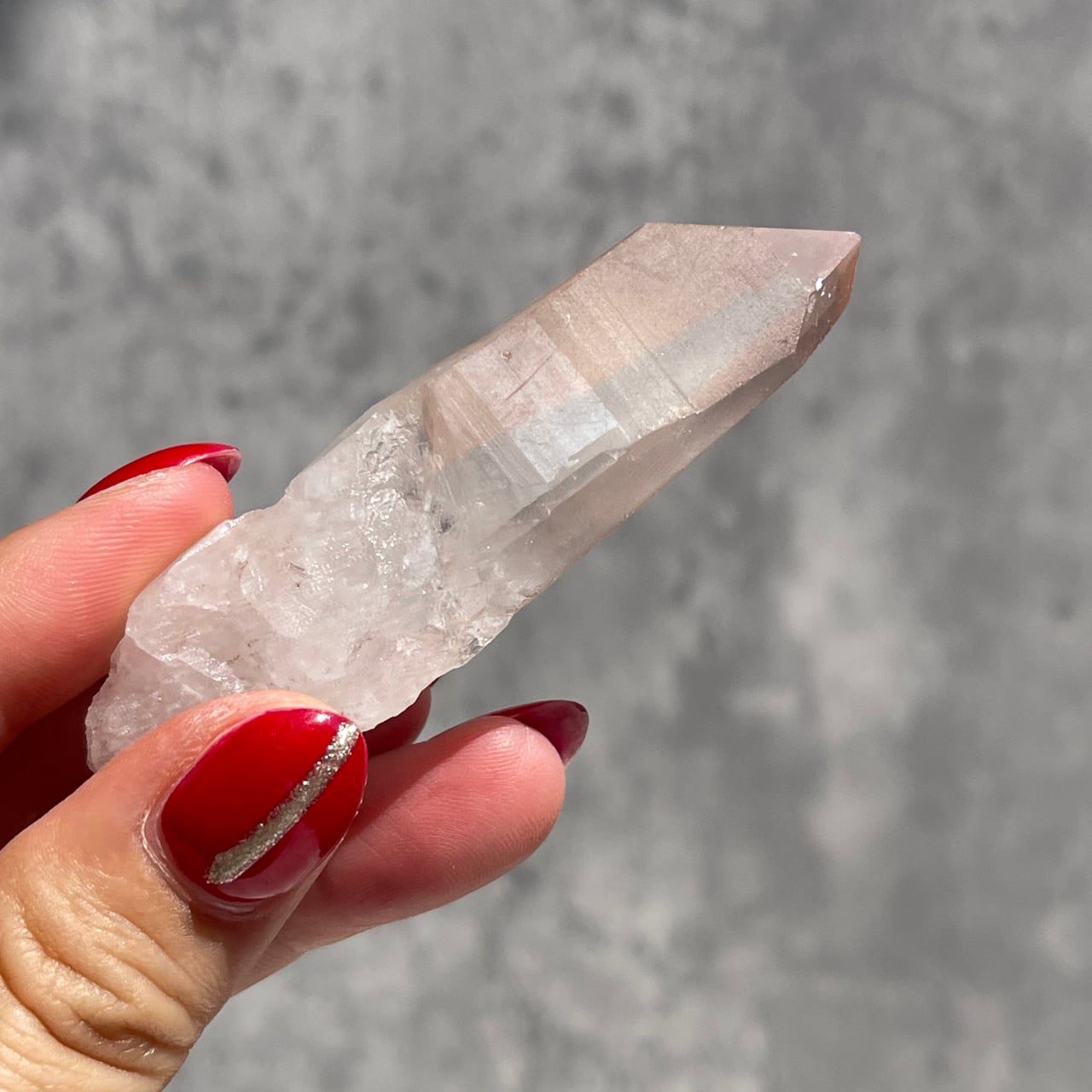 バーコードのような縞模様が見られる、淡いピンク色のブラジル・ミナスジェライス州産ピンクレムリアン。