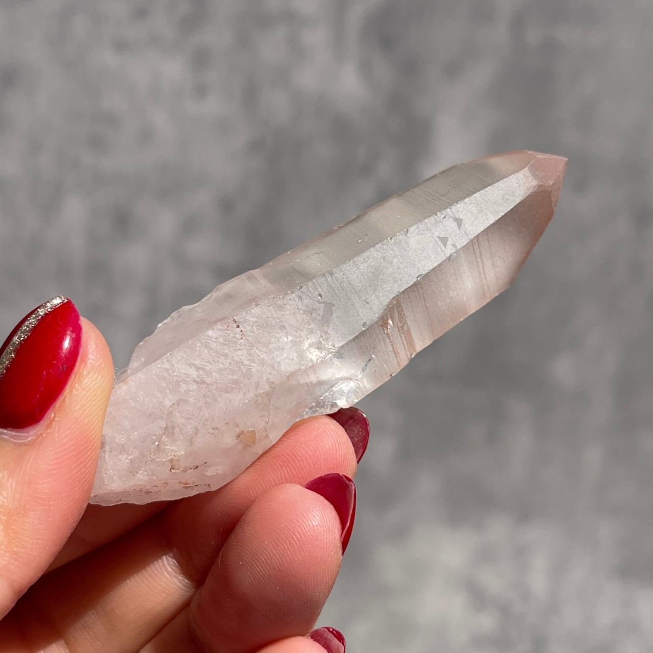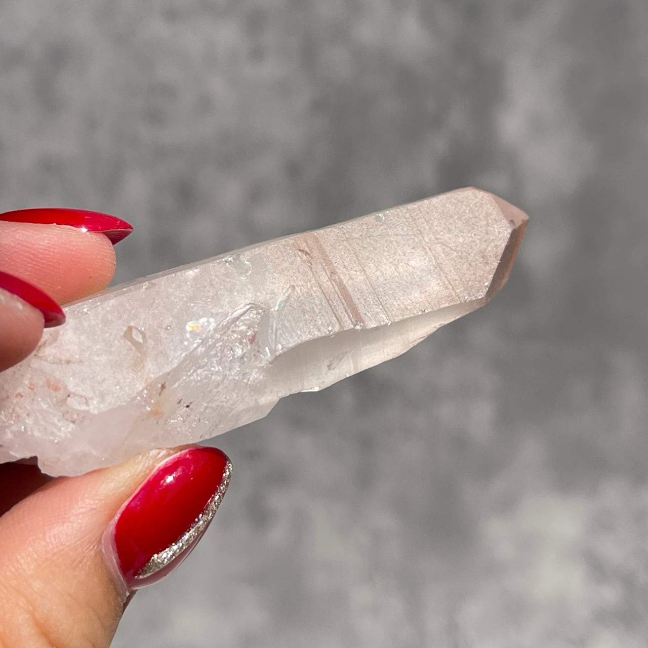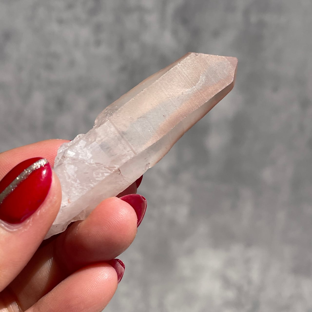 バーコードのような縞模様が見られる、淡いピンク色のブラジル・ミナスジェライス州産ピンクレムリアン。