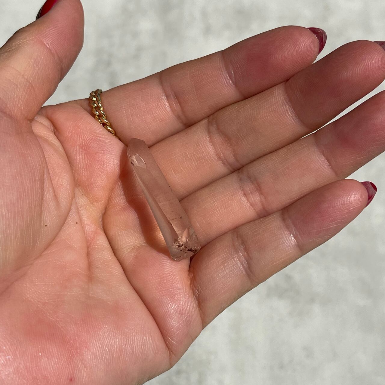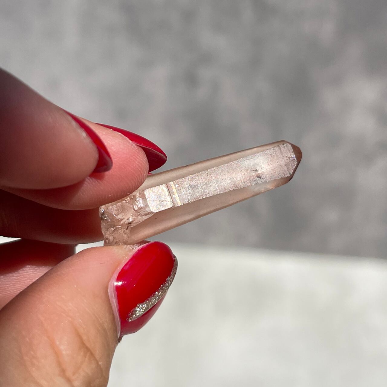 バーコードのような縞模様が見られる、淡いピンク色のブラジル・ミナスジェライス州産ピンクレムリアン。