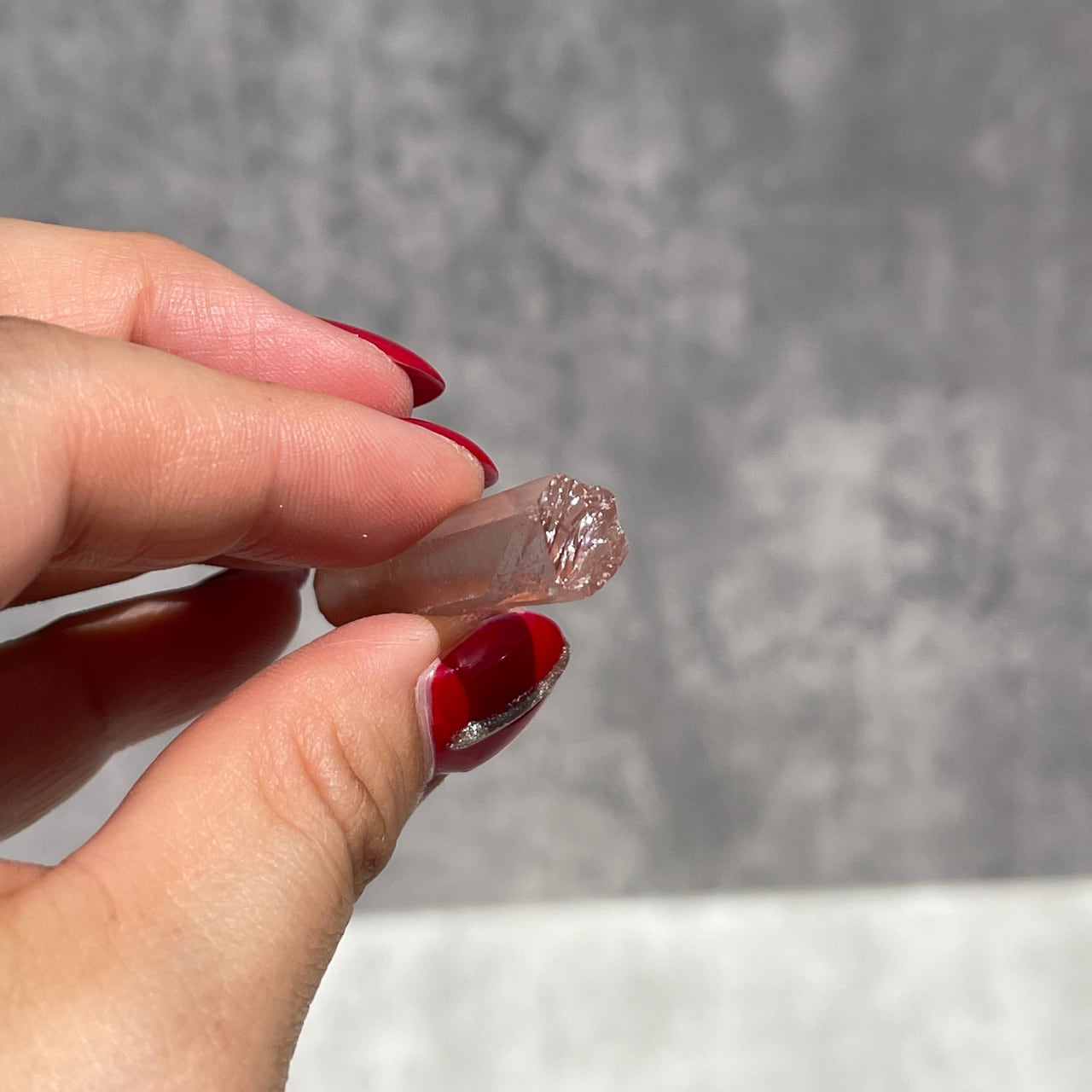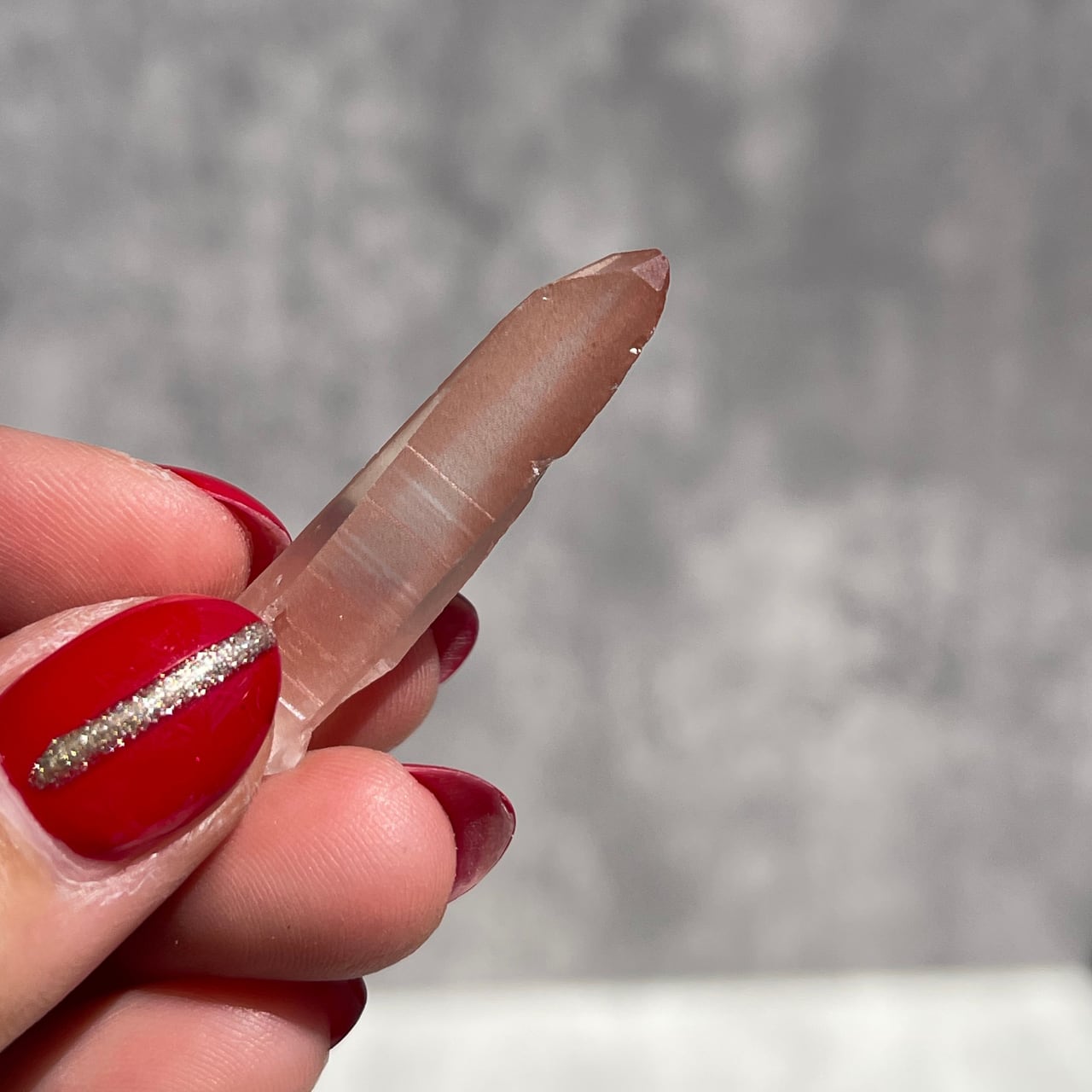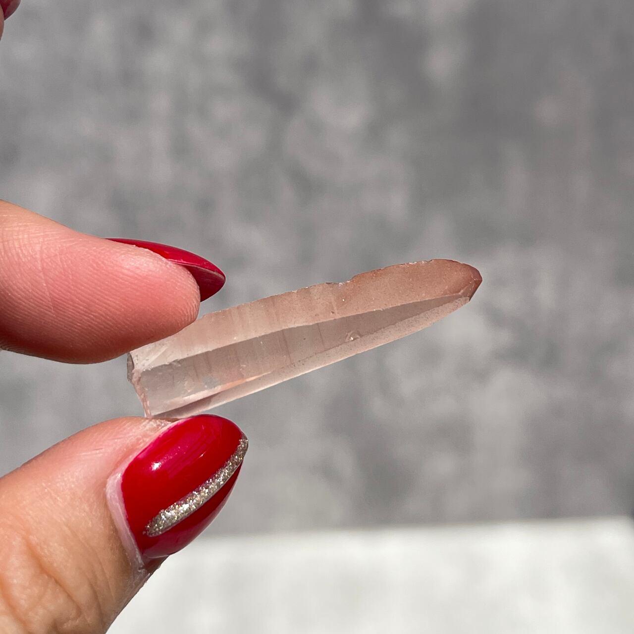 バーコードのような縞模様が見られる、淡いピンク色のブラジル・ミナスジェライス州産ピンクレムリアン。