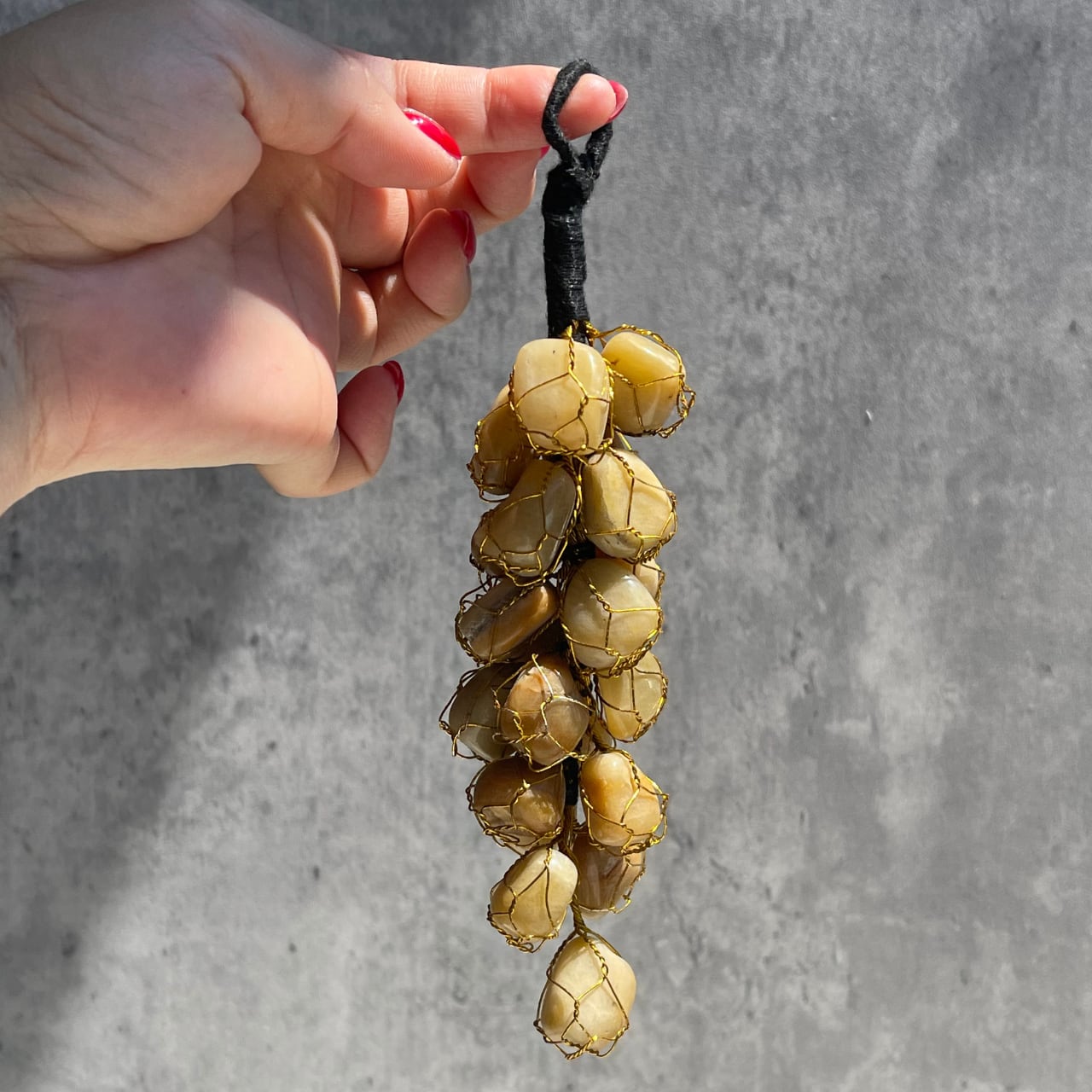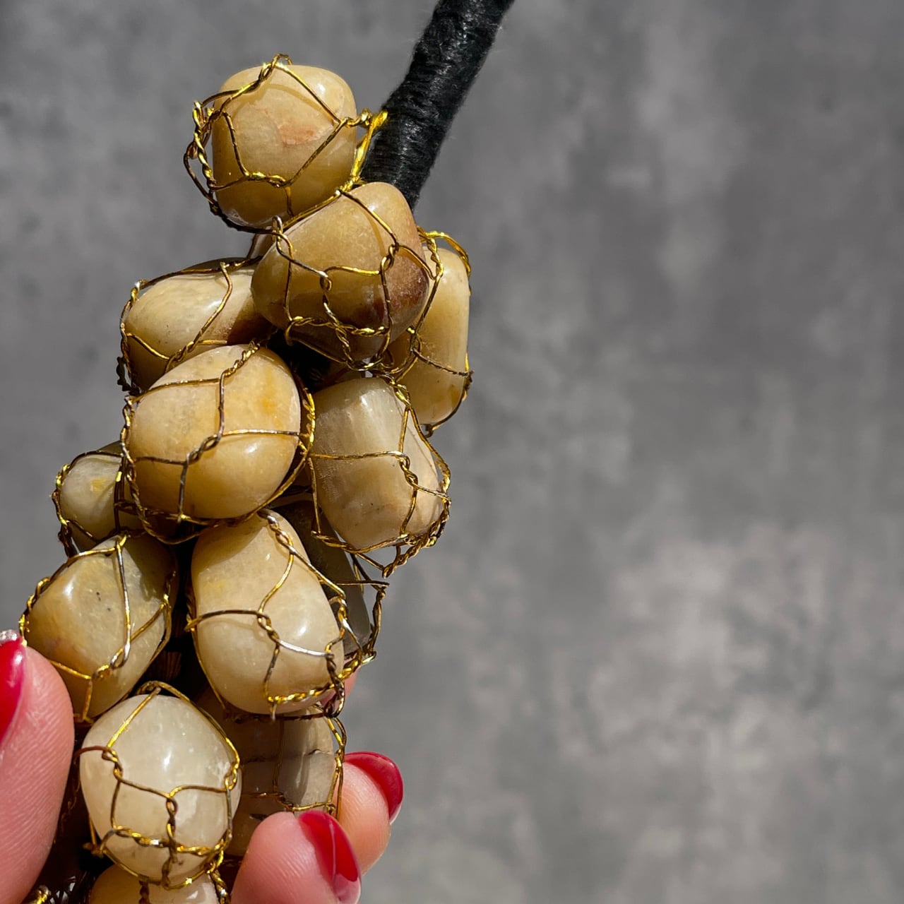 ワイヤーで1粒ずつ加工された石の集合体は、まるで葡萄のようにも見えて、とてもキュート。