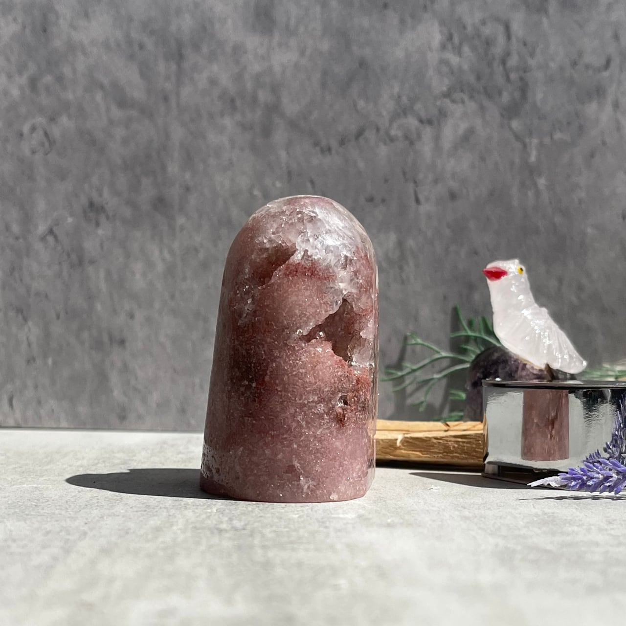 少しくすんだピンク色が可愛らしい、ブラジル産ピンクアメジストフリーフォーム。