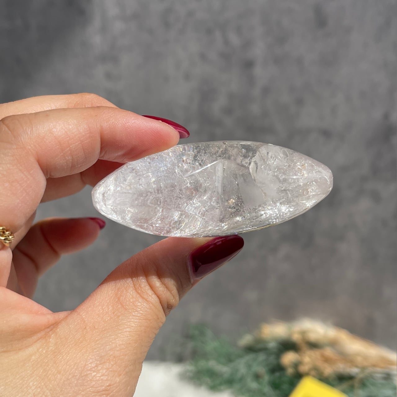 手のひらにすっぽりと収まり、滑らかな肌触りが心地よく、握りやすいサイズ感のハートのクォーツ。