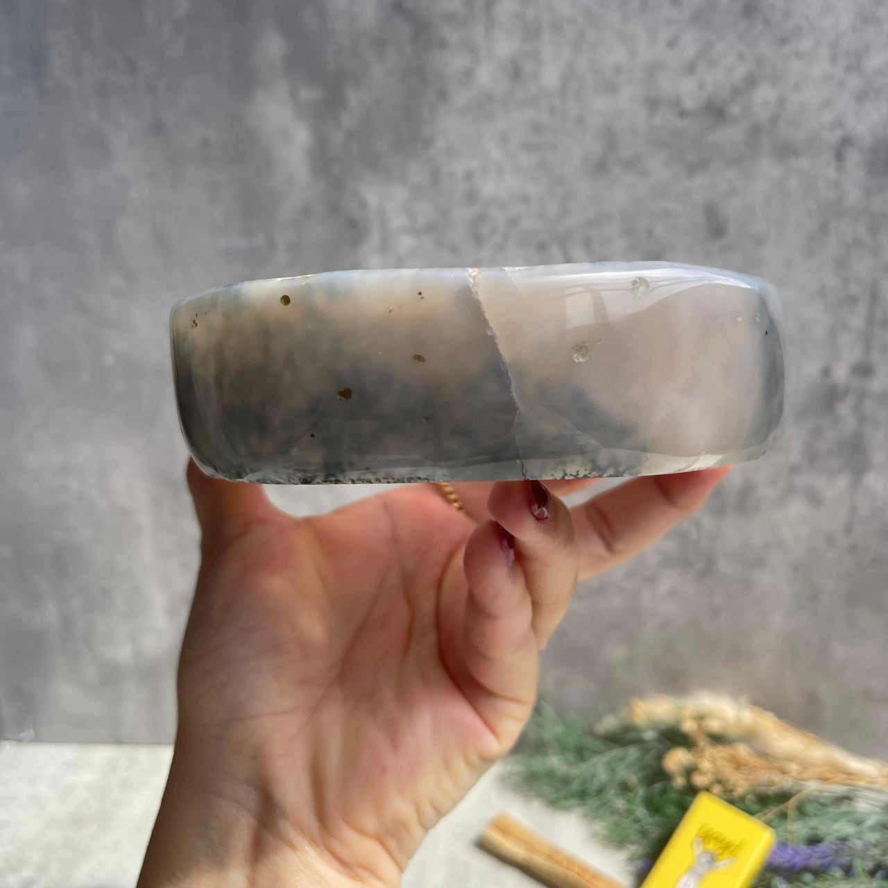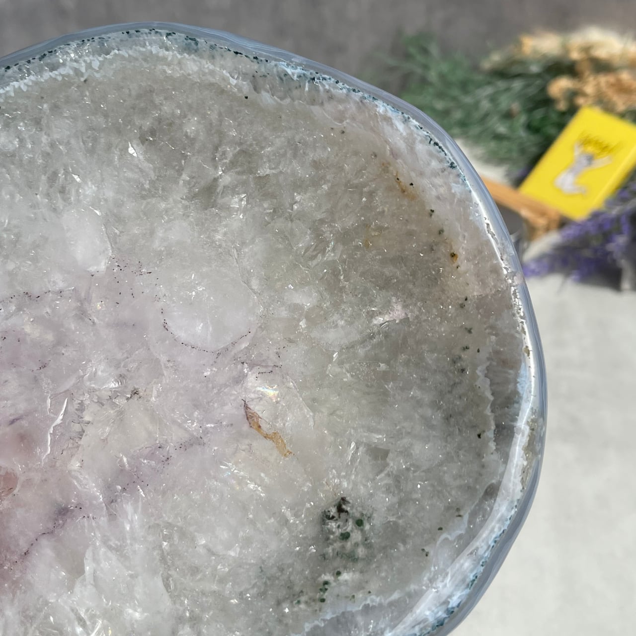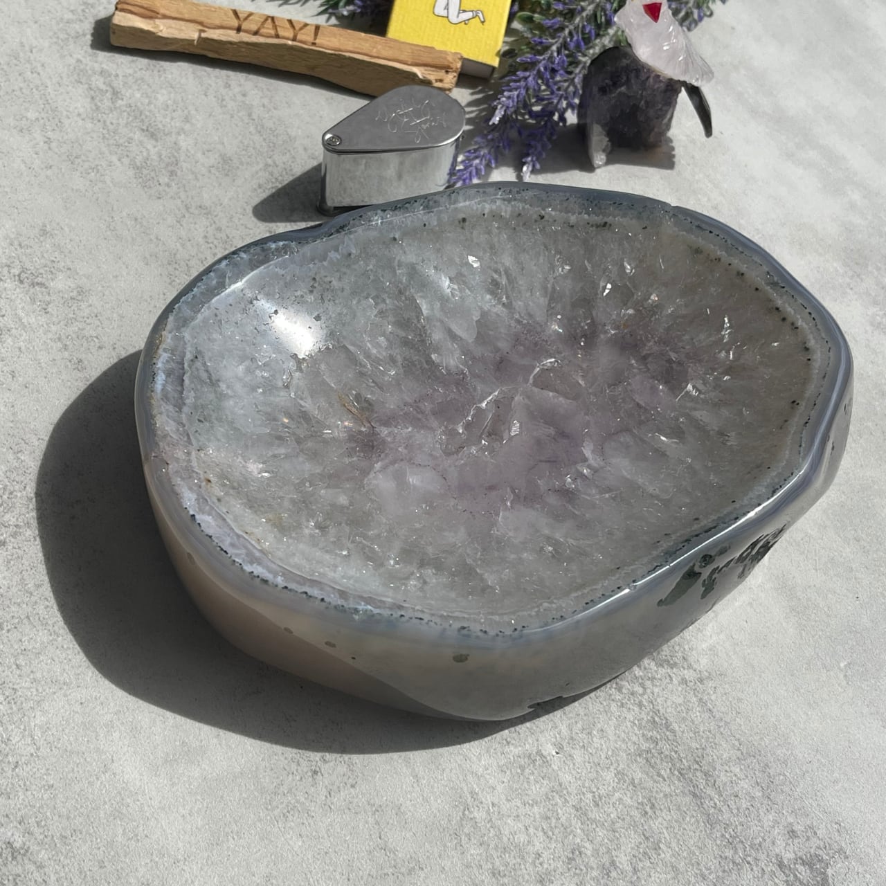 ライトグレーのアゲートとうっすらパープル色味を帯びたアメジストのグラデーションが美しい、ブラジル産アメジスト・アゲートのボウル。