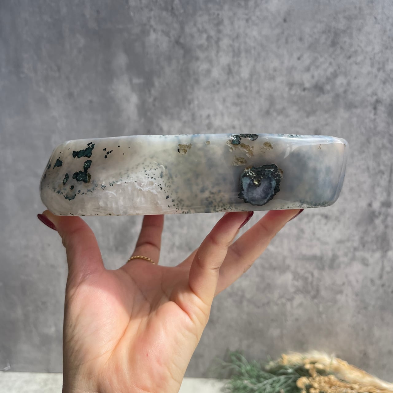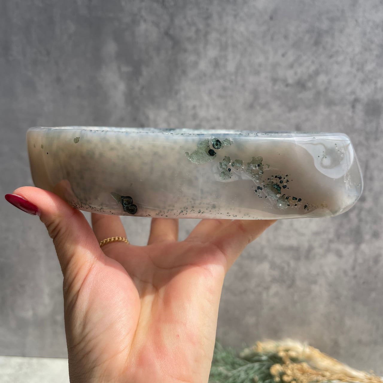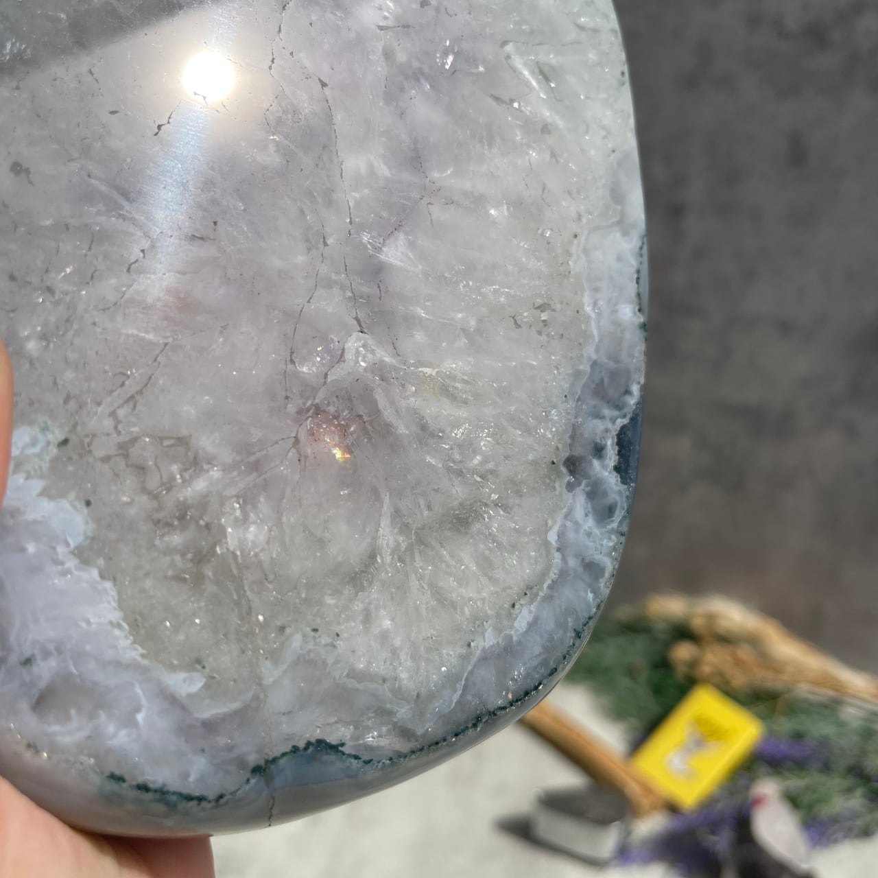 ライトグレーのアゲートとうっすらパープル色味を帯びたアメジストのグラデーションが美しい、ブラジル産アメジスト・アゲートのボウル。