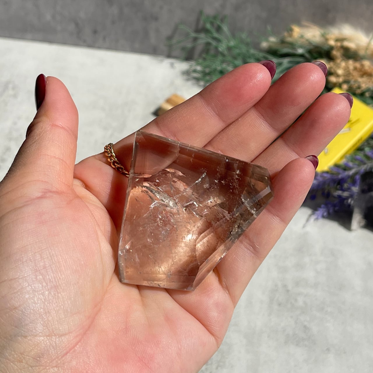 自然の放射線を受けて長い年月をかけて淡褐色になったスモーキークォーツは、身体と大地とのエネルギーを繋げる力に適した石とされています。