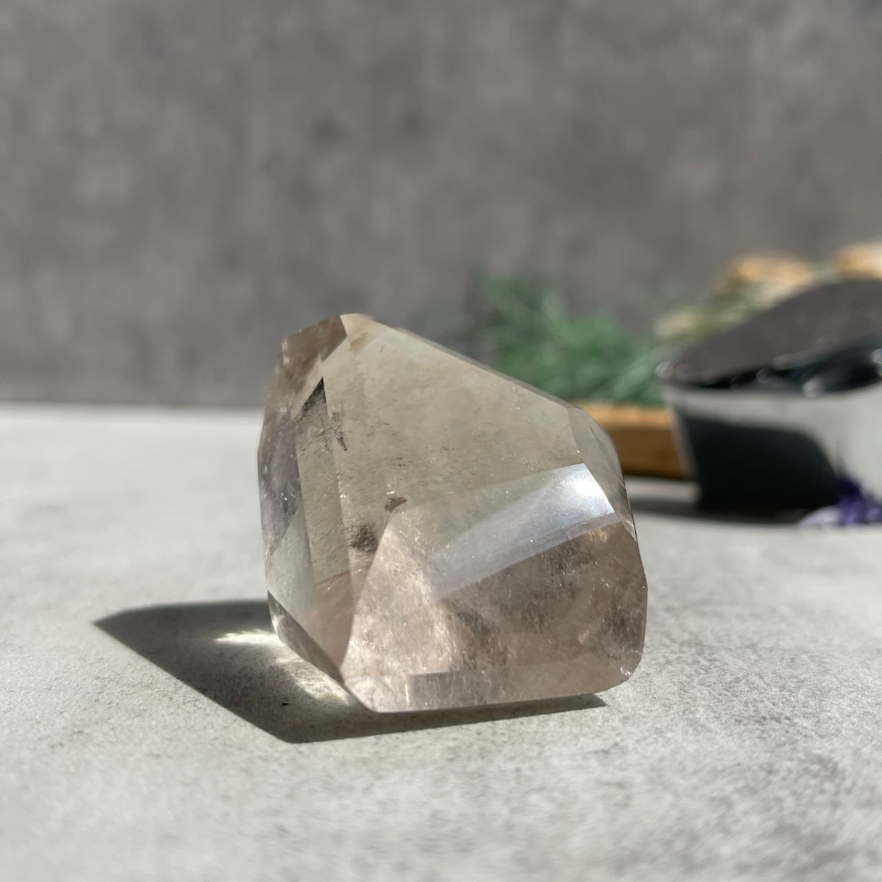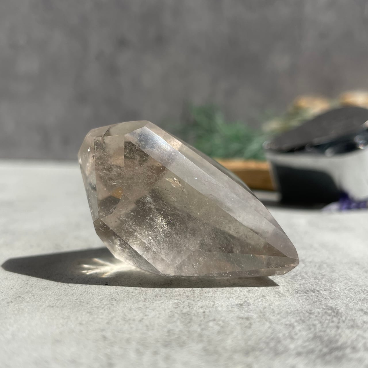 自然の放射線を受けて長い年月をかけて淡褐色になったスモーキークォーツは、身体と大地とのエネルギーを繋げる力に適した石とされています。