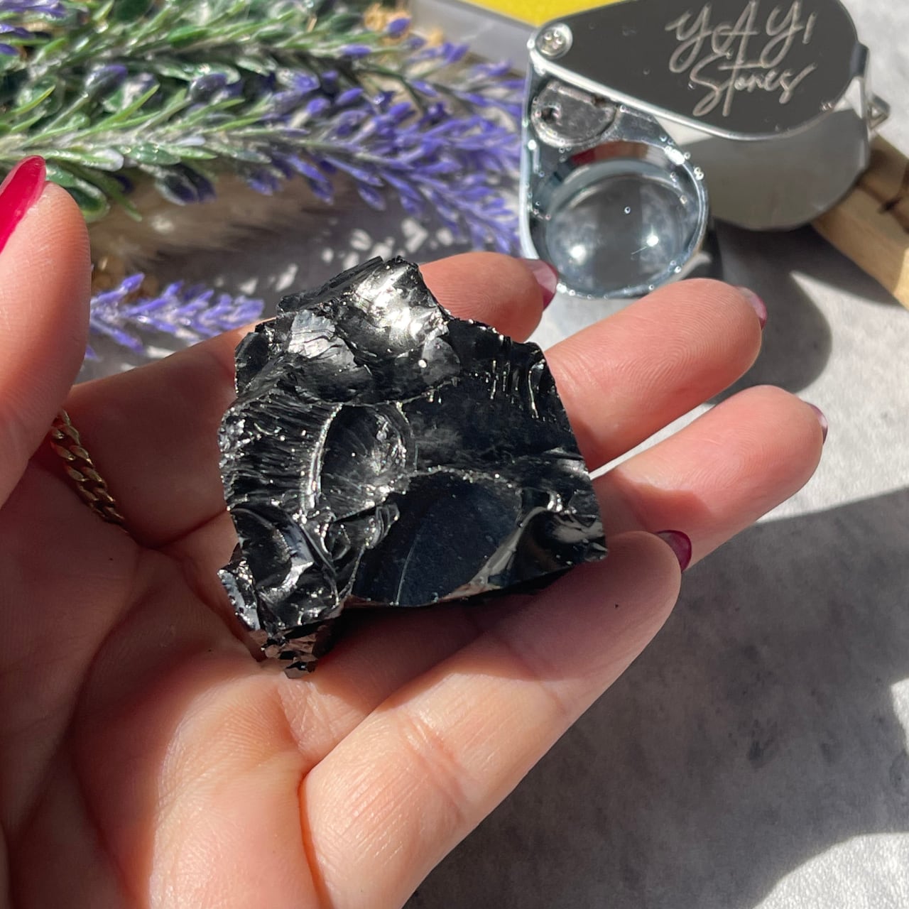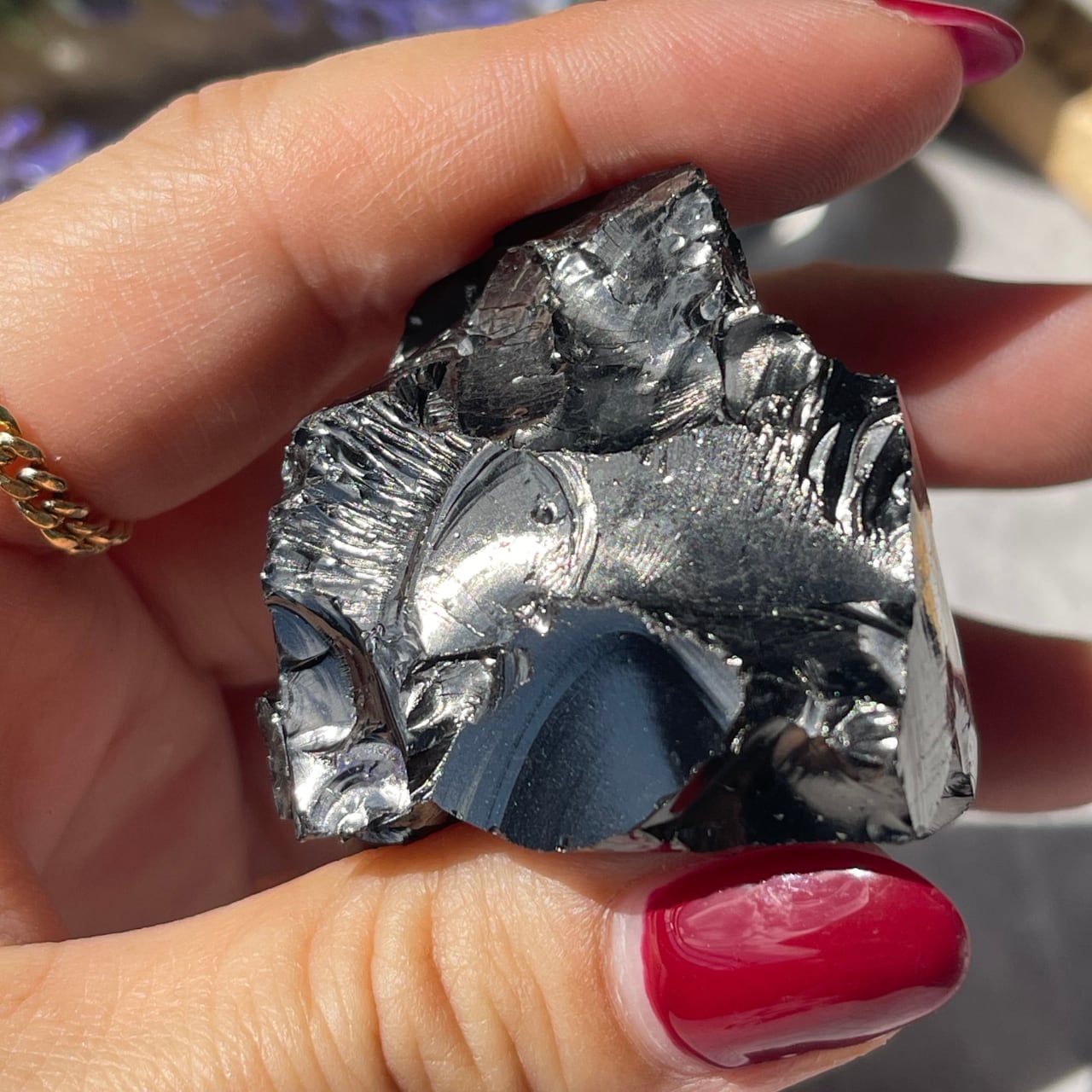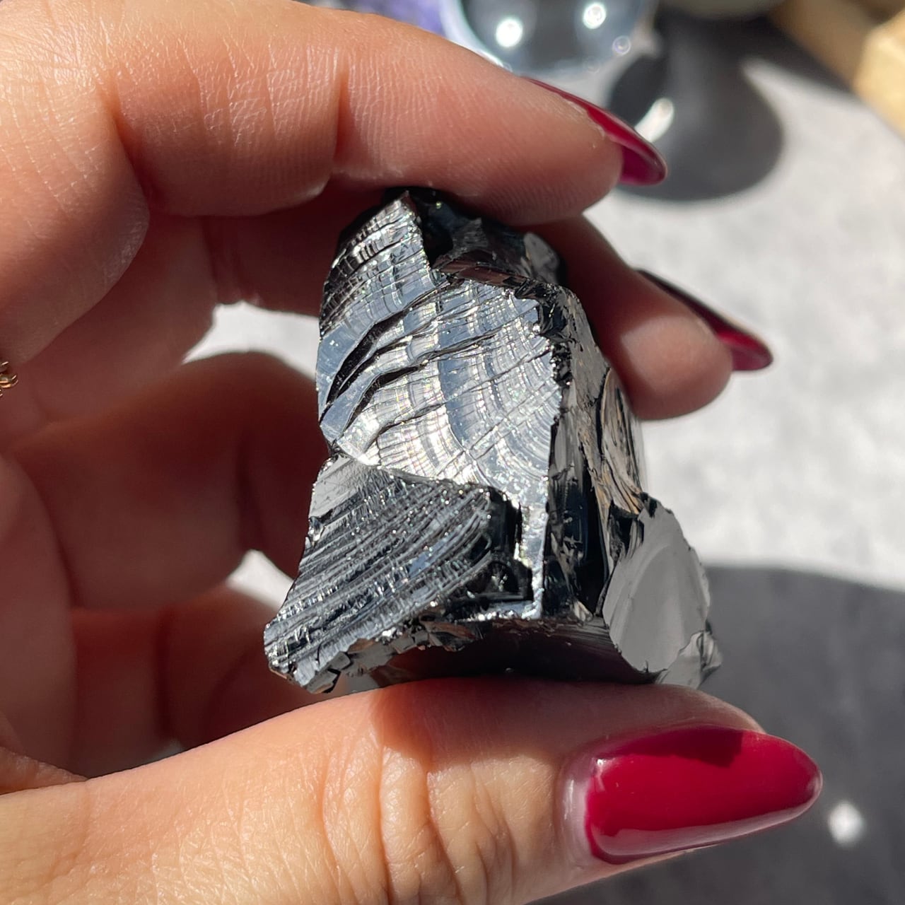 黒色に独特のメタリックな質感を持ち、倍増した艶感を放つエリートシュンガイト。
