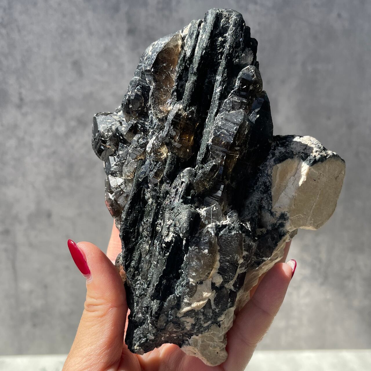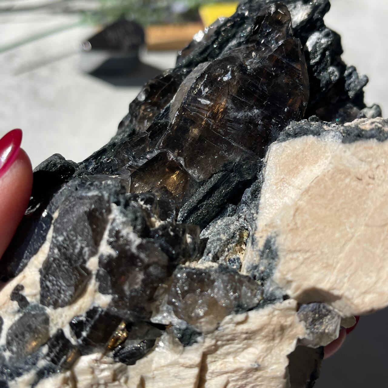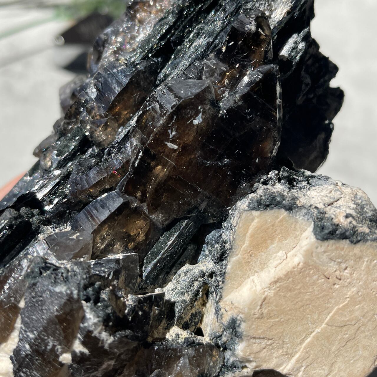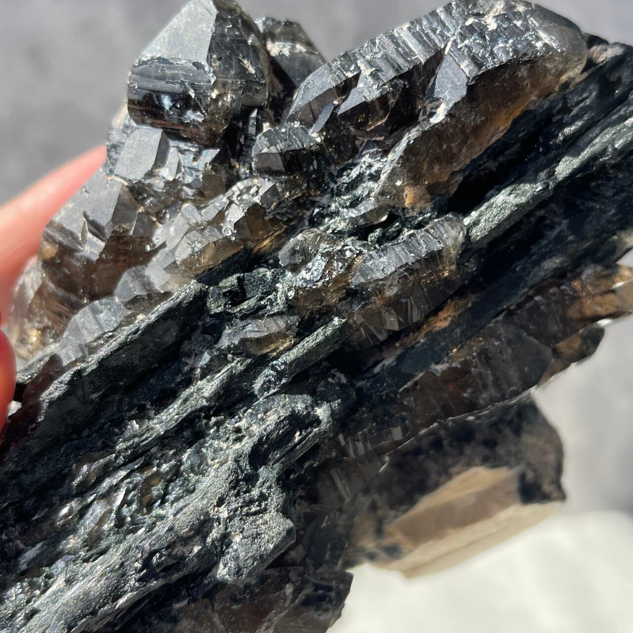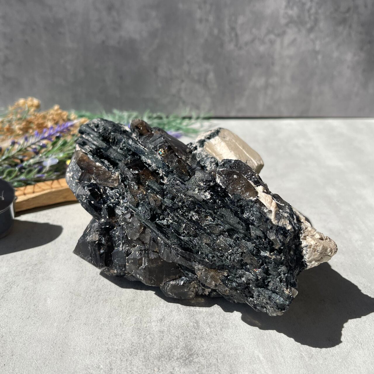 スモーキークォーツとブラックトルマリンが共生した、ナミビア・エロンゴ地区産のストーン。