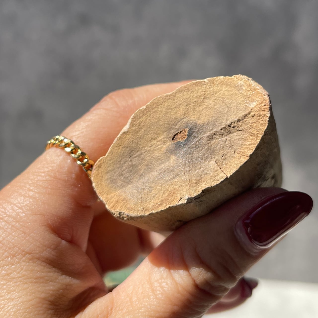 ペトリファイリウッドは、植物の化石の一形態なのですが、見た目は切り株のようで、触るとまさしく石です。