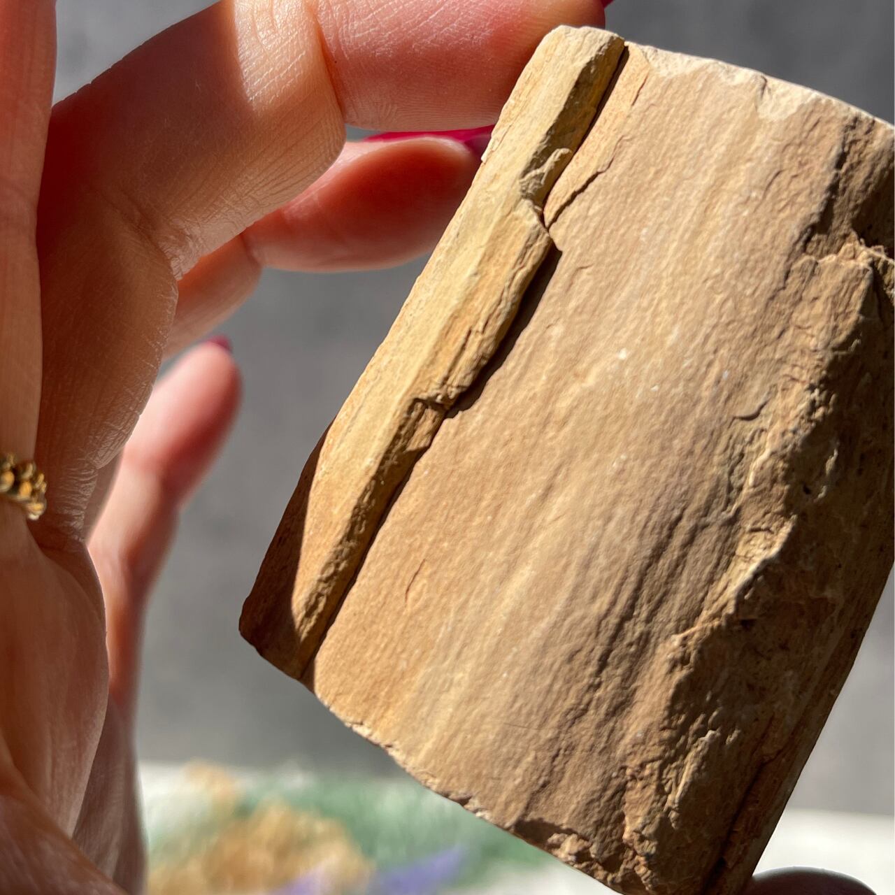 鉱石のような質感にあたたかみのある木目が魅力の、ジンバブエ・ゴクウェ産ペトリファイドウッド。