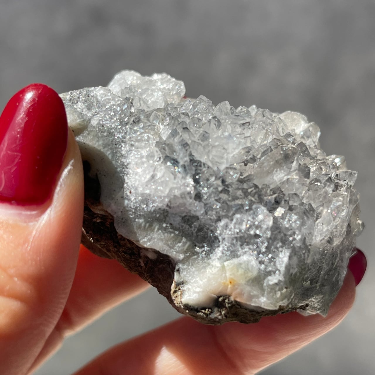 この白い色味は、太陽の紫外線で紫色の色合いが抜け、白色に変化した珍しいアメジストです。