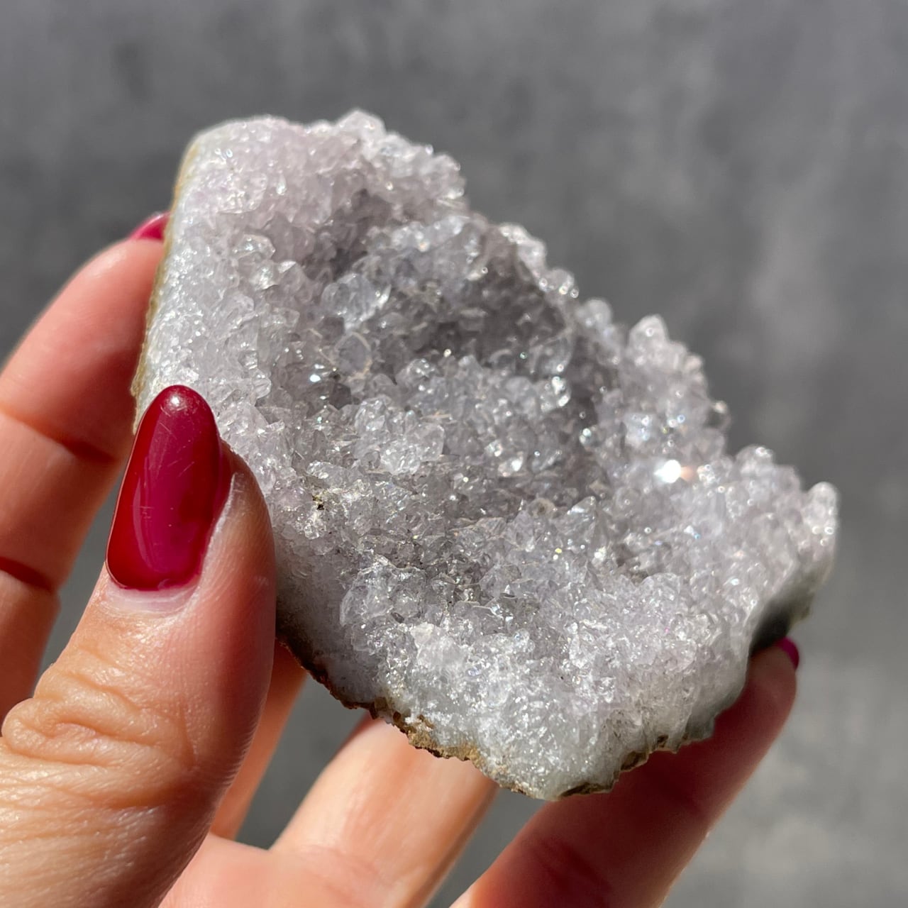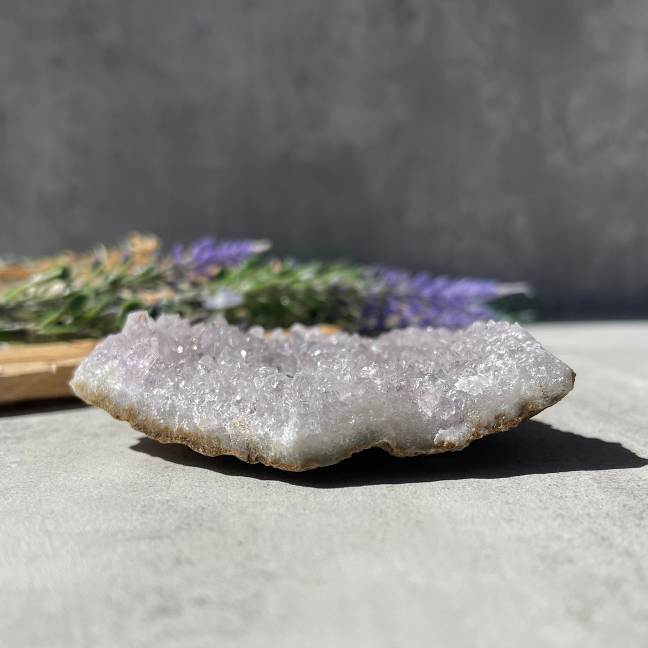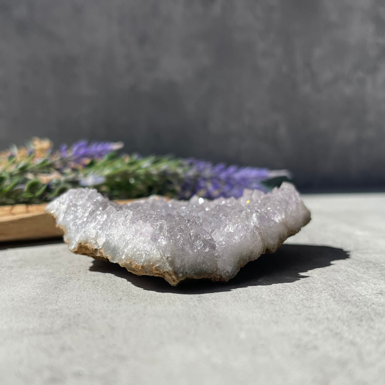 通常の紫色をしたアメジストと比較すると柔らかい印象を受け、その白い色合いからは清らかさや清潔感といった意味を持つとされています。