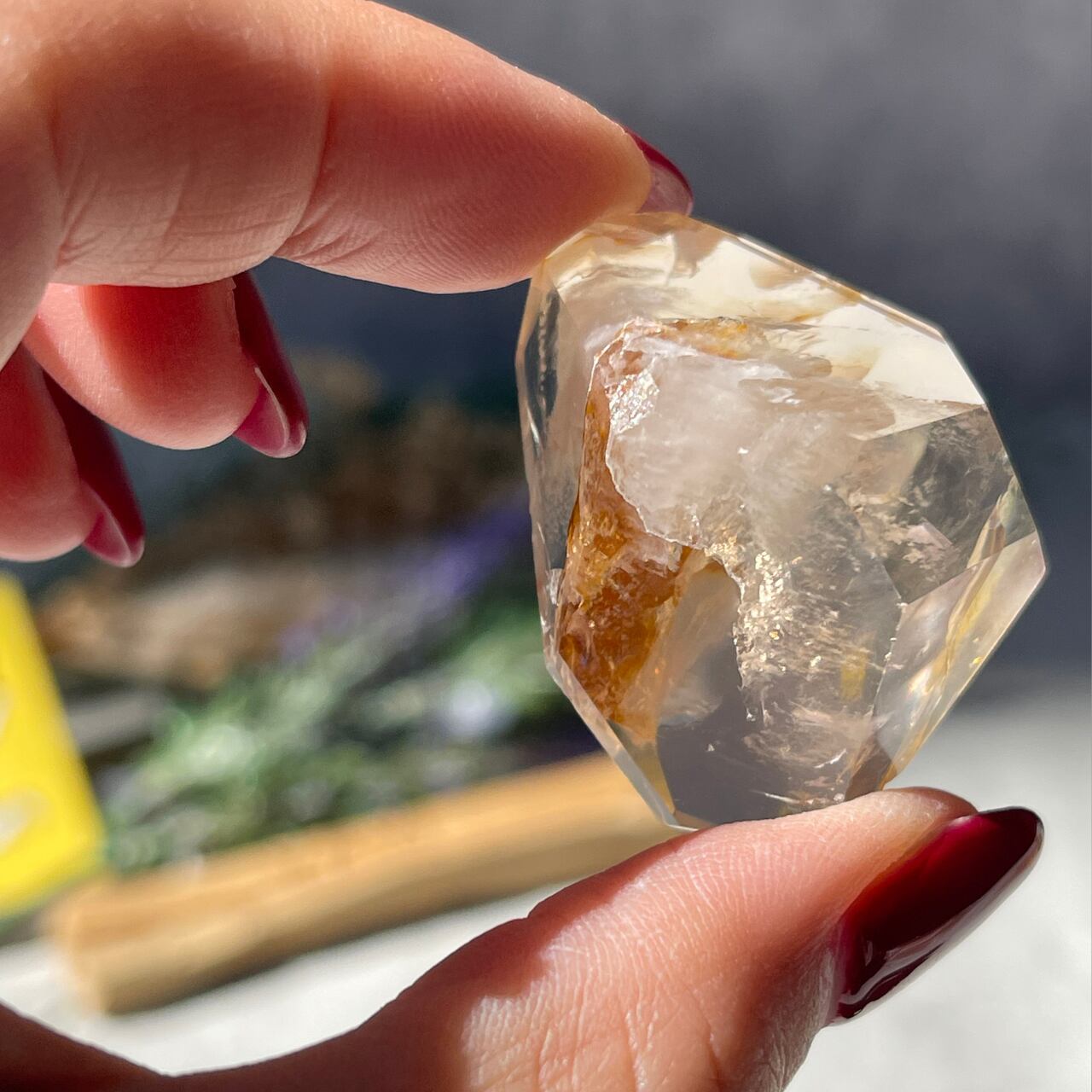 長い年月を経て、リモナイト、マグネシウム、水酸化鉄、褐鉄鉱などの成分がナチュラルにコーティングされ、光の反射でゴールドに色づく珍しい水晶です。強烈な波動を持ち、潜在能力を引き出す力や強力なヒーリングの力を持つとされています。