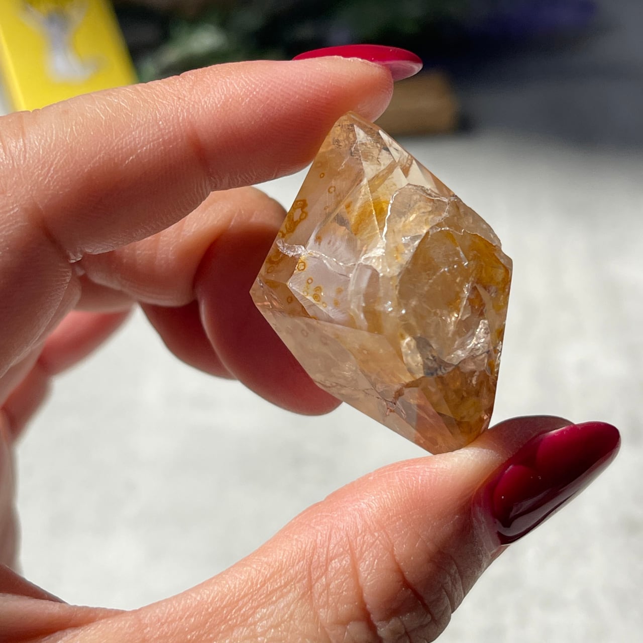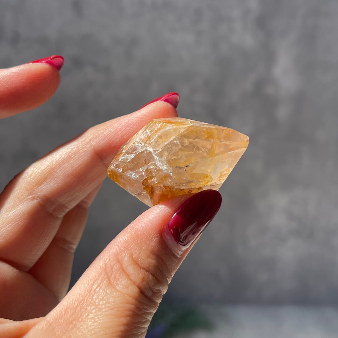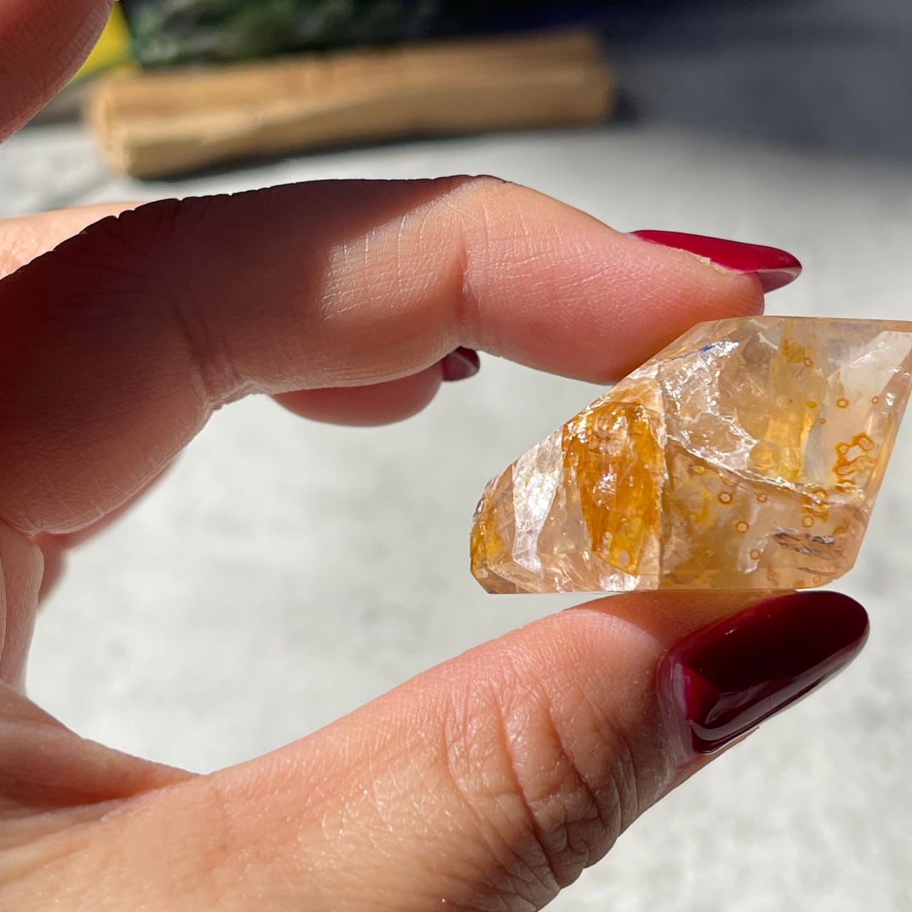 長い年月を経て、リモナイト、マグネシウム、水酸化鉄、褐鉄鉱などの成分がナチュラルにコーティングされ、光の反射でゴールドに色づく珍しい水晶です。強烈な波動を持ち、潜在能力を引き出す力や強力なヒーリングの力を持つとされています。