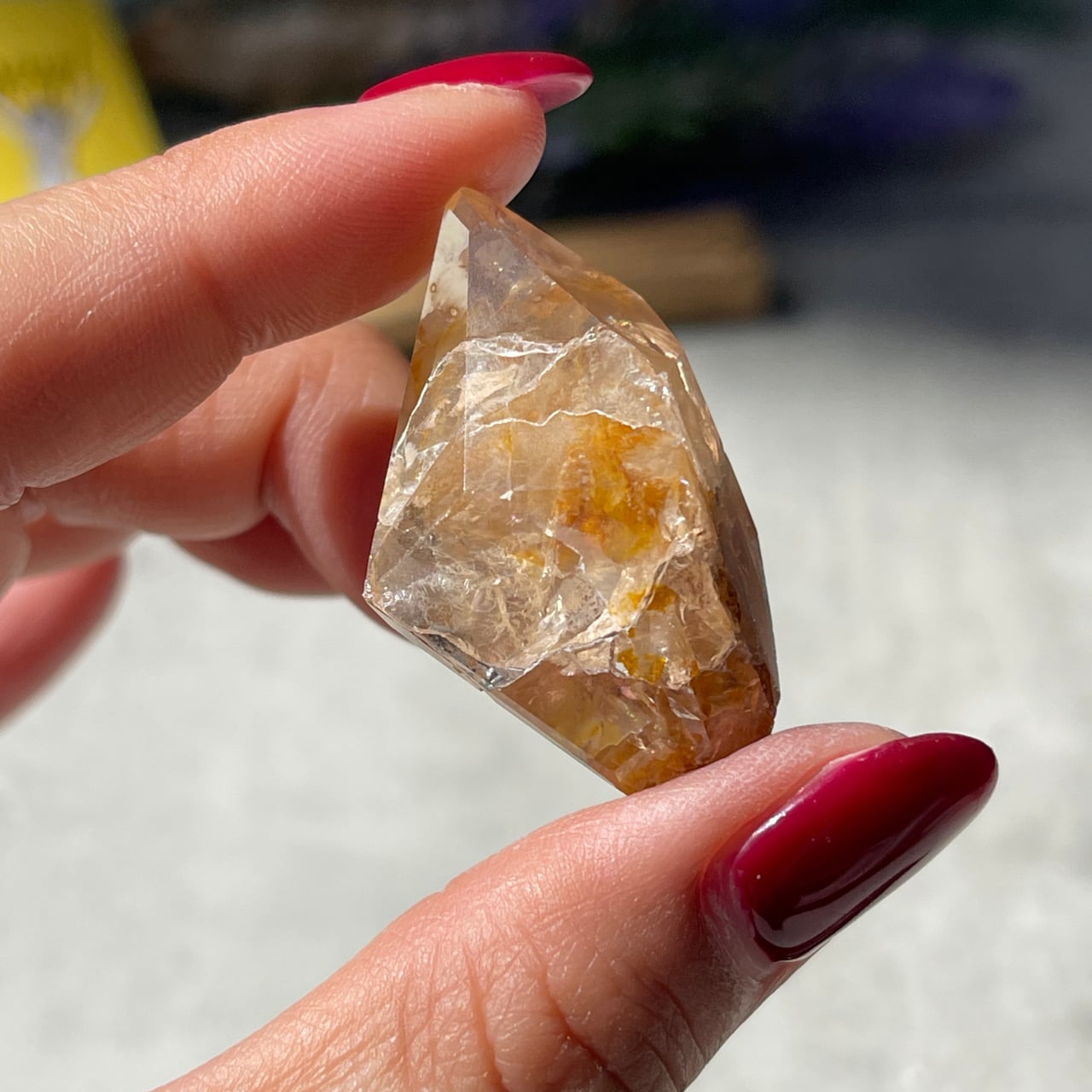 ゴールデンヒーラーは、別名を「イエローヘマタイトインクォーツ」といい、水晶が育つ過程で鉄分やリチウムなどの成分が奇跡的に混ざることで、美しい黄金色の水晶になります。