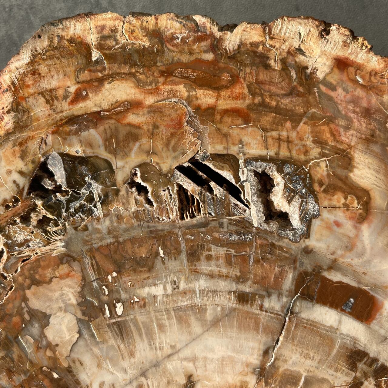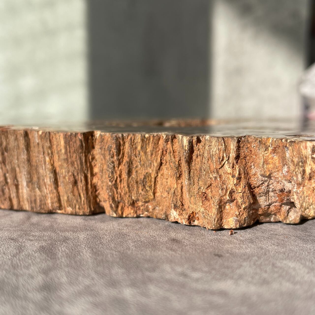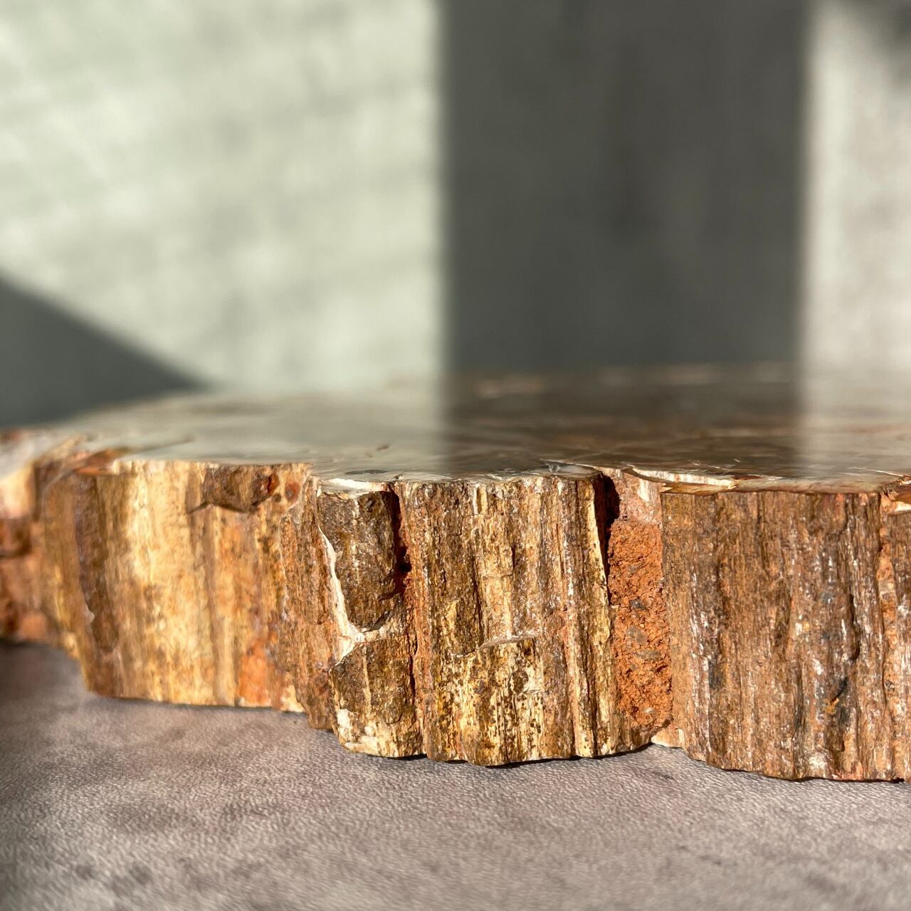 鉱石のような質感にあたたかみのある木目が魅力の、ペトリファイドウッドビッグスラブ。