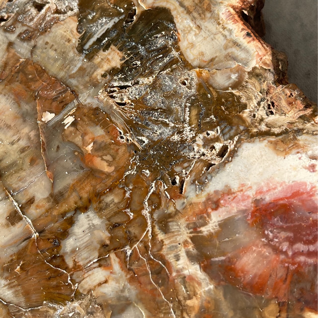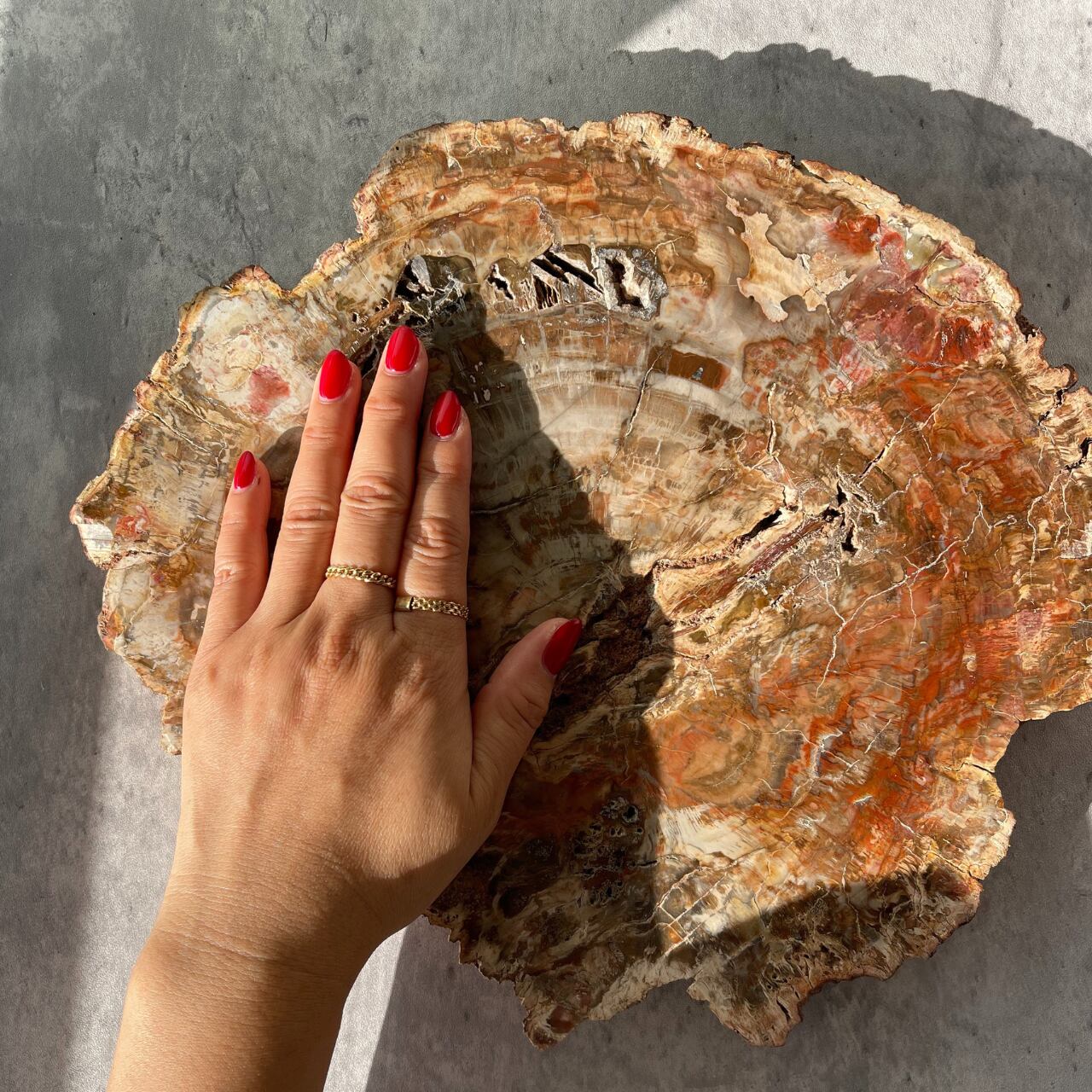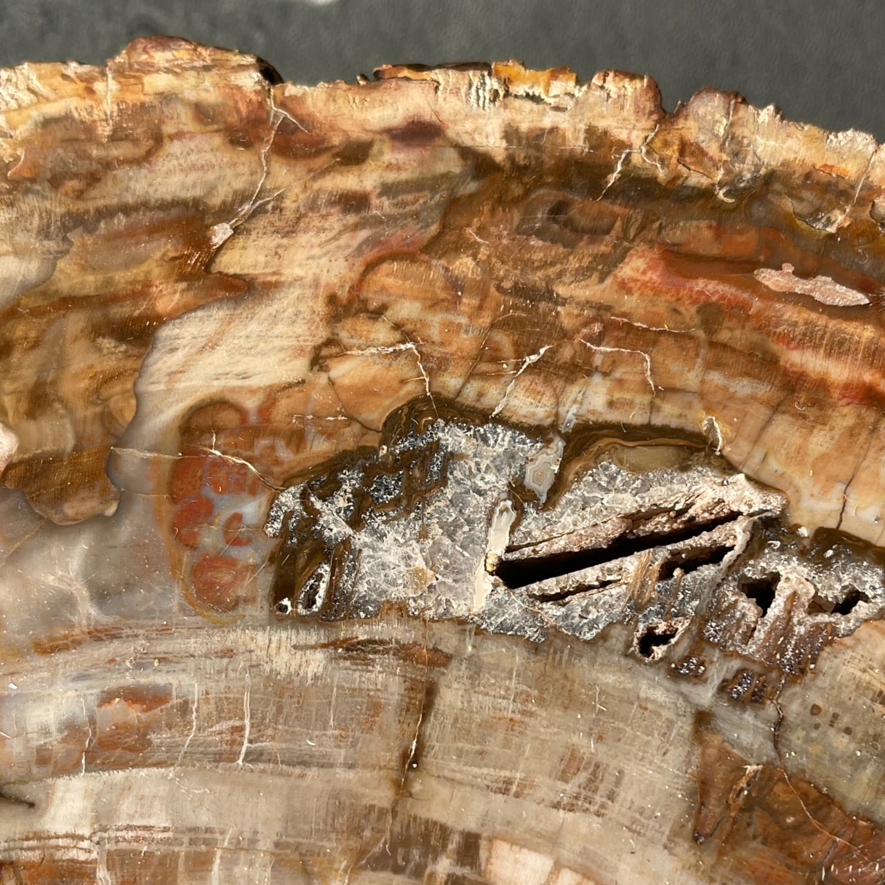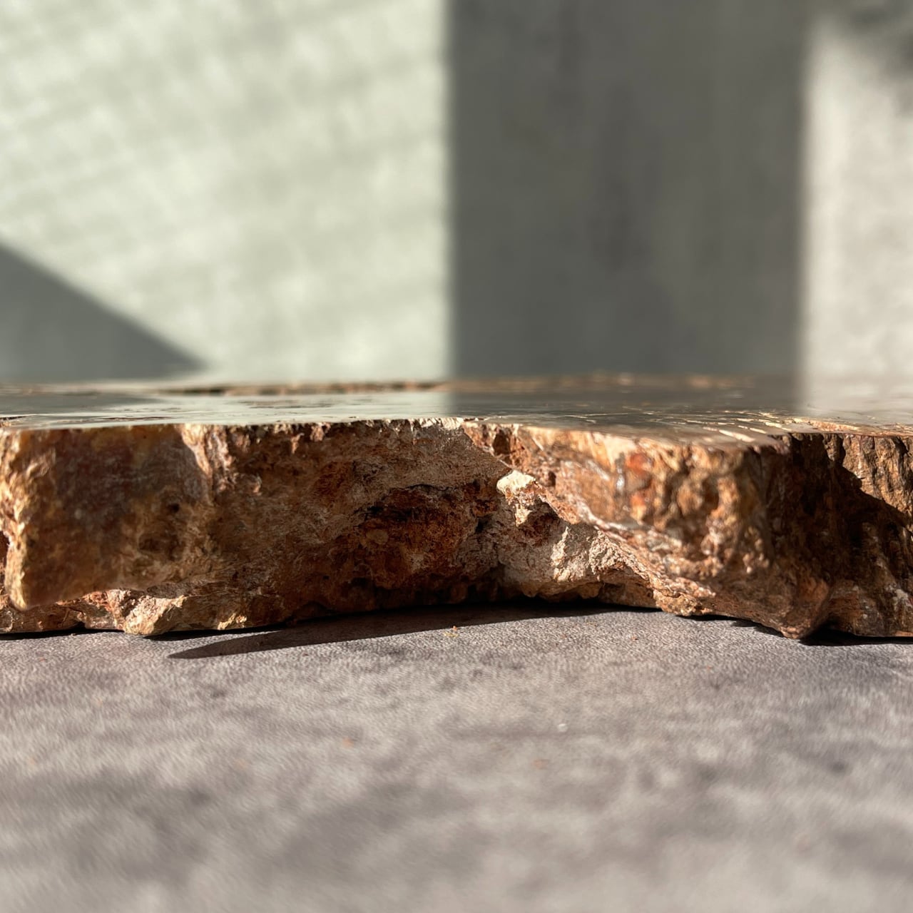 鉱石のような質感にあたたかみのある木目が魅力の、ペトリファイドウッドビッグスラブ。