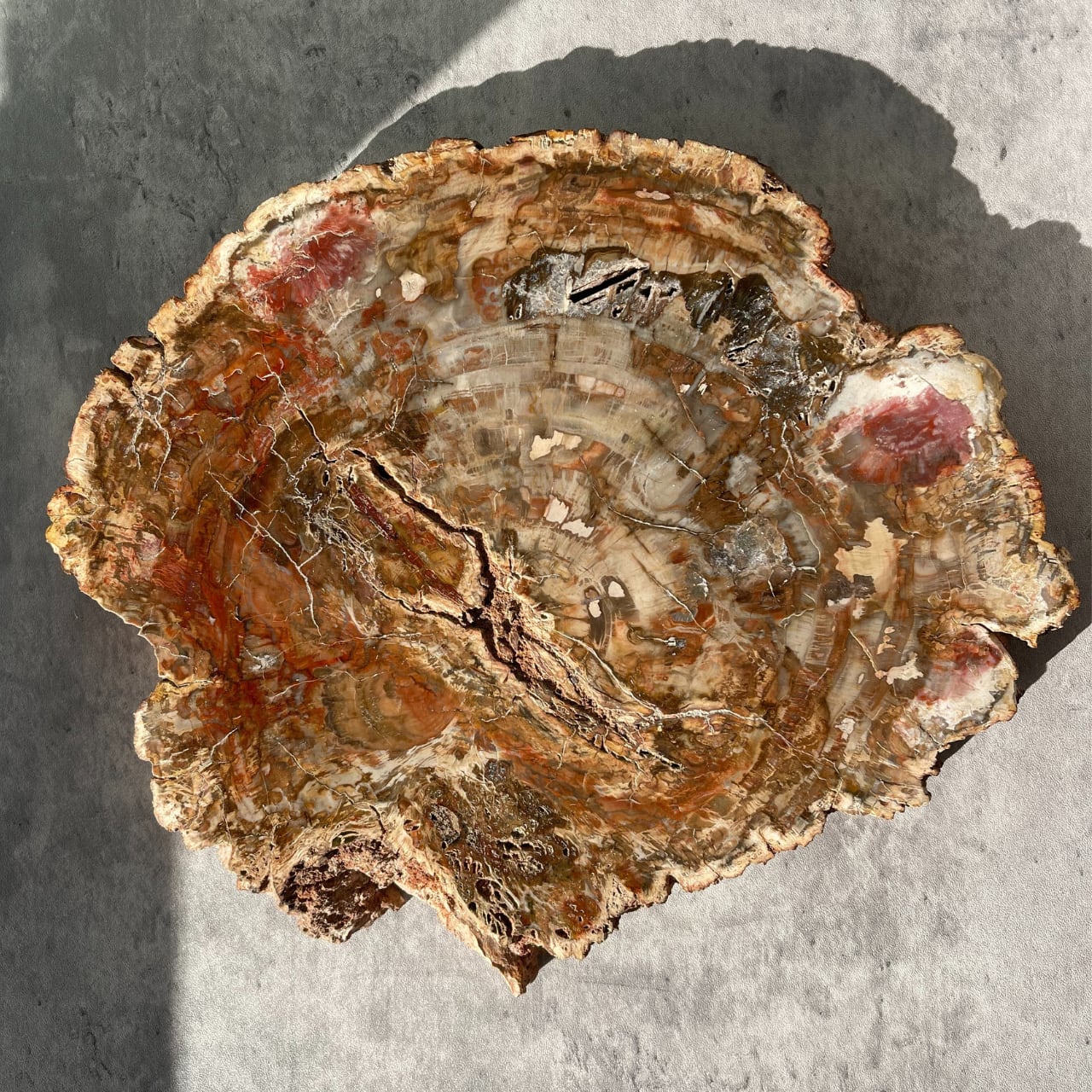 ペトリファイリウッドは、植物の化石の一形態なのですが、見た目は切り株のようで、触るとまさしく石です。