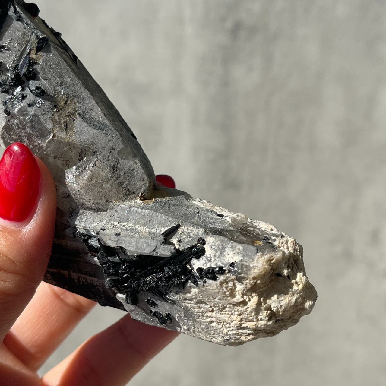 天然石の中で代表的な黒色の石と無色~白色の石が共生した、ナミビア・エロンゴ地区産ブラックトルマリンとクォーツの共生ストーン。