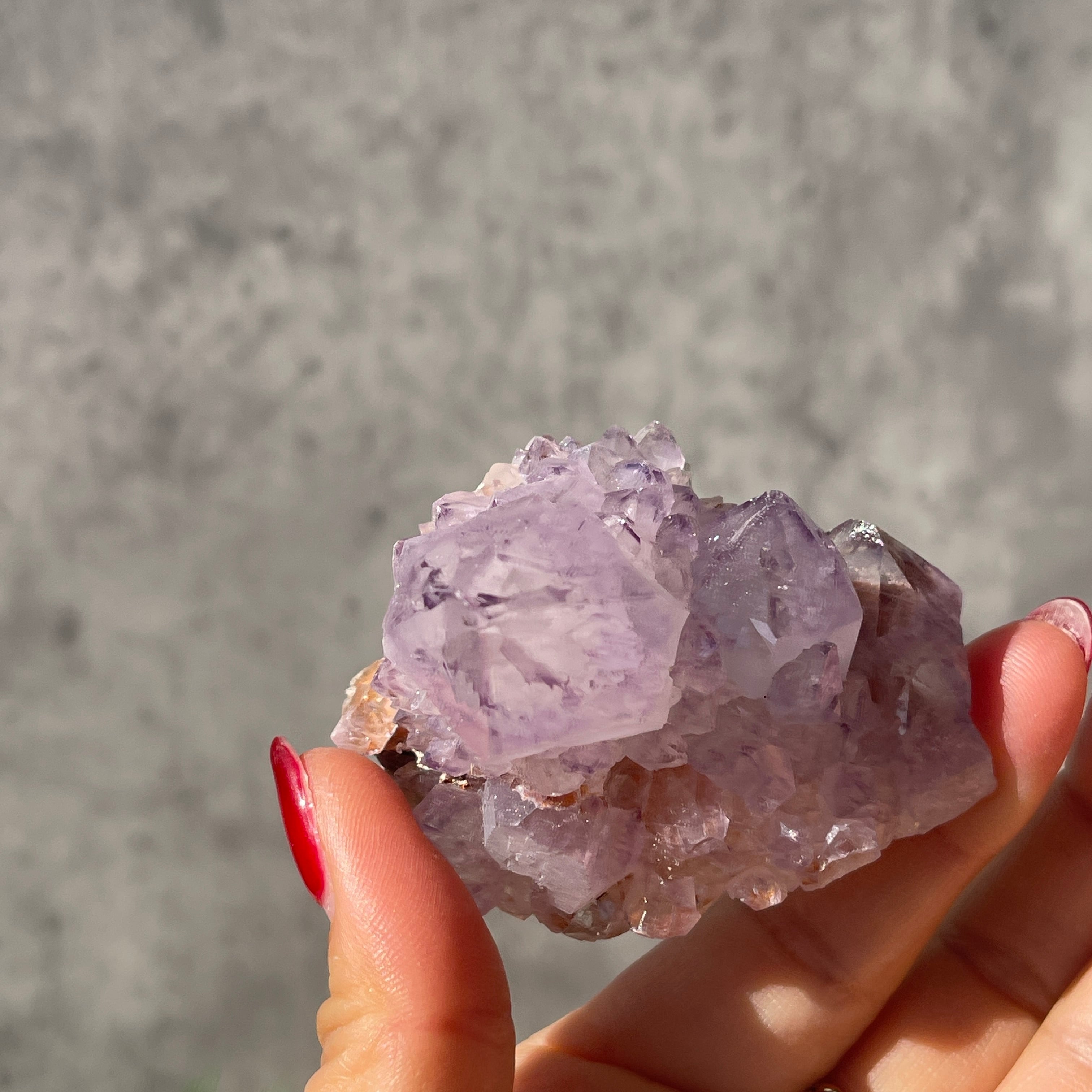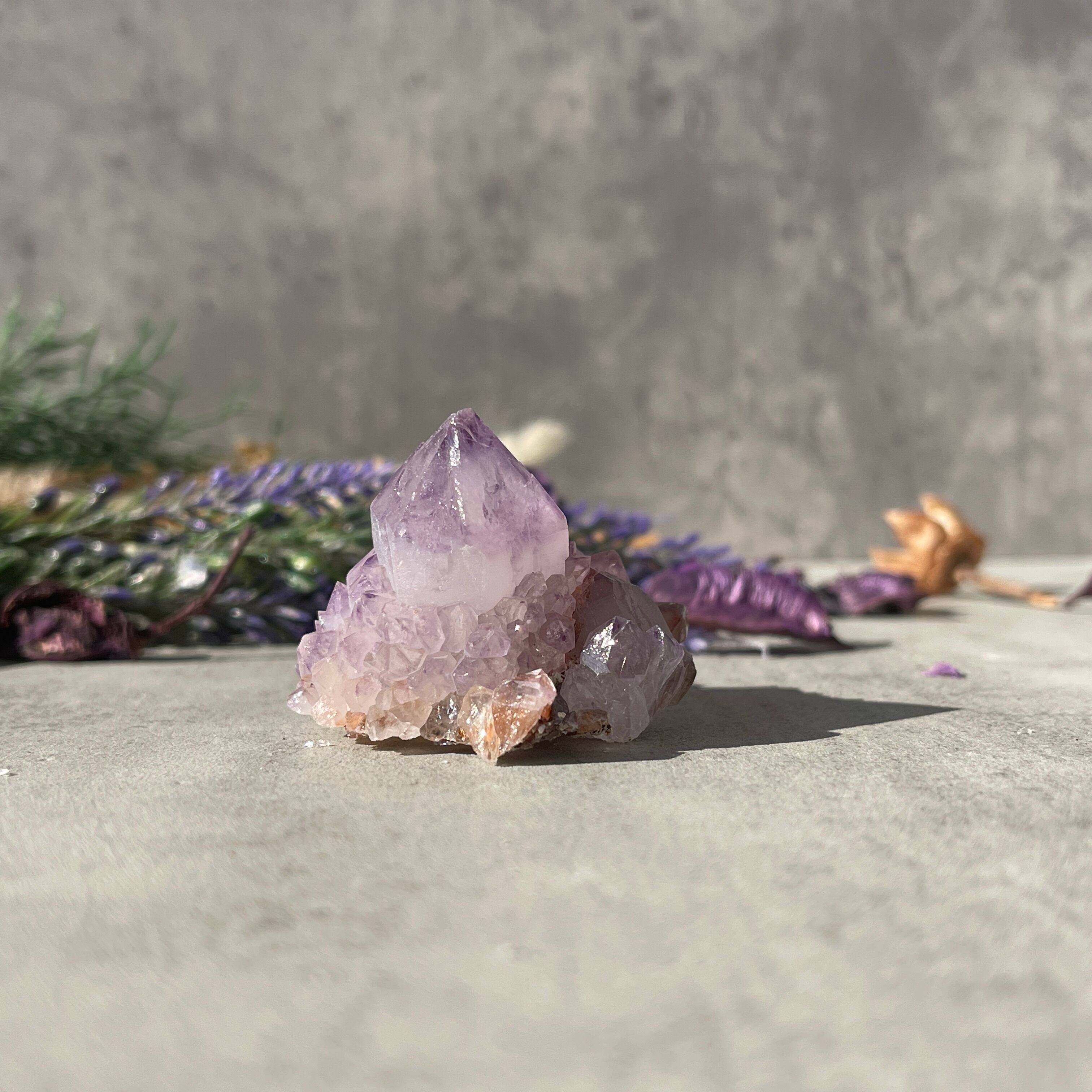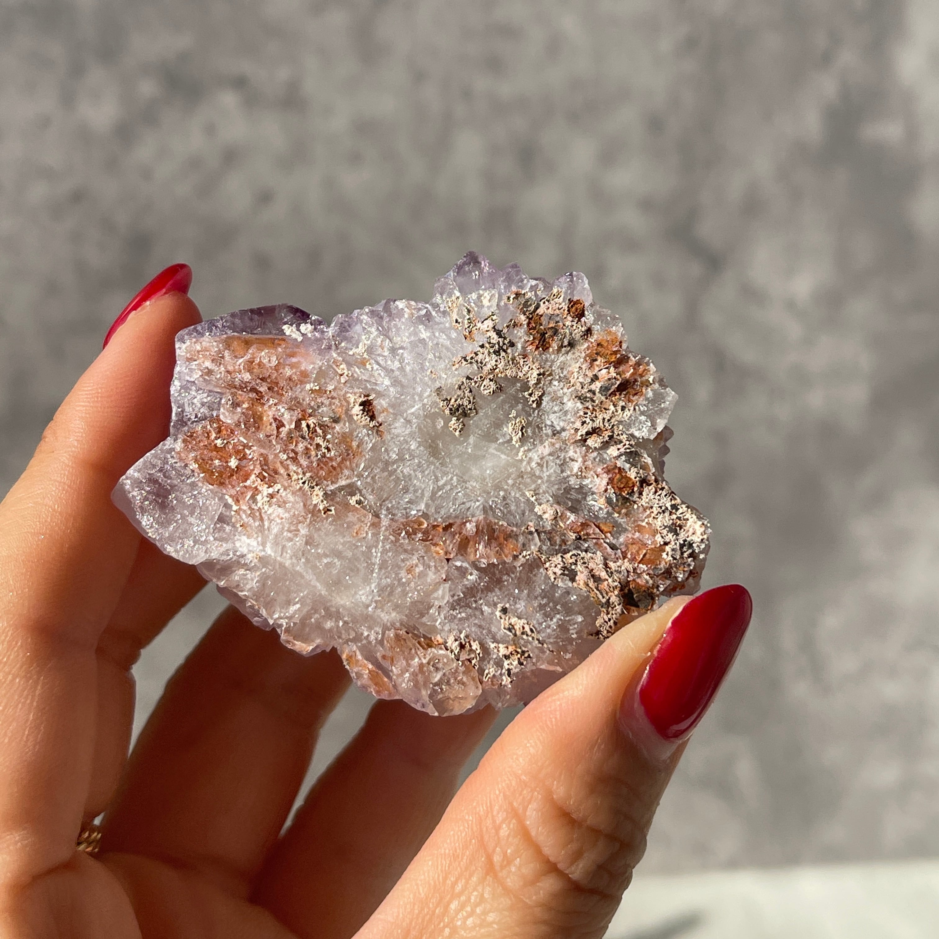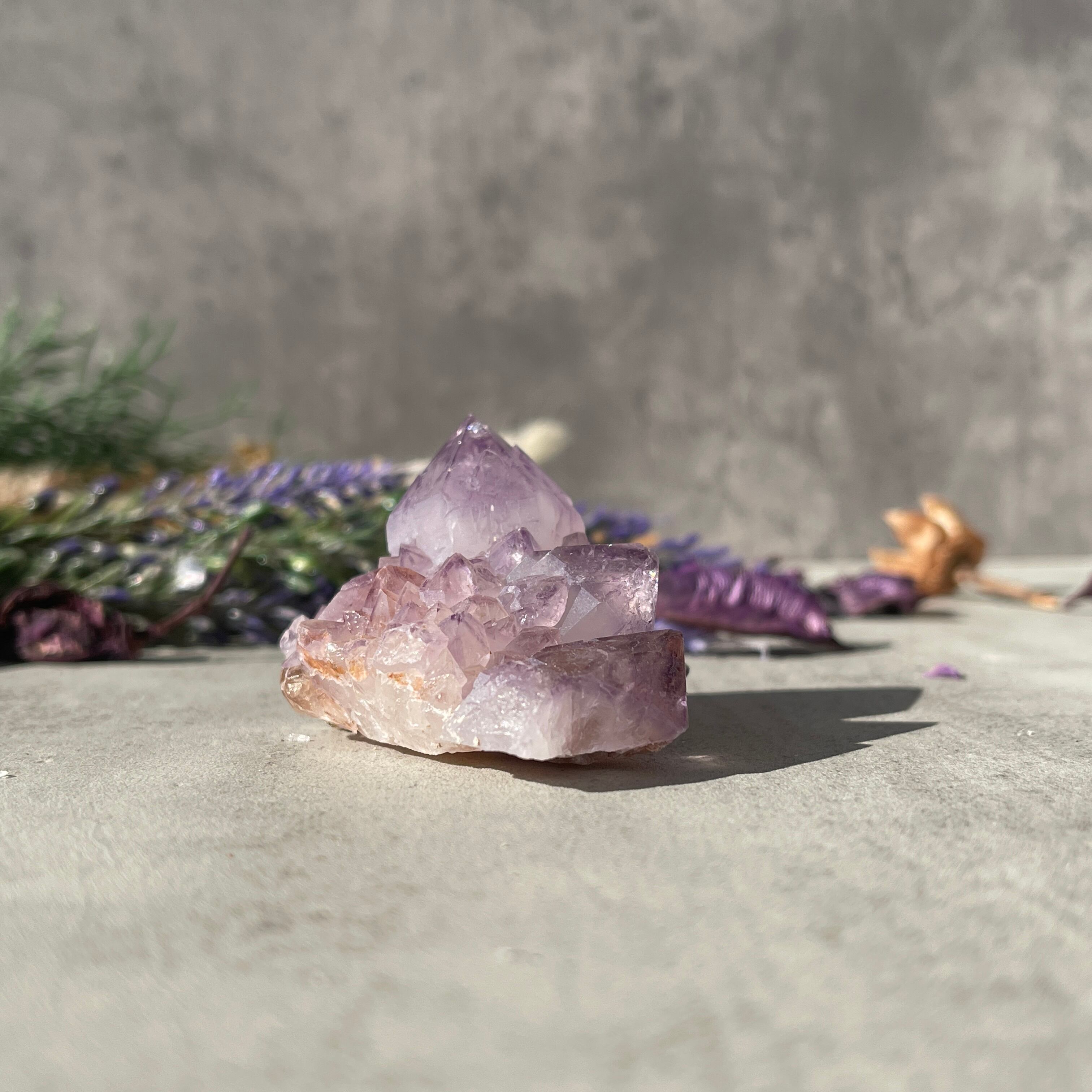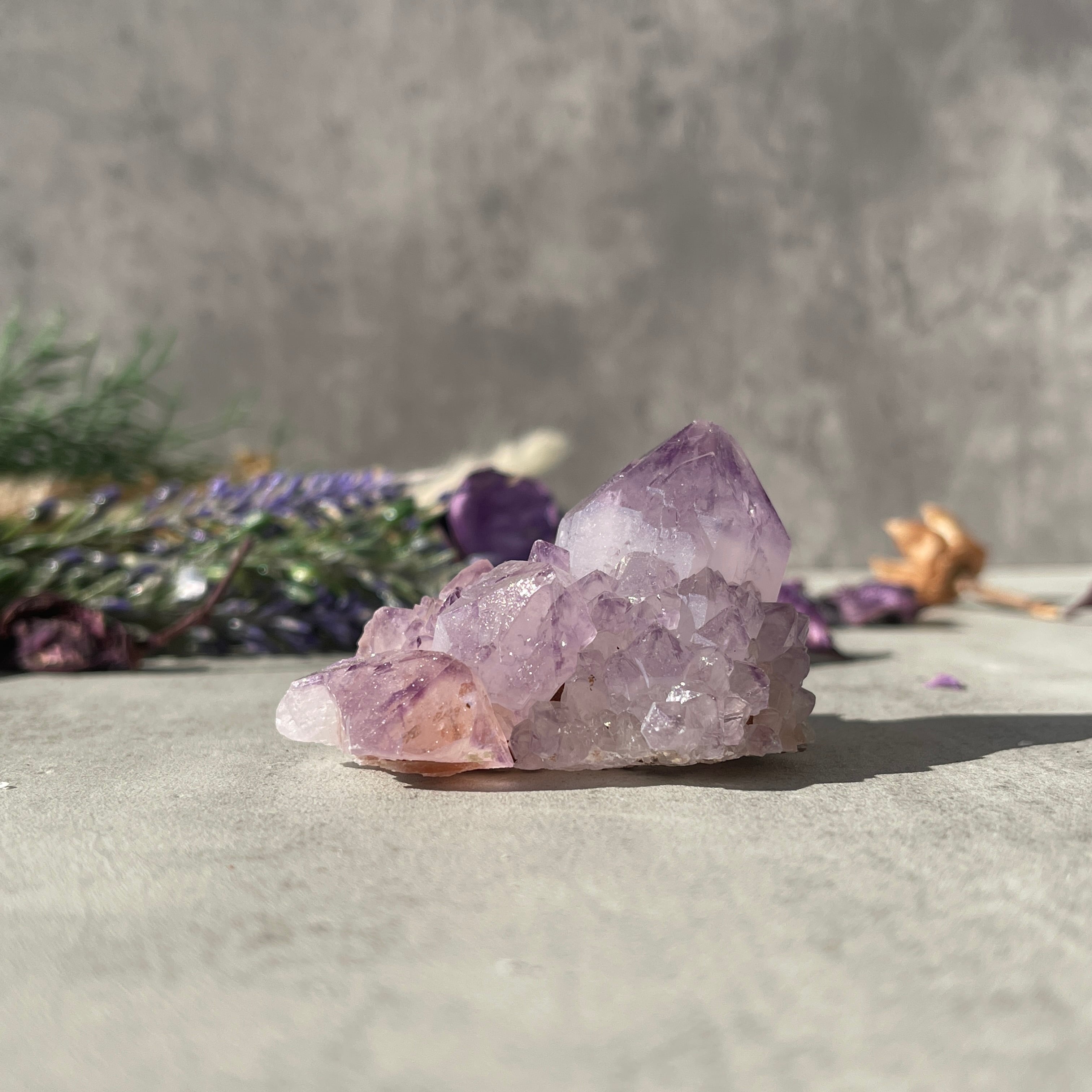今回のカクタスクォーツは、淡いラベンダー色が印象的なタイプ。