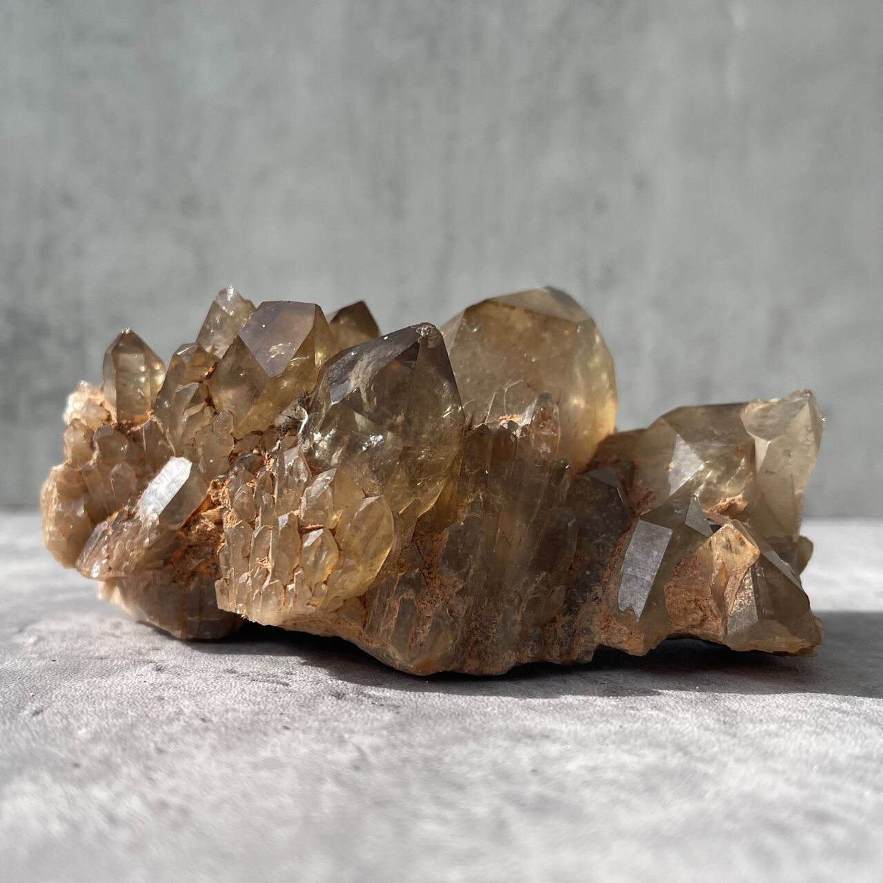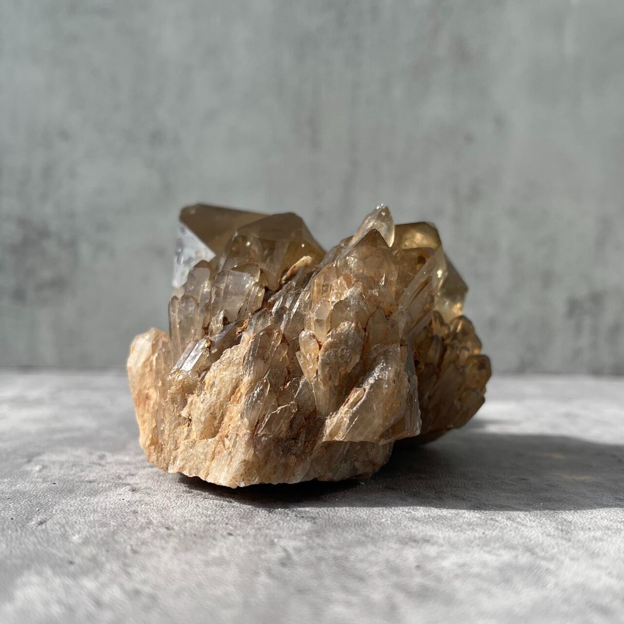 迫力のあるカテドラルライブラリー形状をしたスモーキーカラーが美しい、コンゴ産クンダリーニシトリンクラスター。