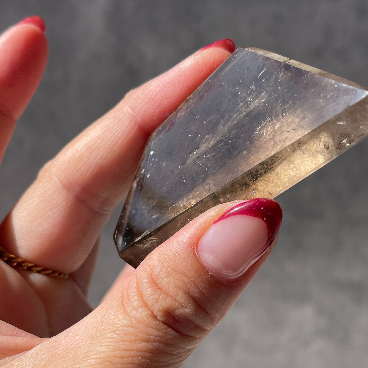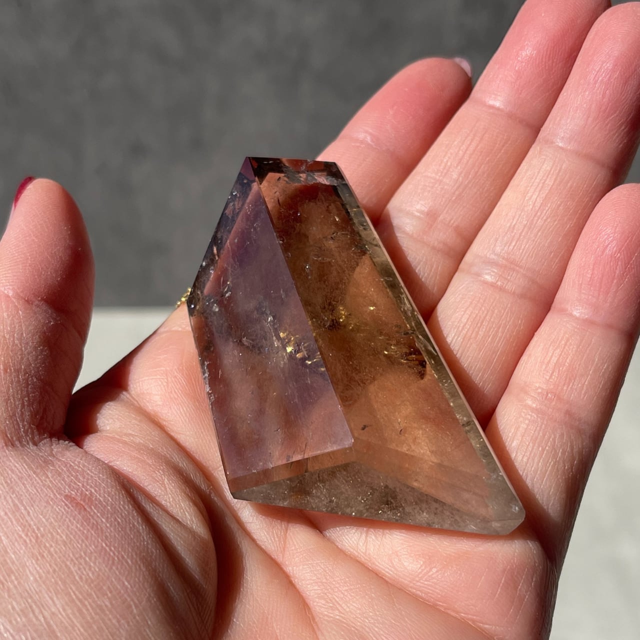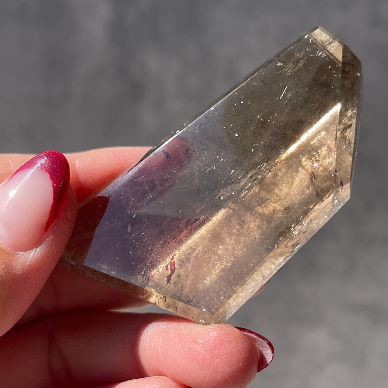 スモーキーシトリンは、微量の鉄イオンを含むシトリンと、アルミニウムの影響を受けたスモーキー・クォーツが融合したものです。