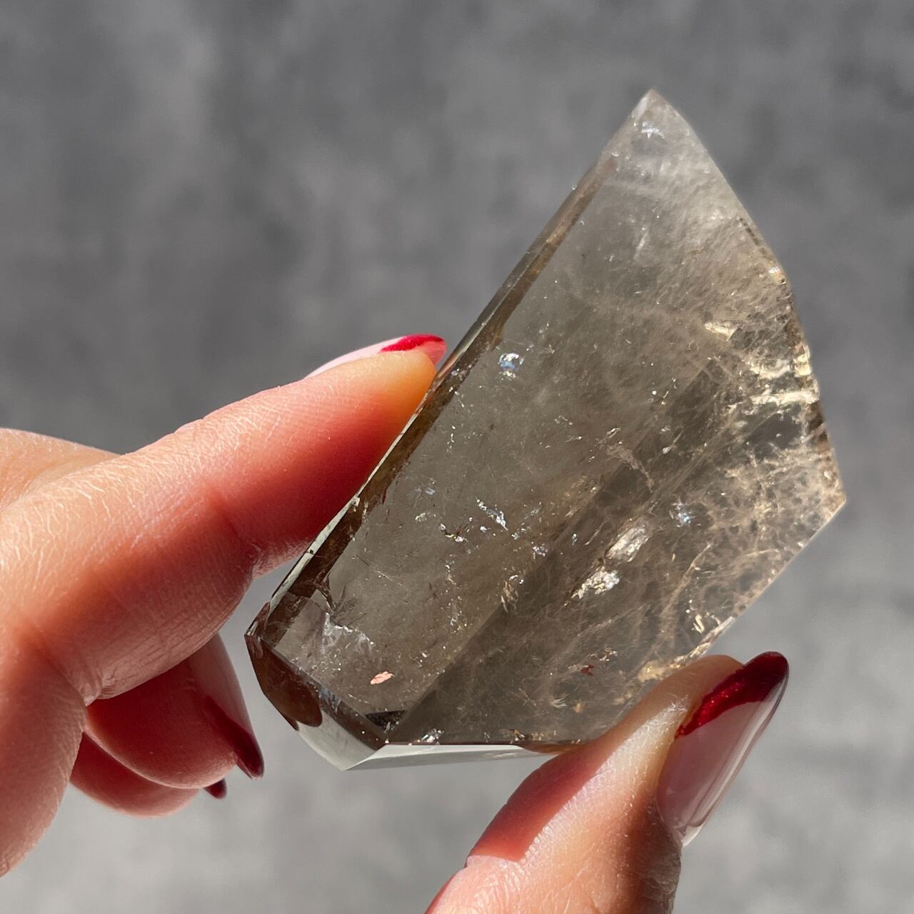美しい透明感とツヤ感、輝きが見事なブラジル・ミナスジェライス州アラスライ産非加熱スモーキーシトリンフリーフォーム。