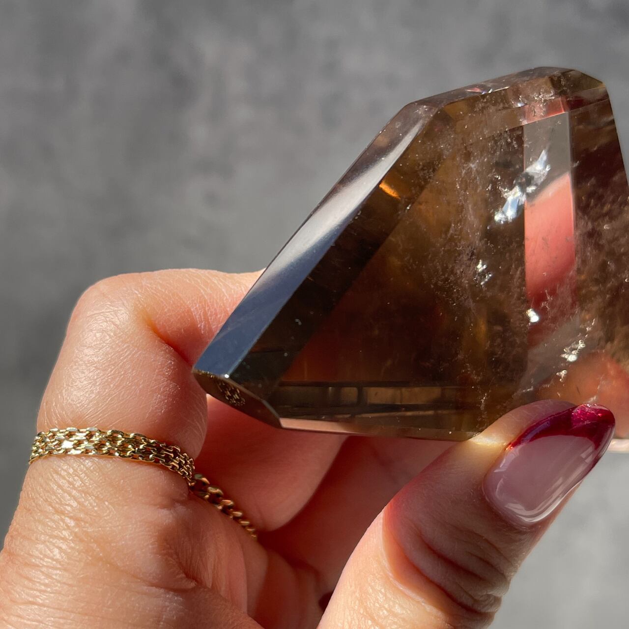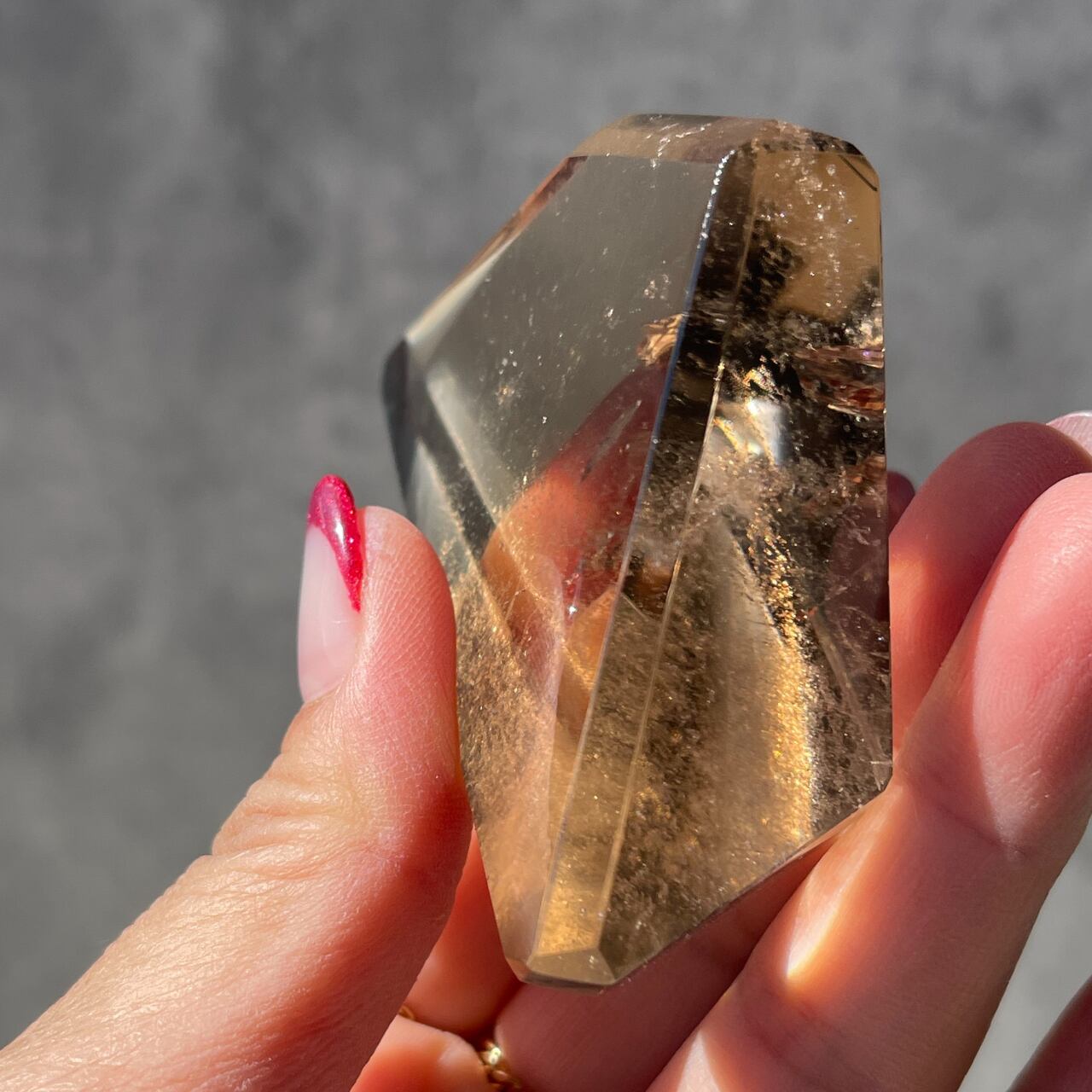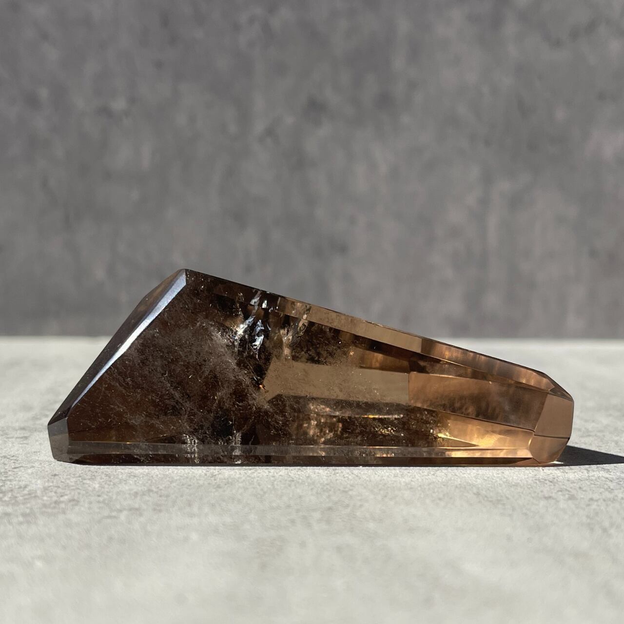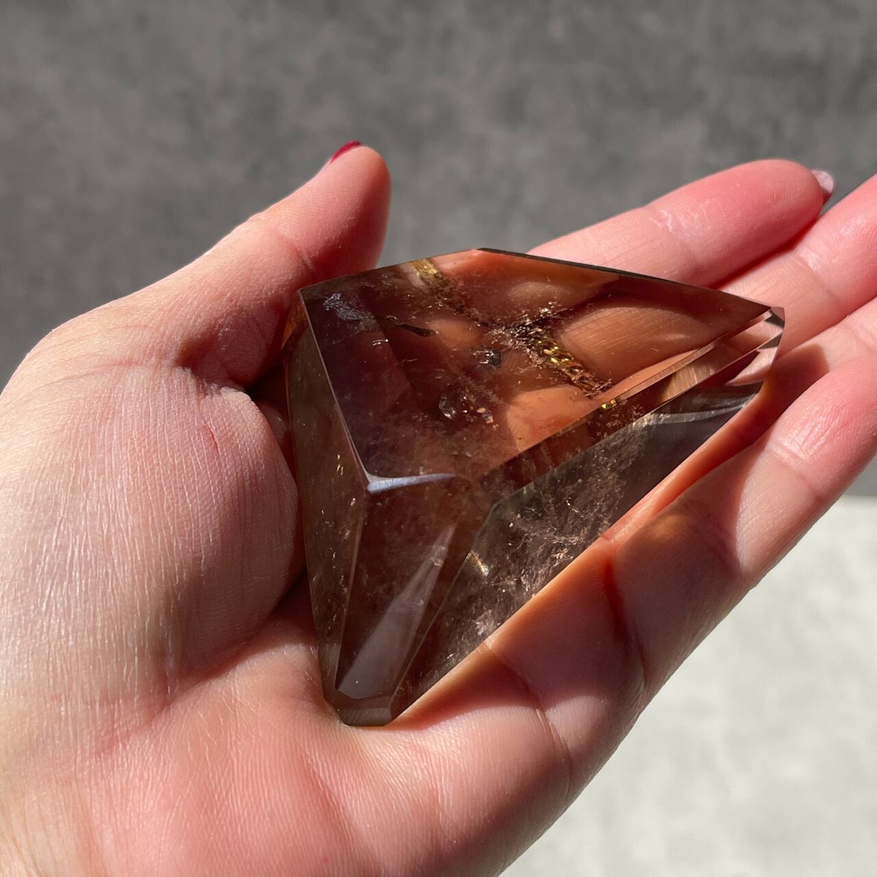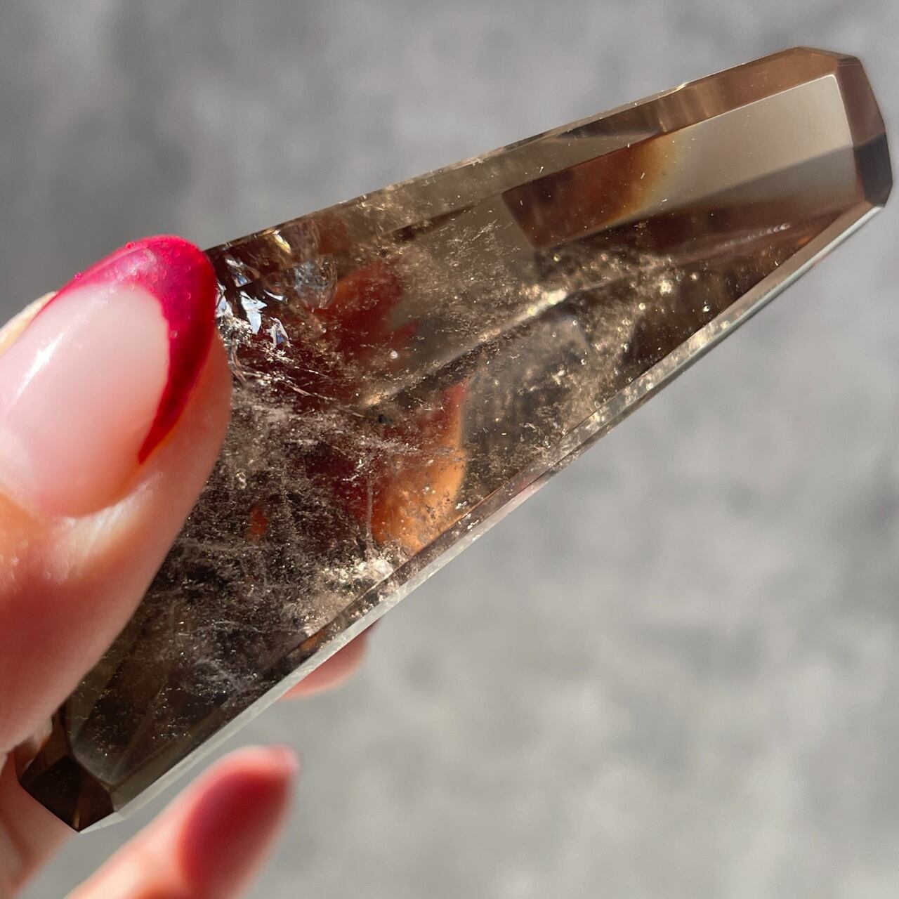 スモーキーシトリンは、微量の鉄イオンを含むシトリンと、アルミニウムの影響を受けたスモーキー・クォーツが融合したものです。