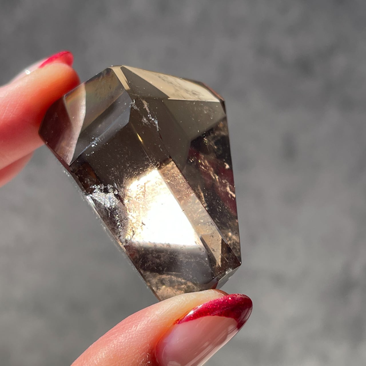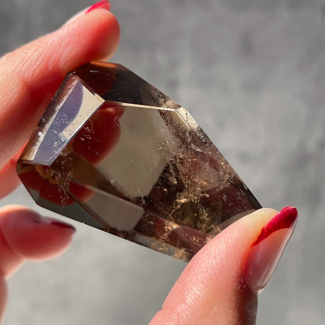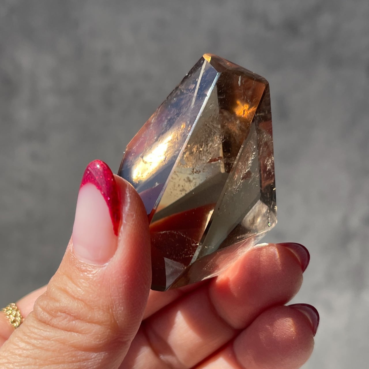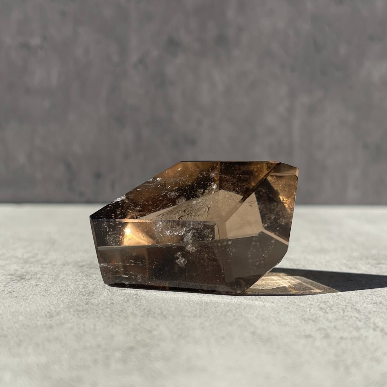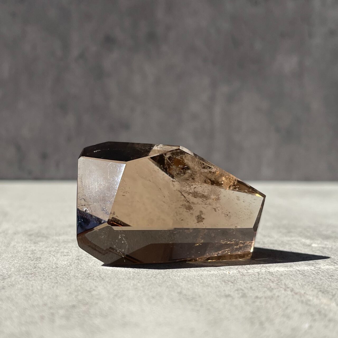 美しい透明感とツヤ感、輝きが見事なブラジル・ミナスジェライス州アラスライ産非加熱スモーキーシトリンフリーフォーム。