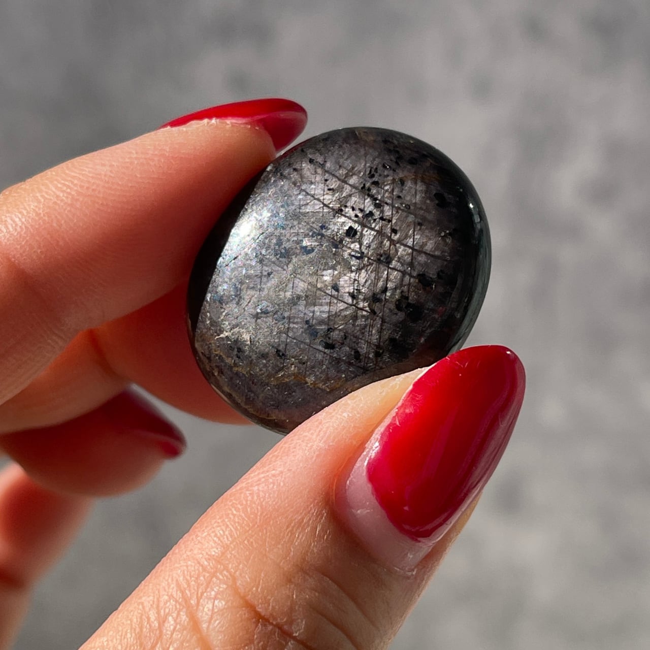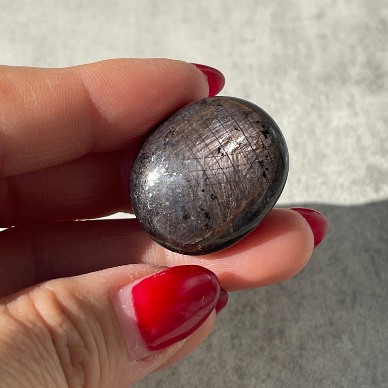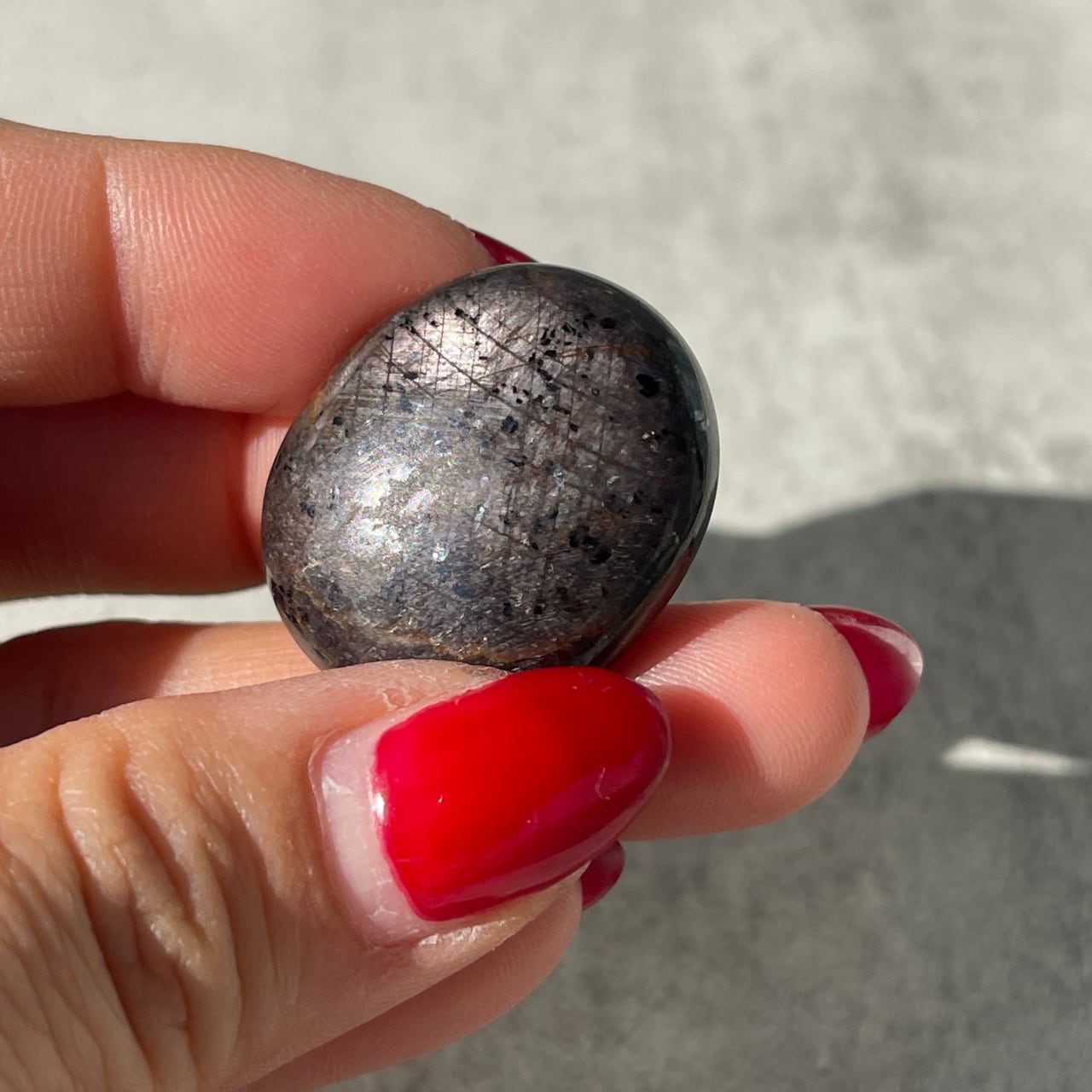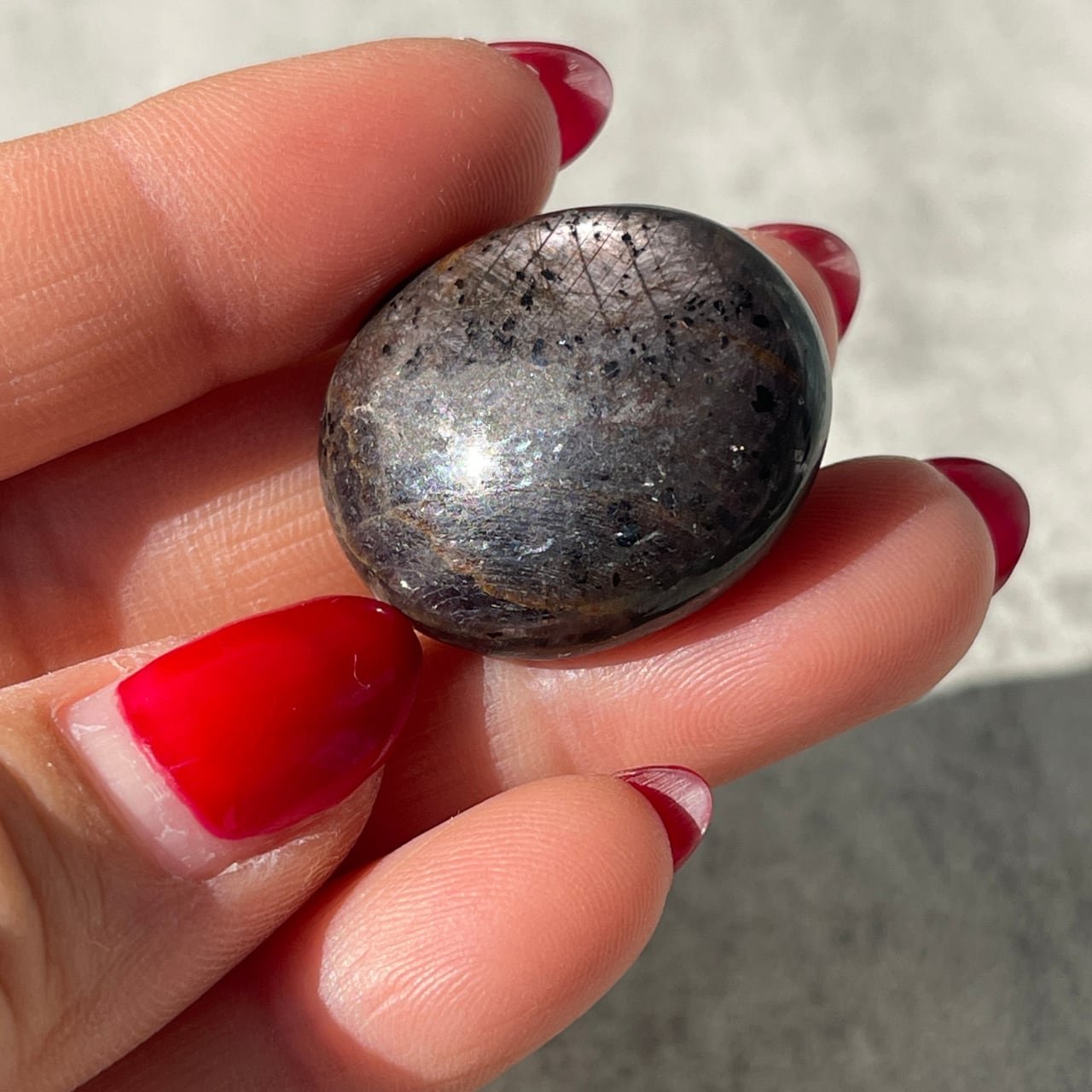 サファイアの中にうっすらスターが見える、インド産スターサファイアのタンブル。