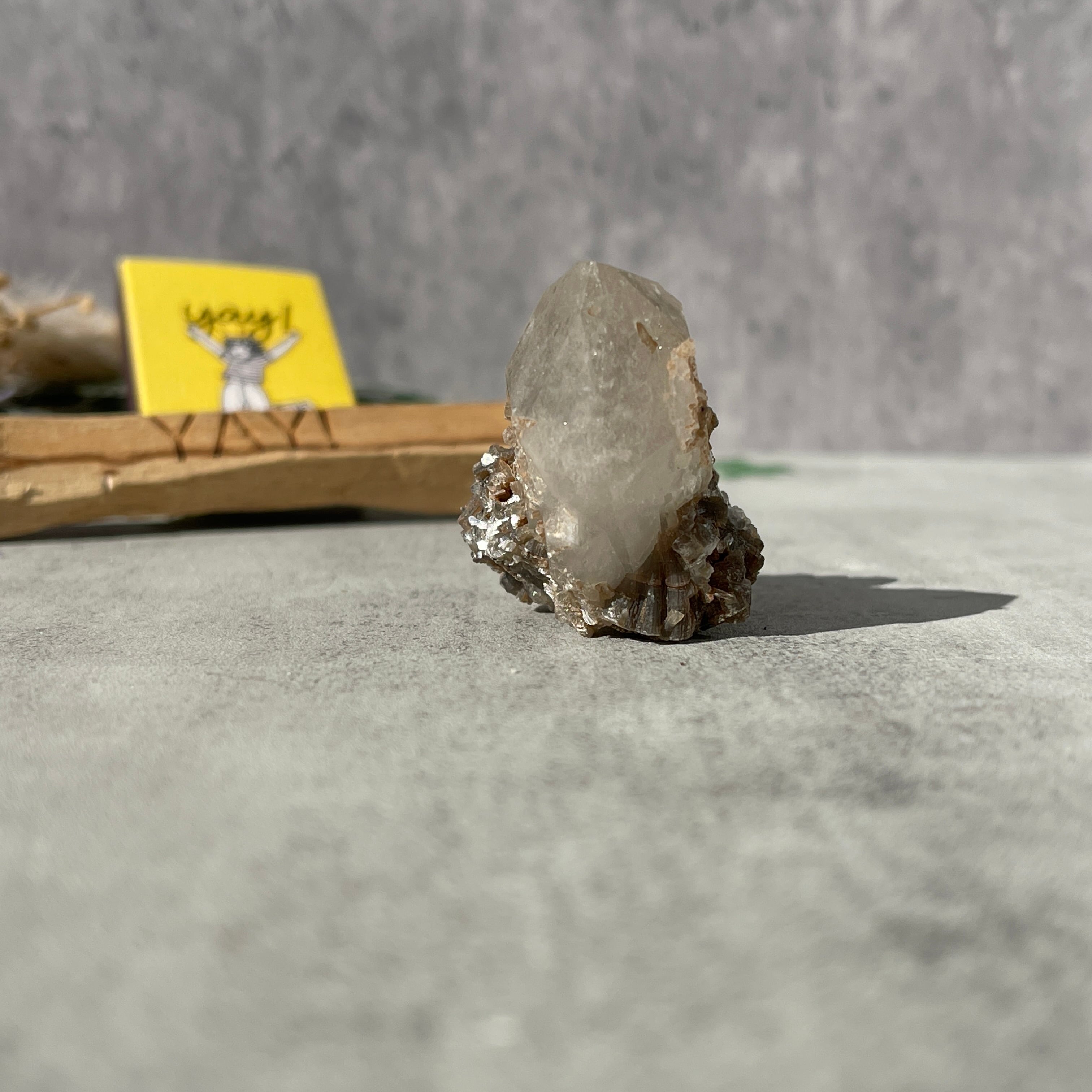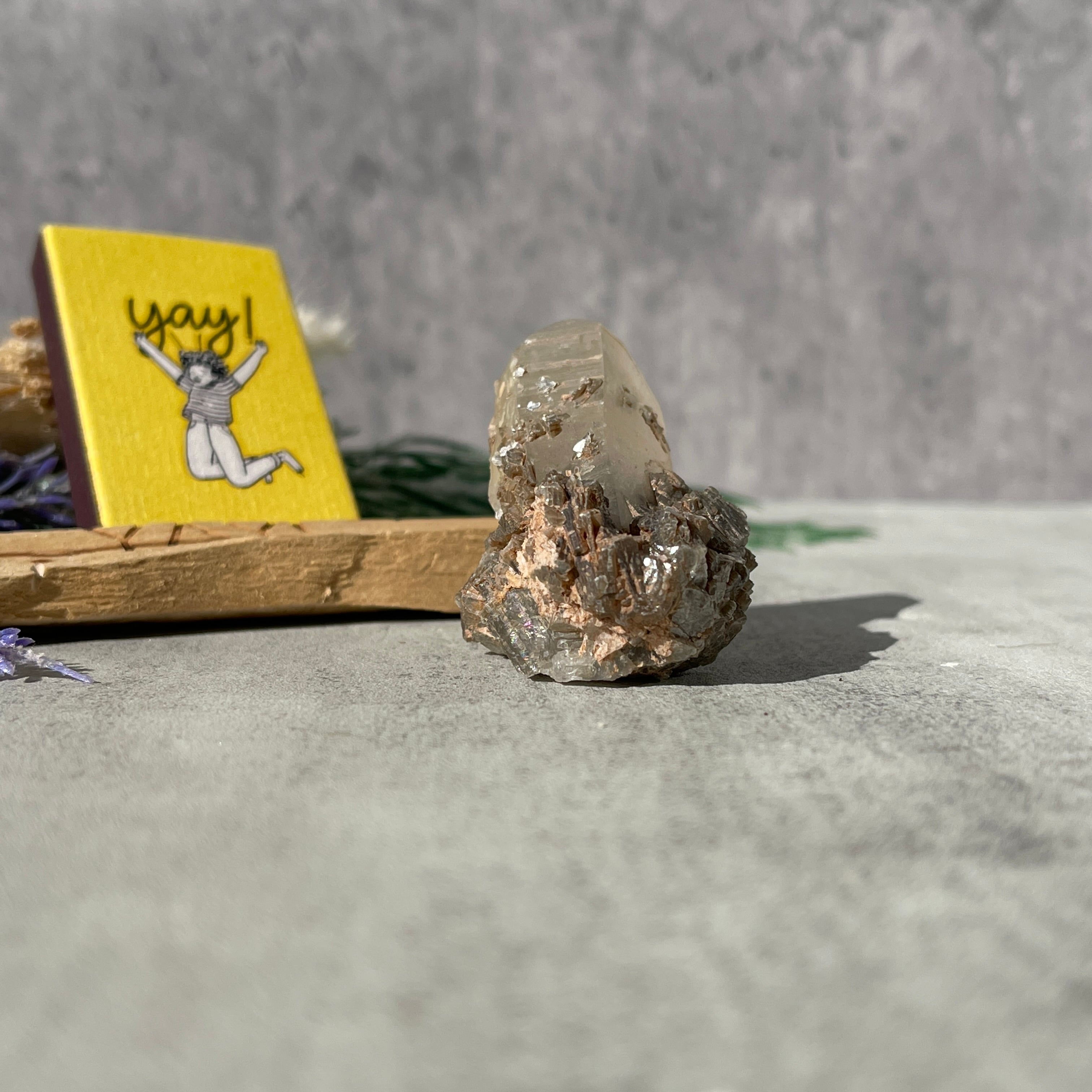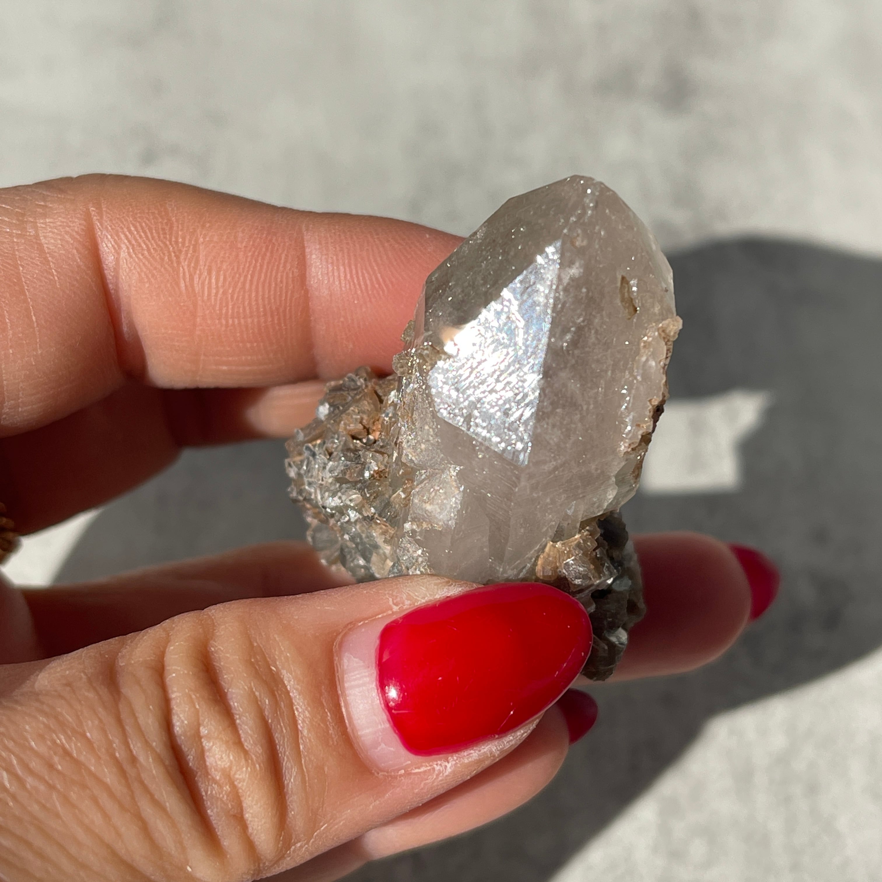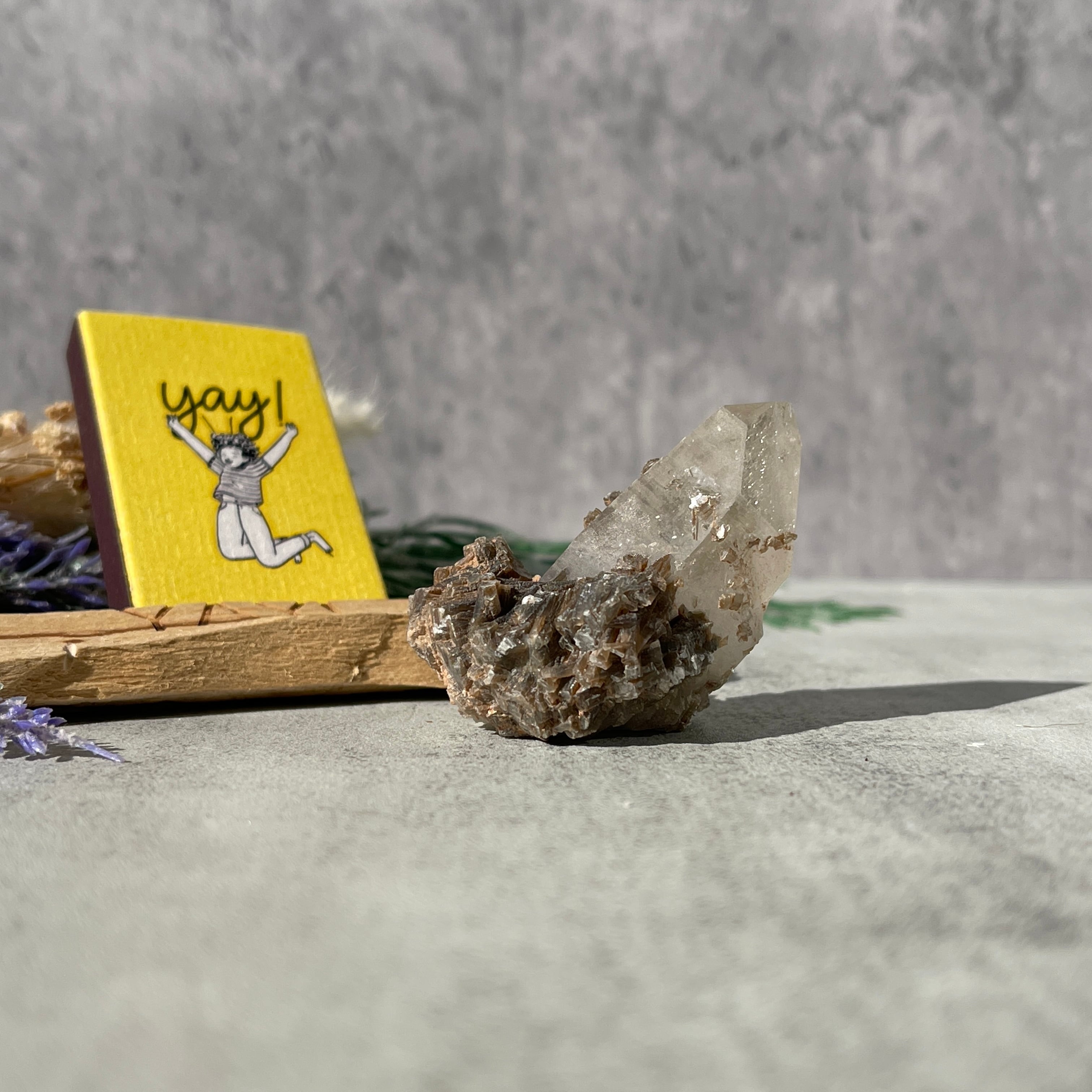 マダガスカル産のクォーツに、マイカが共生した一点物の原石です。