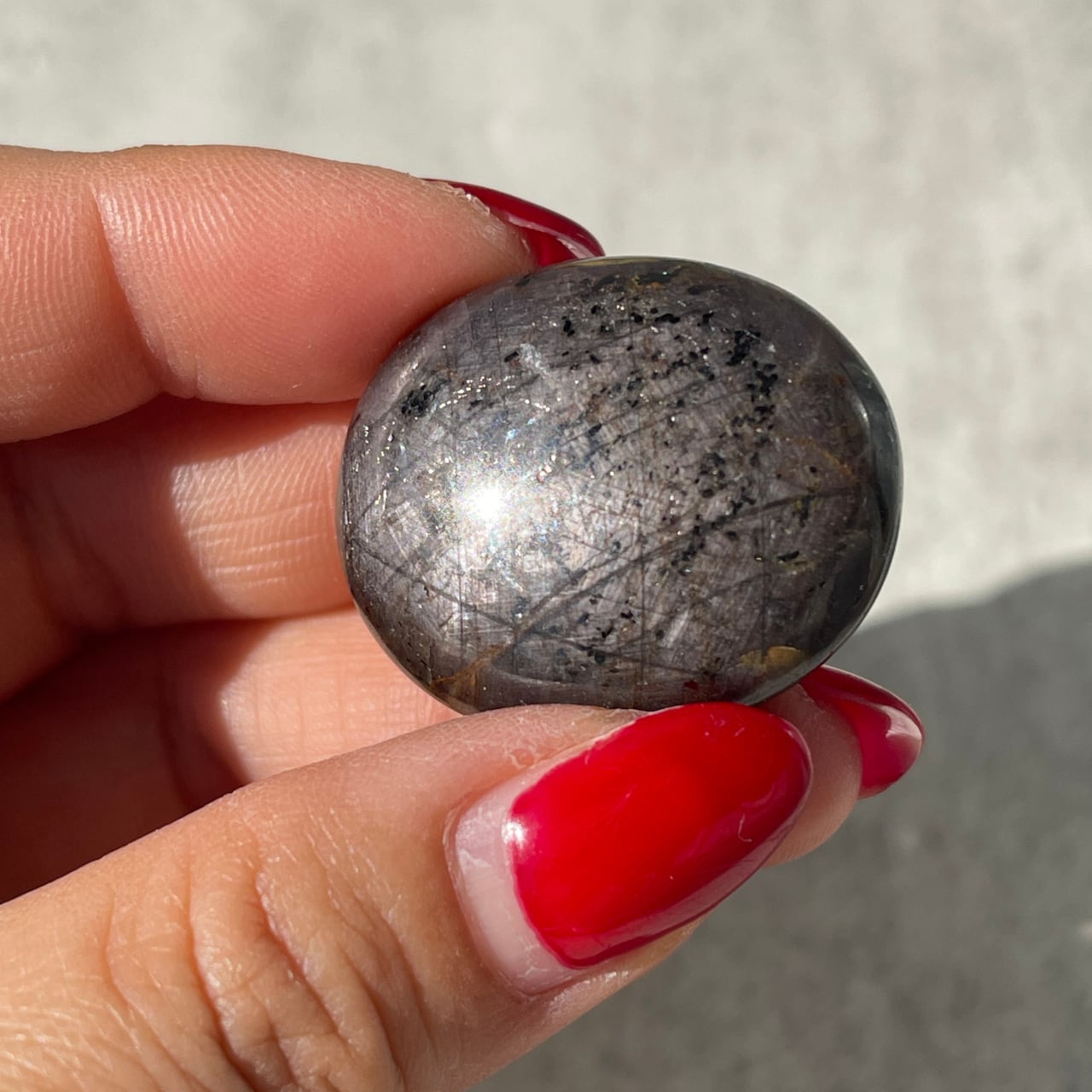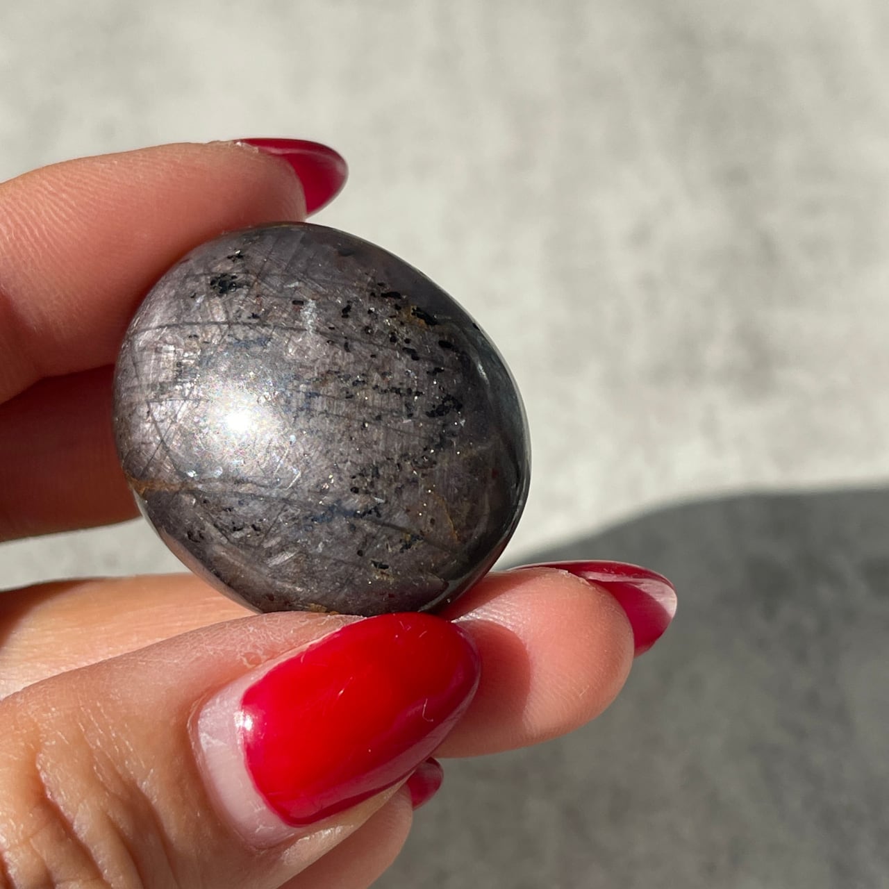 サファイアの中にうっすらスターが見える、インド産スターサファイアのタンブル。