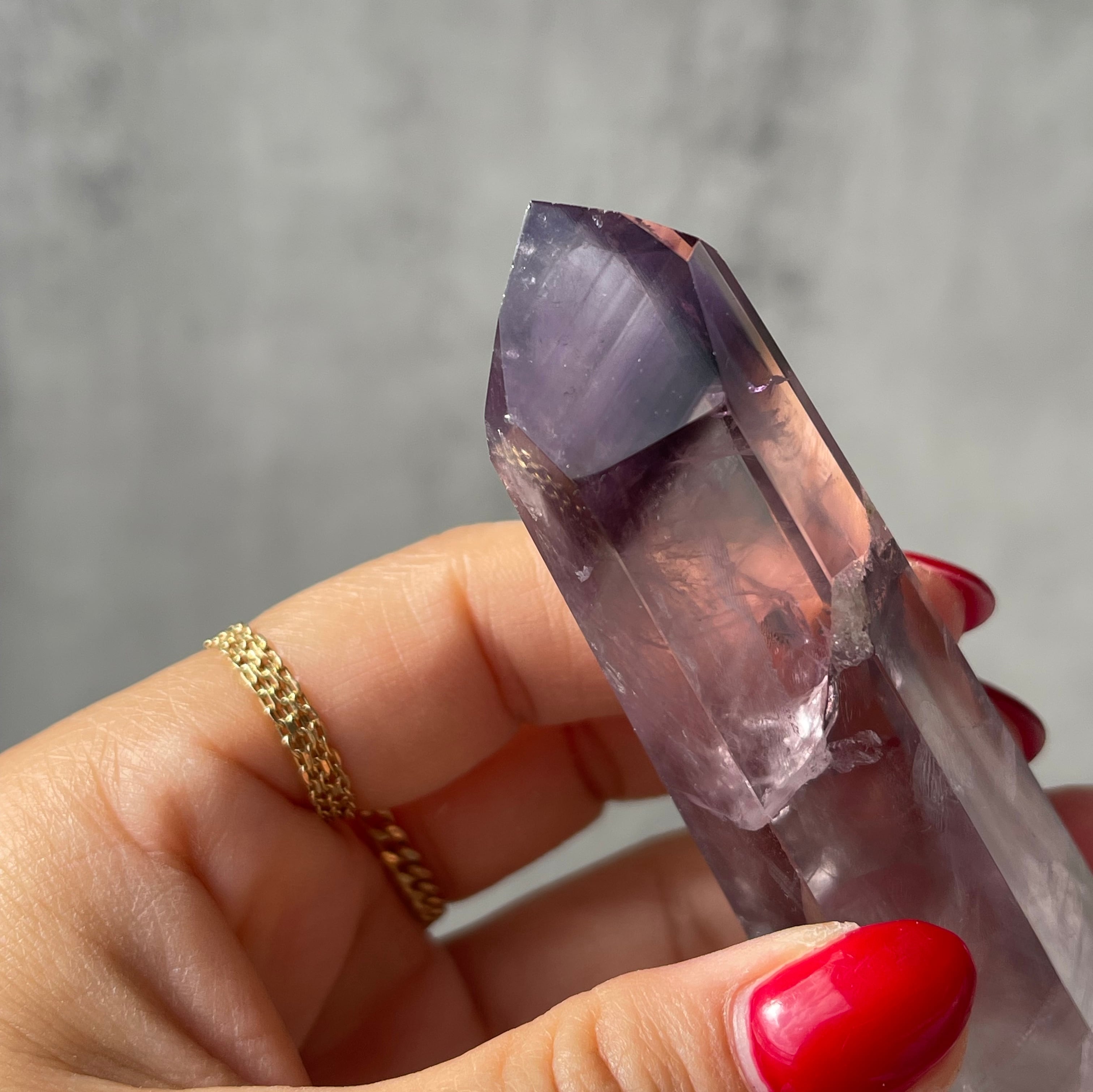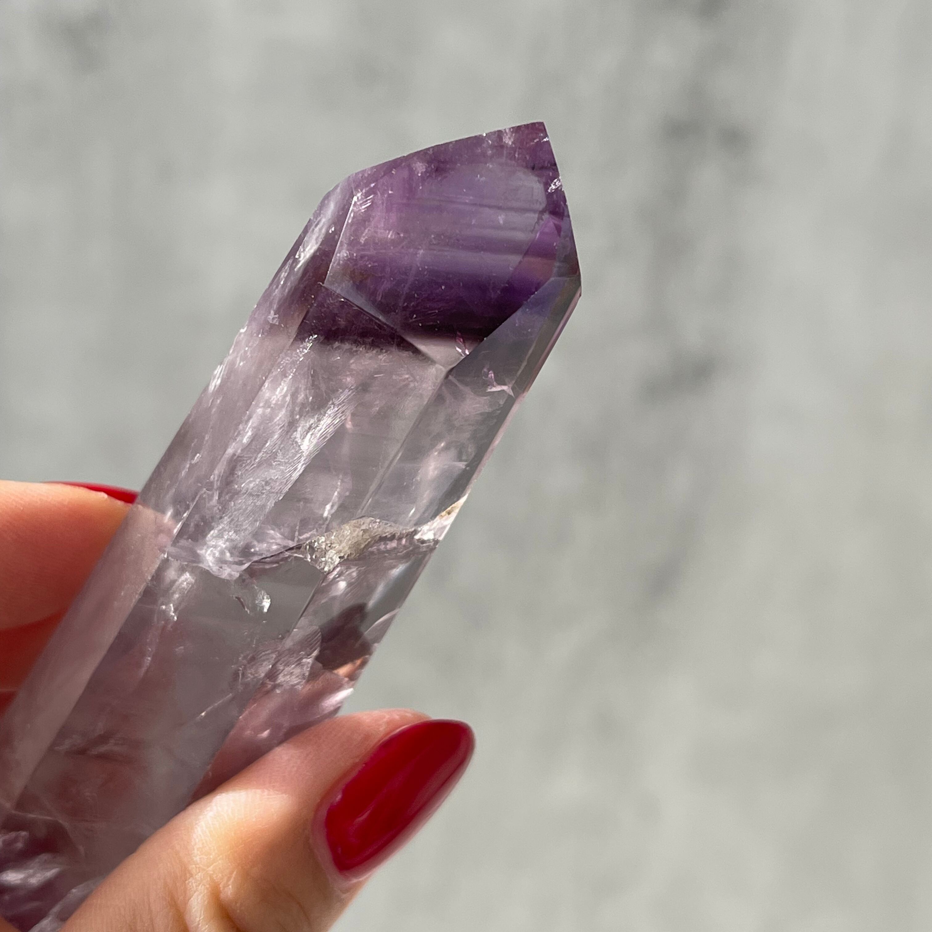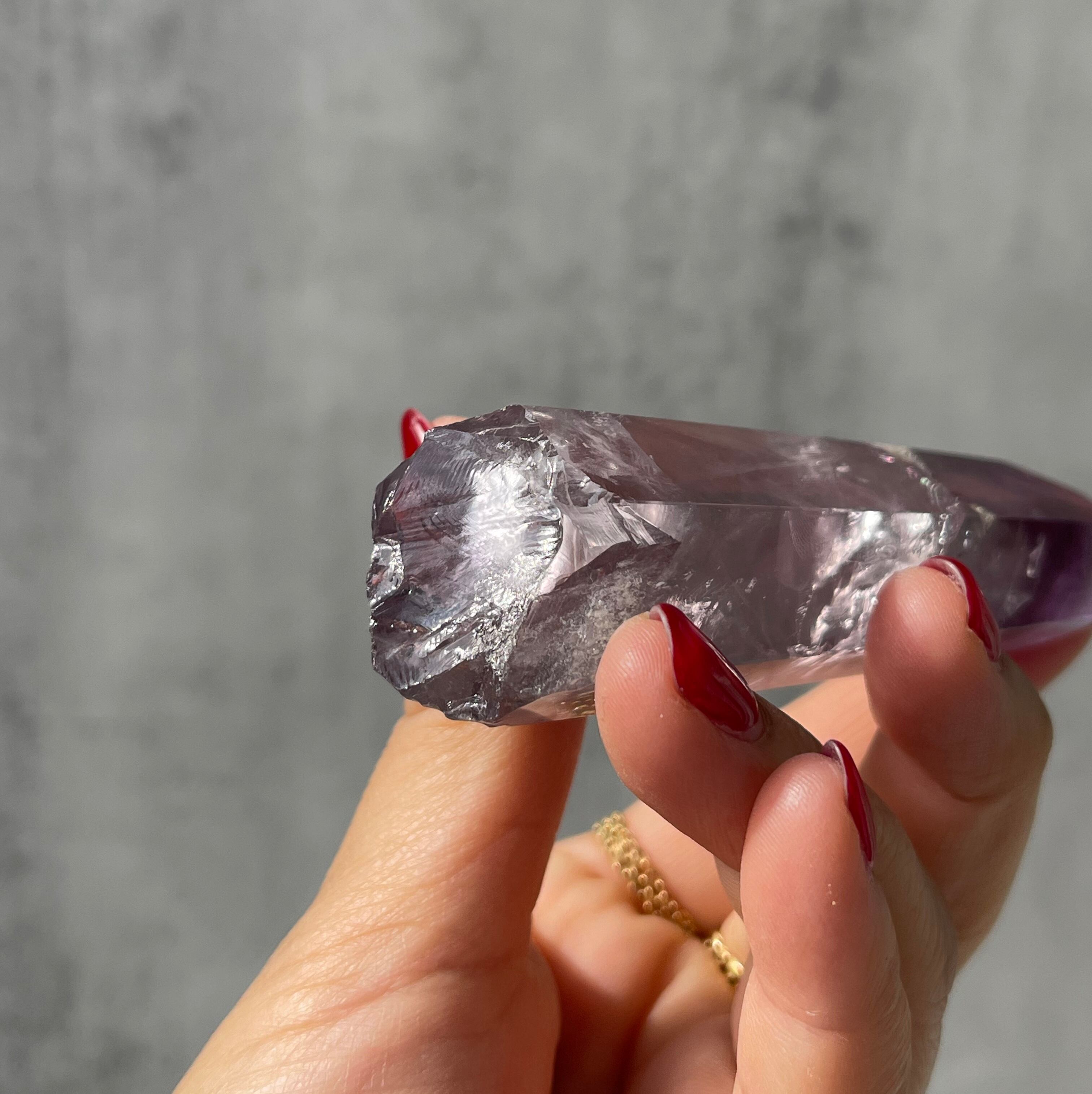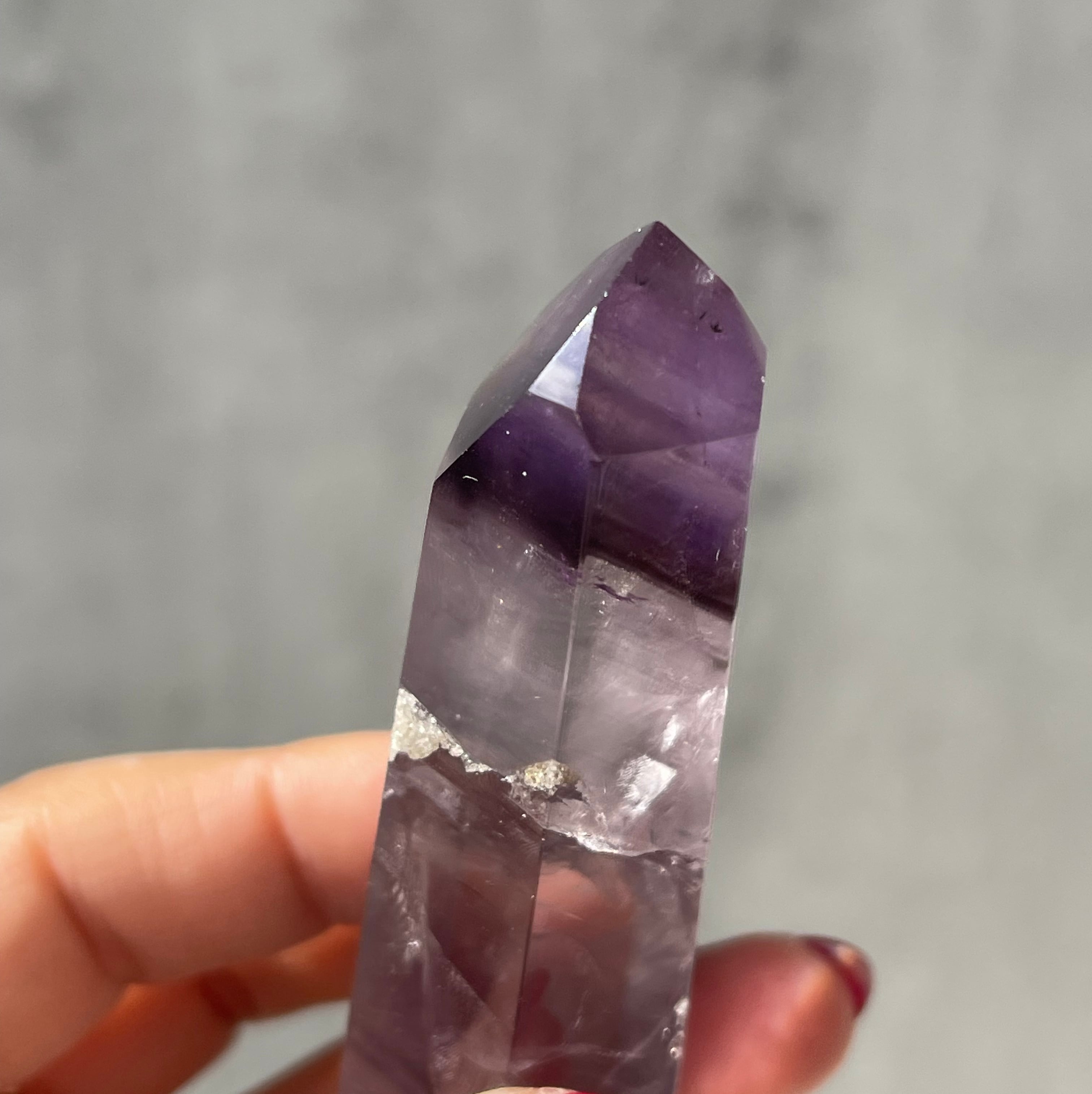 ファントム構造がはっきりと確認できる、パープルファントムアメジストのポリッシュポイント。