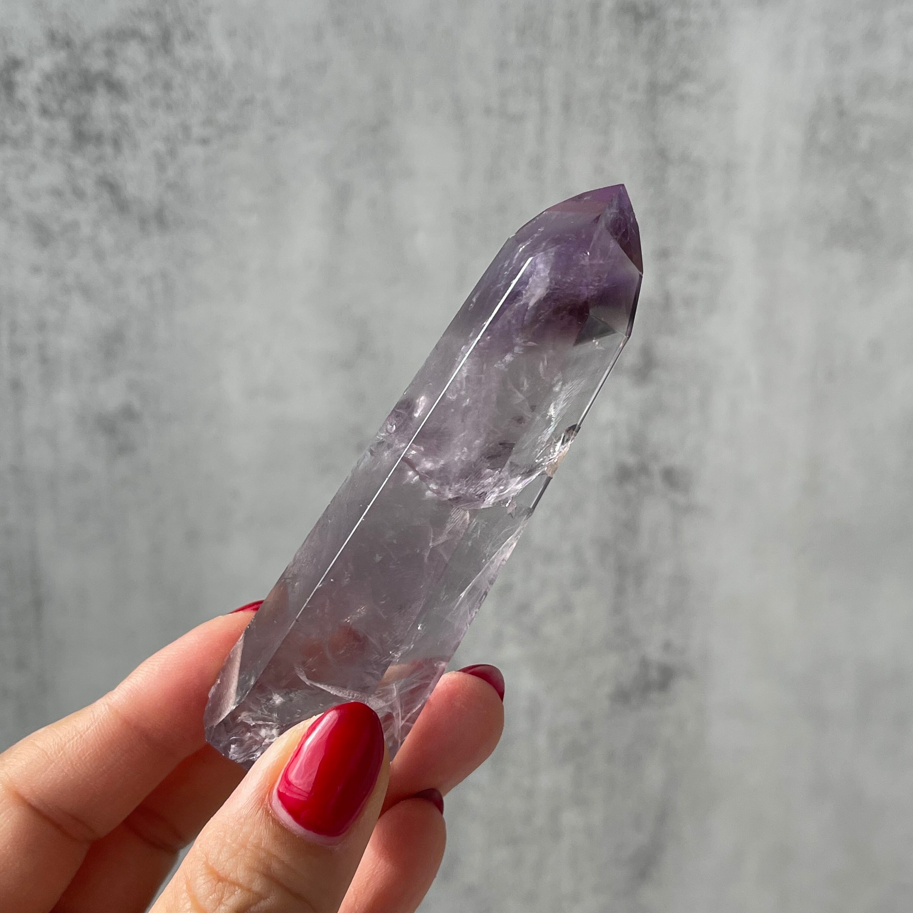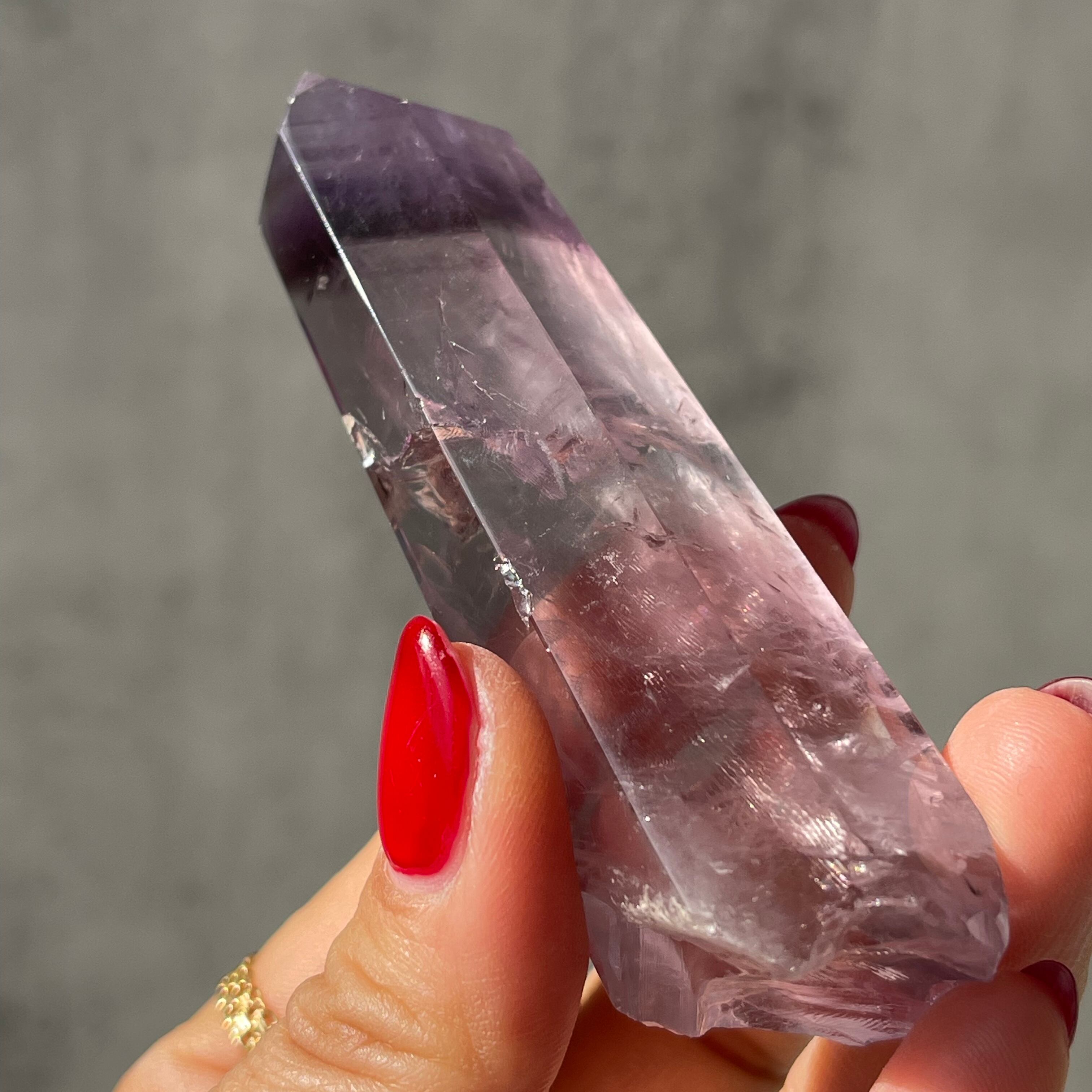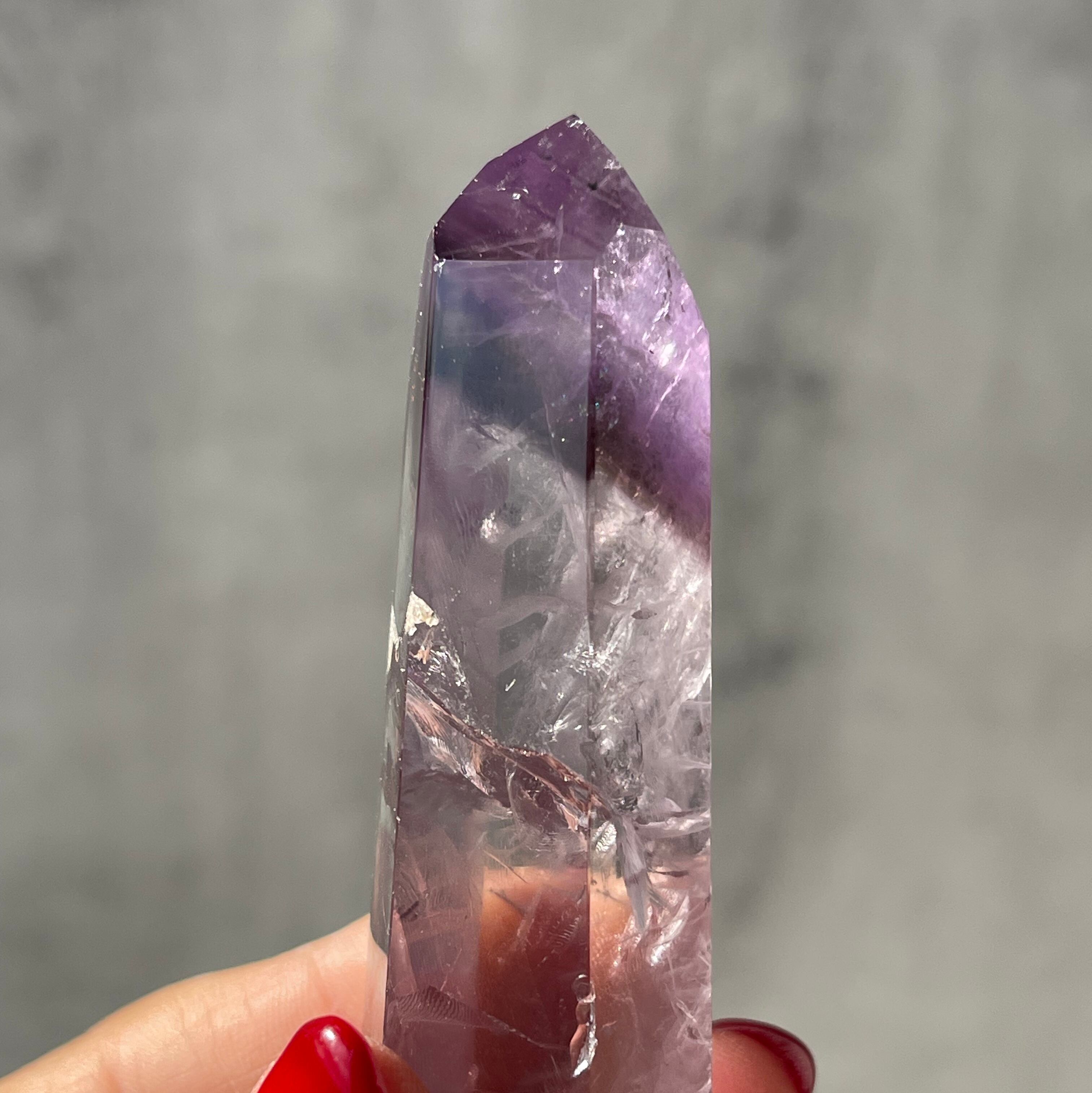 ファントム構造がはっきりと確認できる、パープルファントムアメジストのポリッシュポイント。