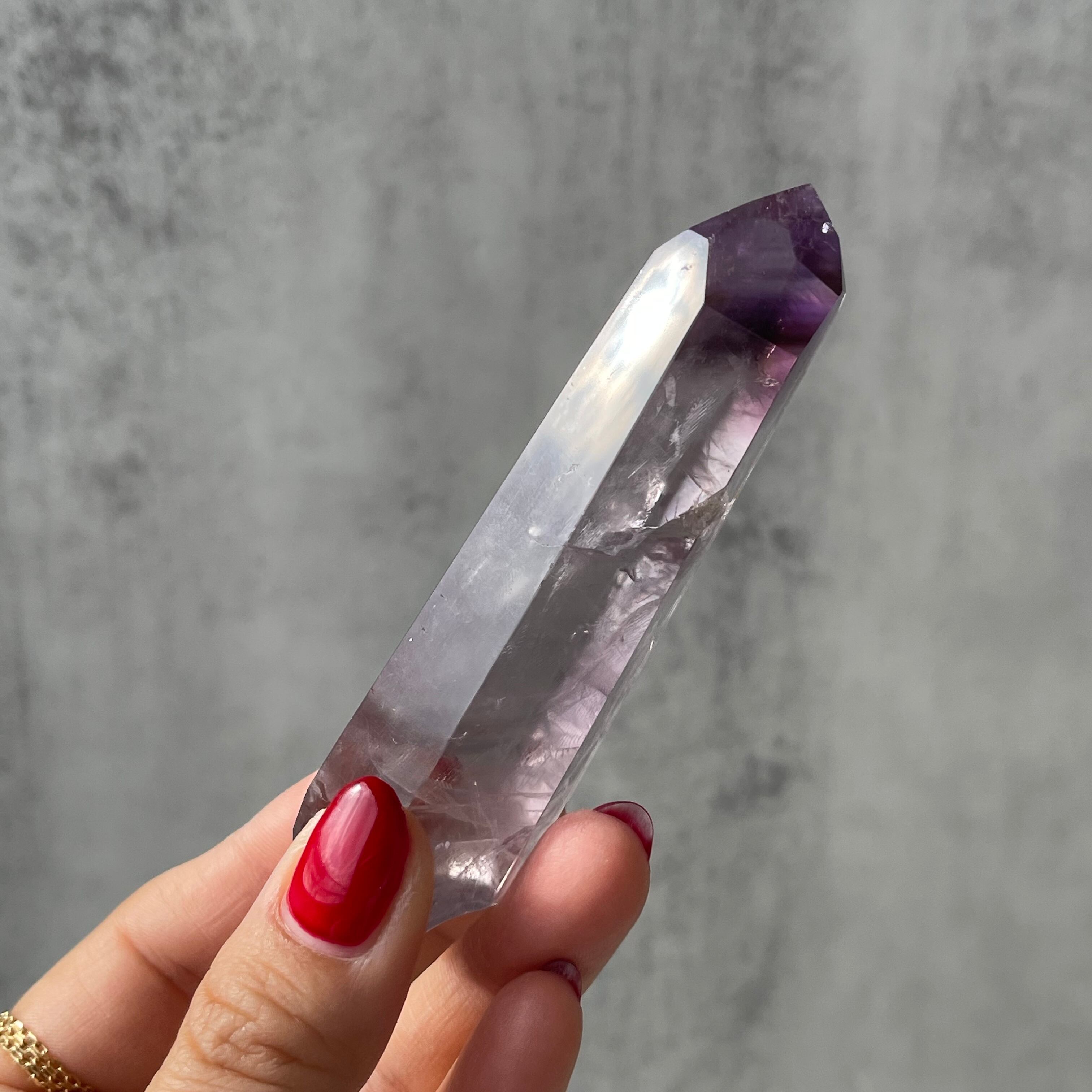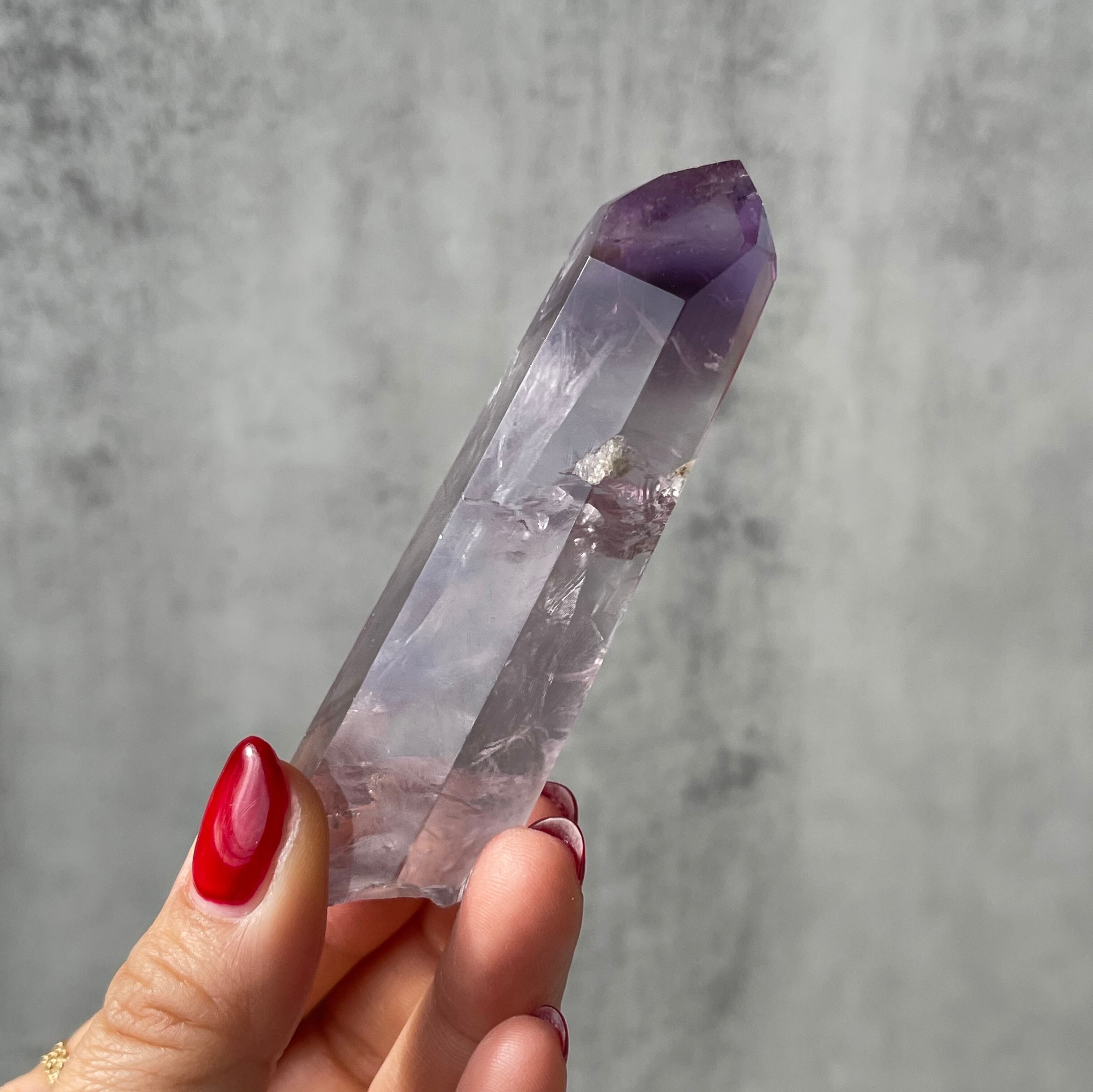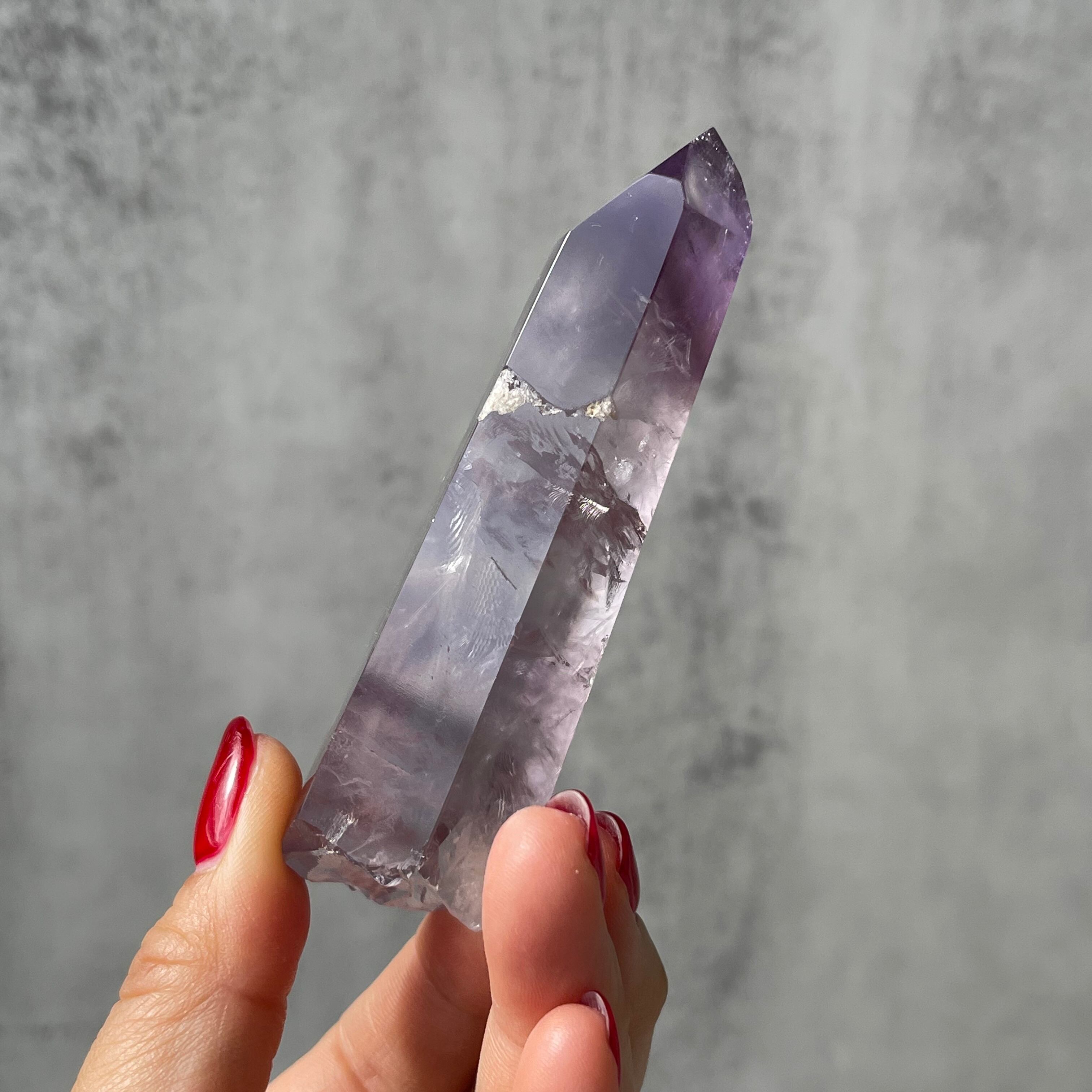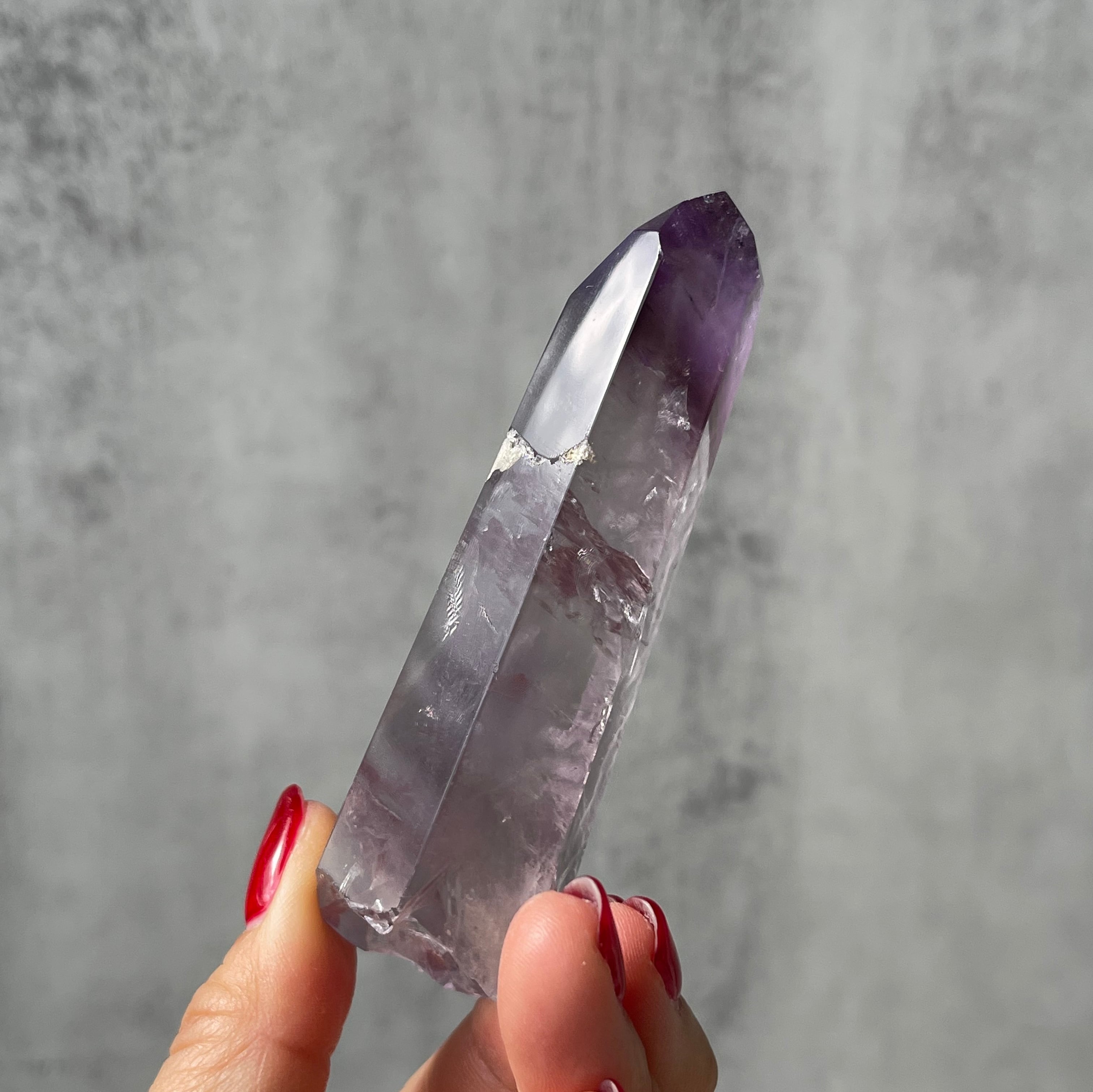 ファントム構造がはっきりと確認できる、パープルファントムアメジストのポリッシュポイント。