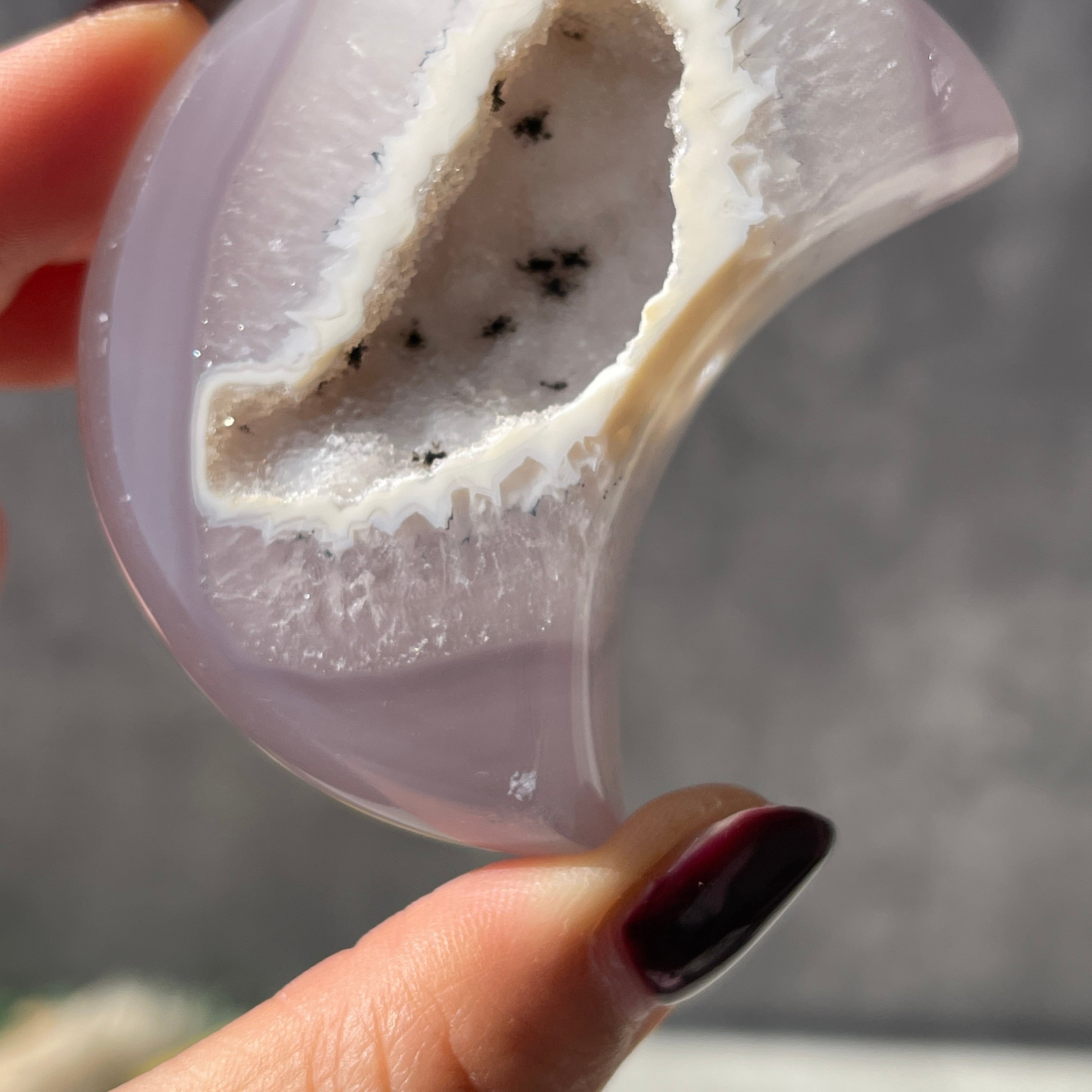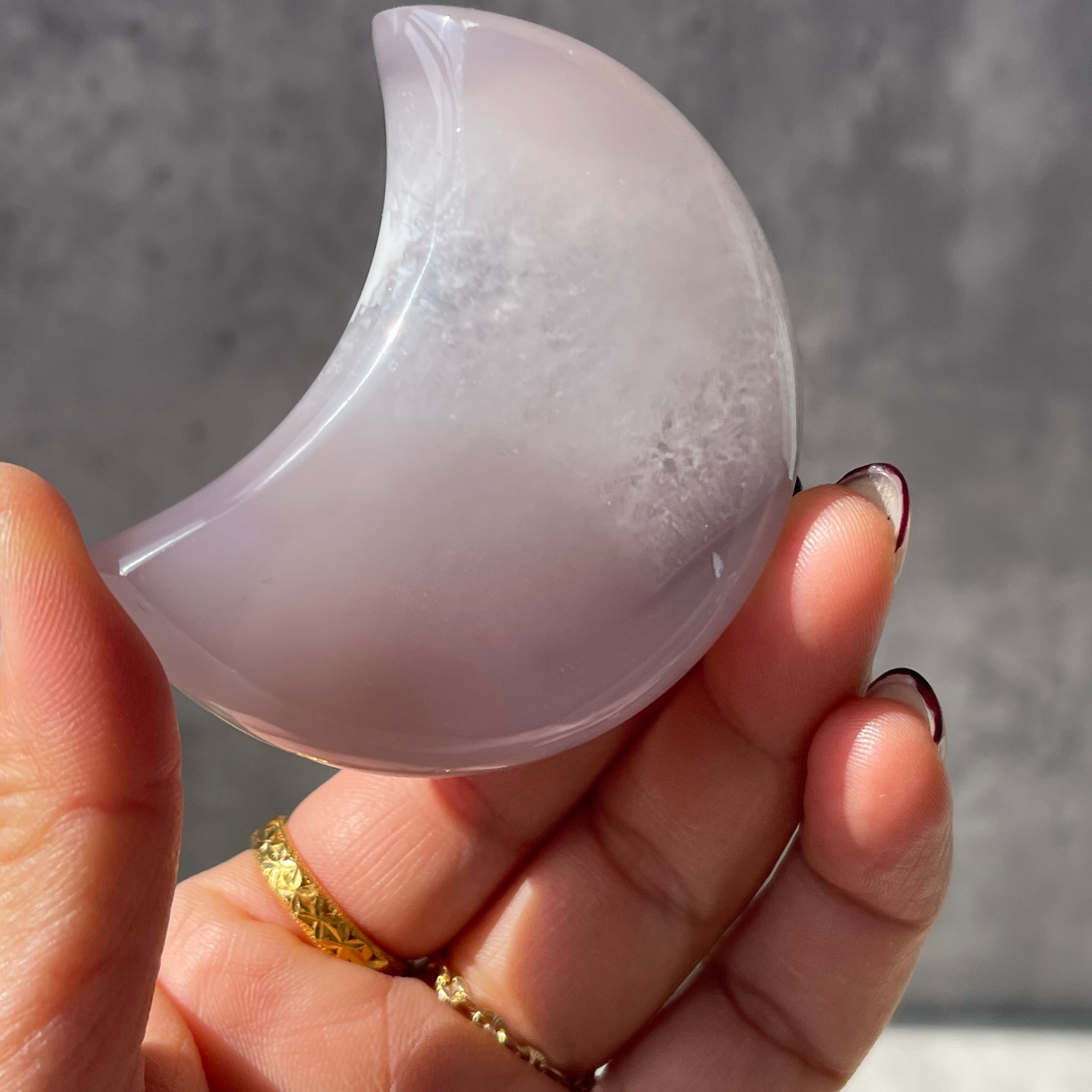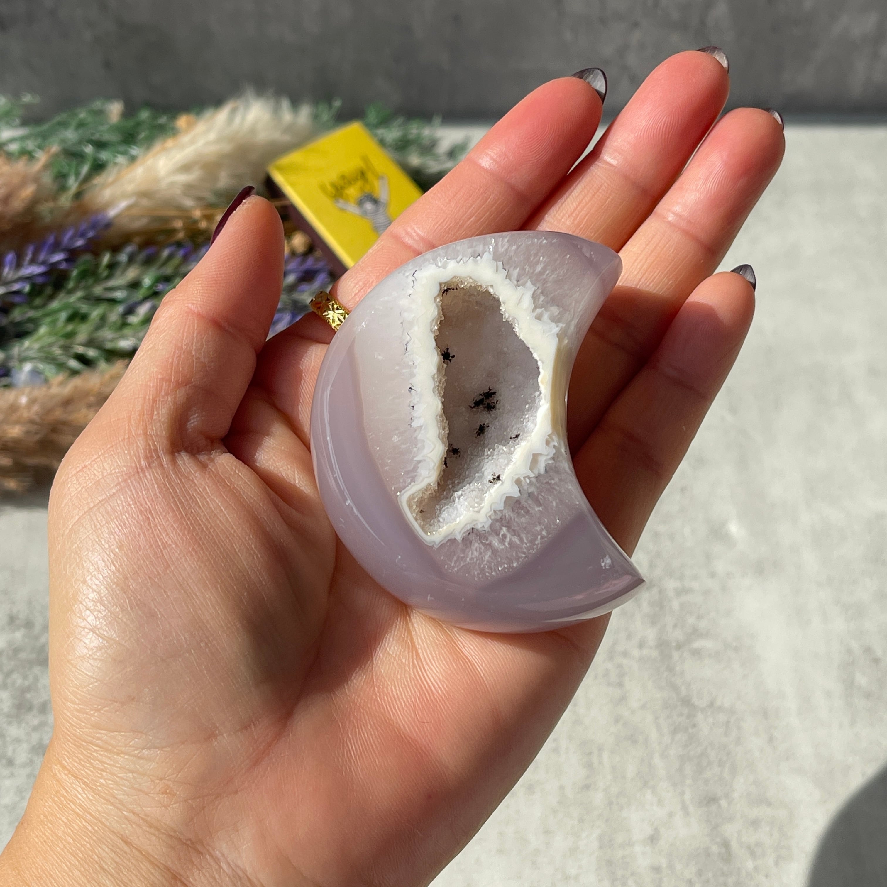 本品は、『ブラジル産のアゲート(瑪瑙)』を月の形に磨き上げた『ムーンシェイプの原石オブジェ』です。