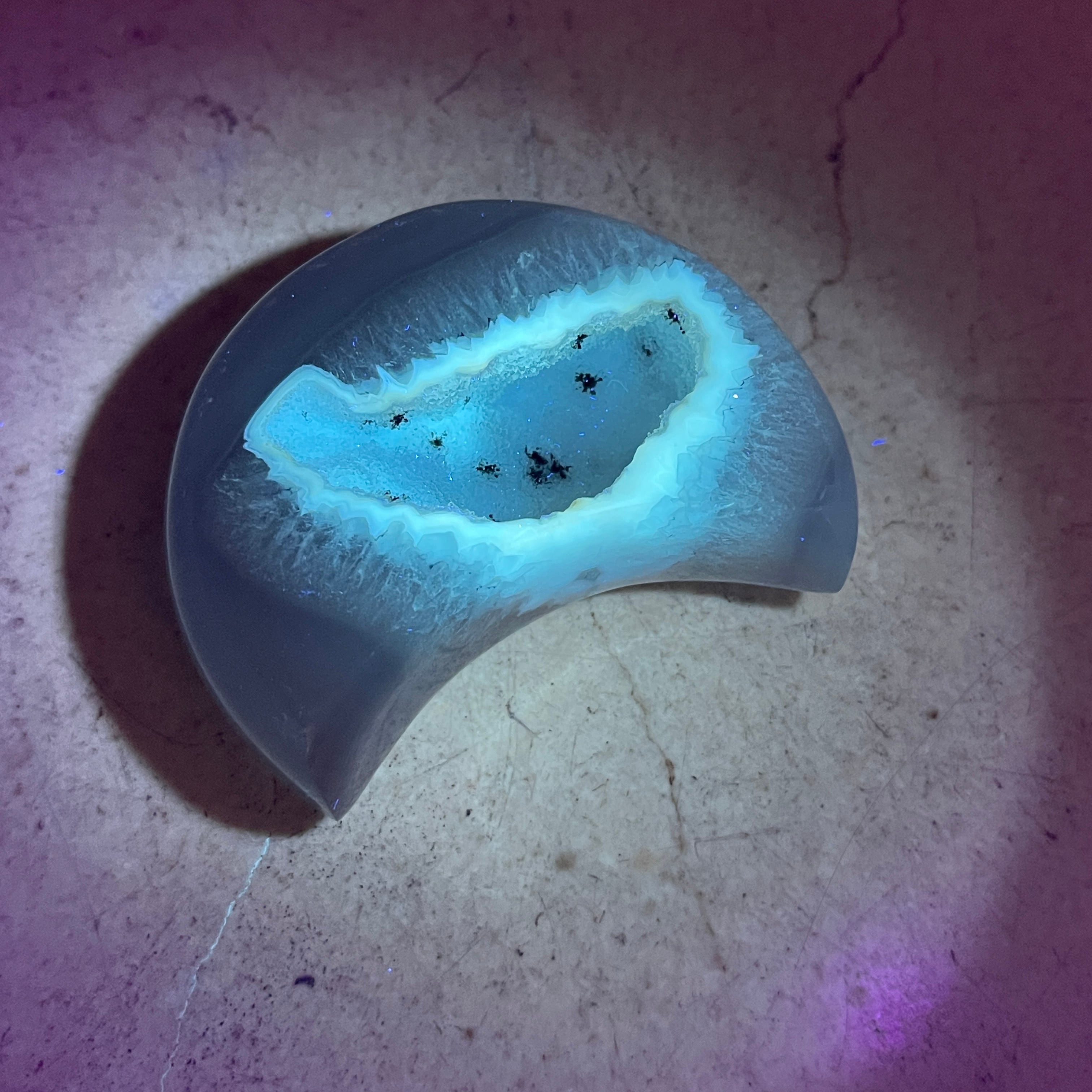 このアゲートムーンは、『ブラックライト(UVライト)を当てると反応する部分』があります。