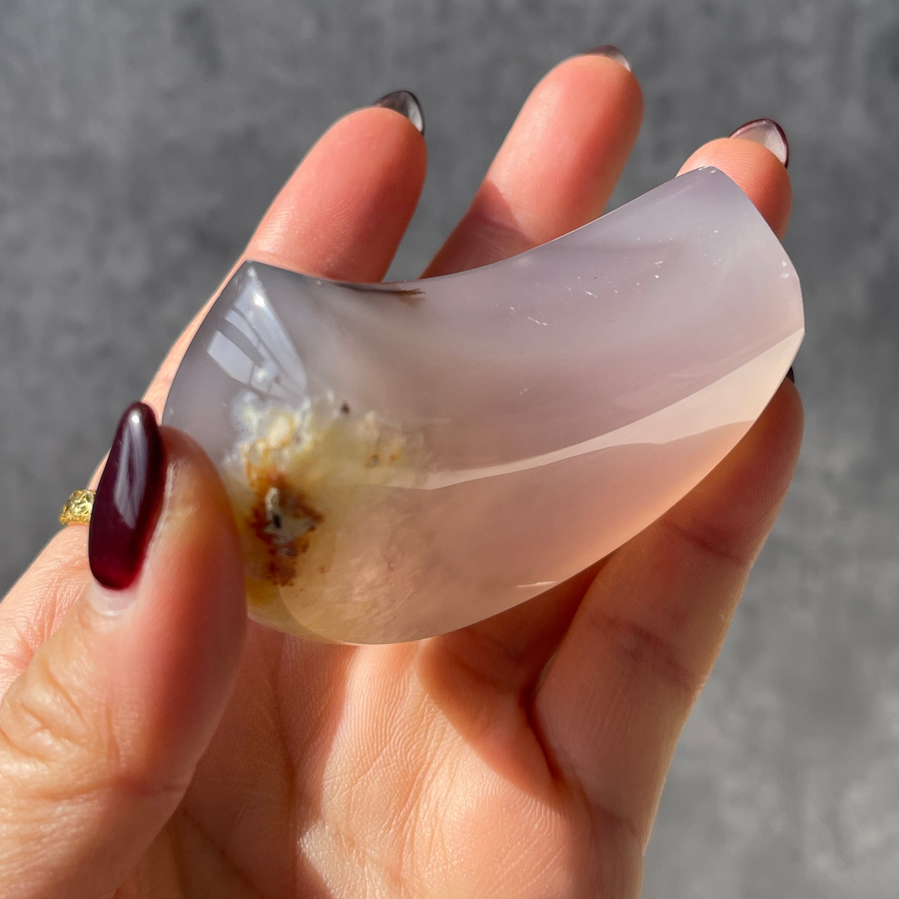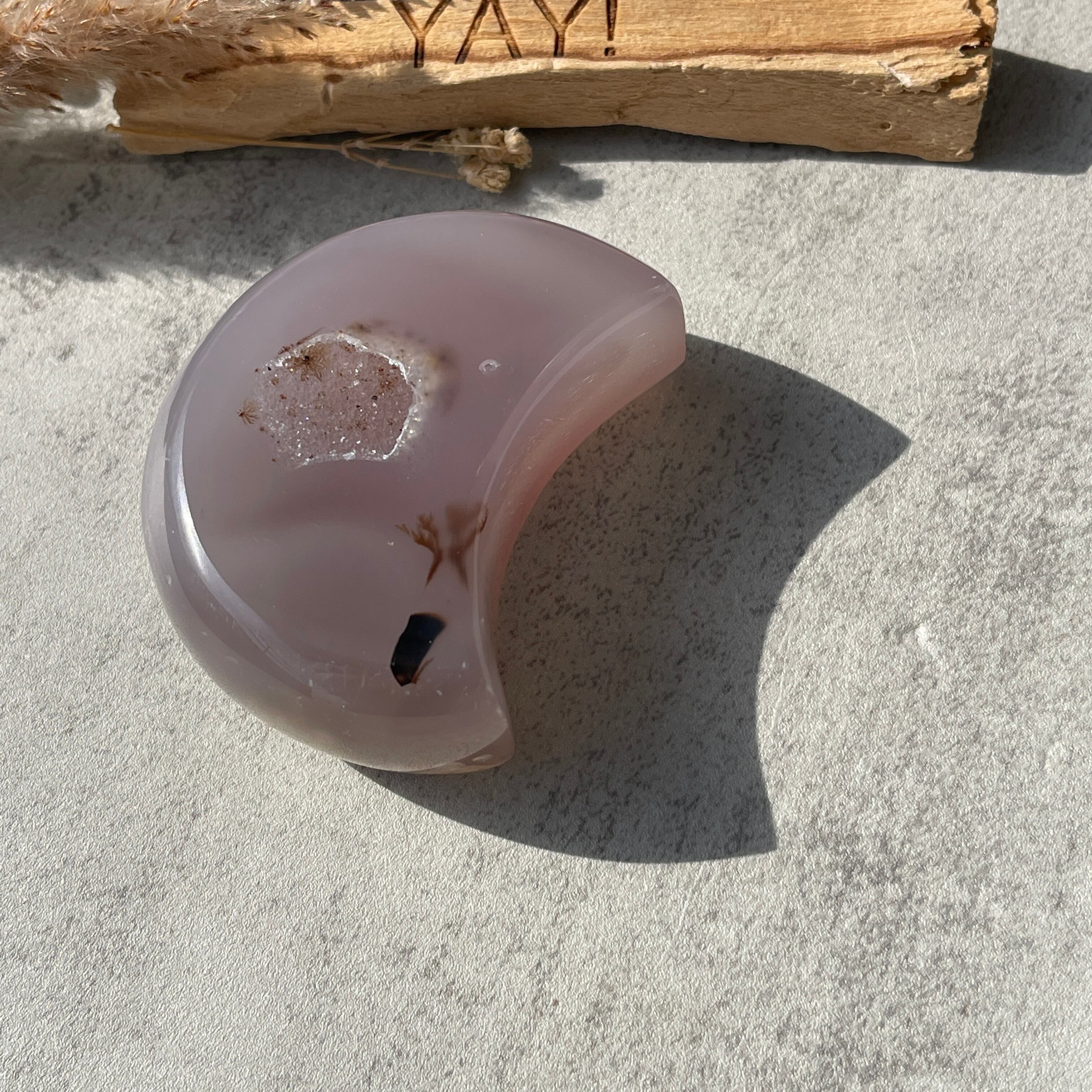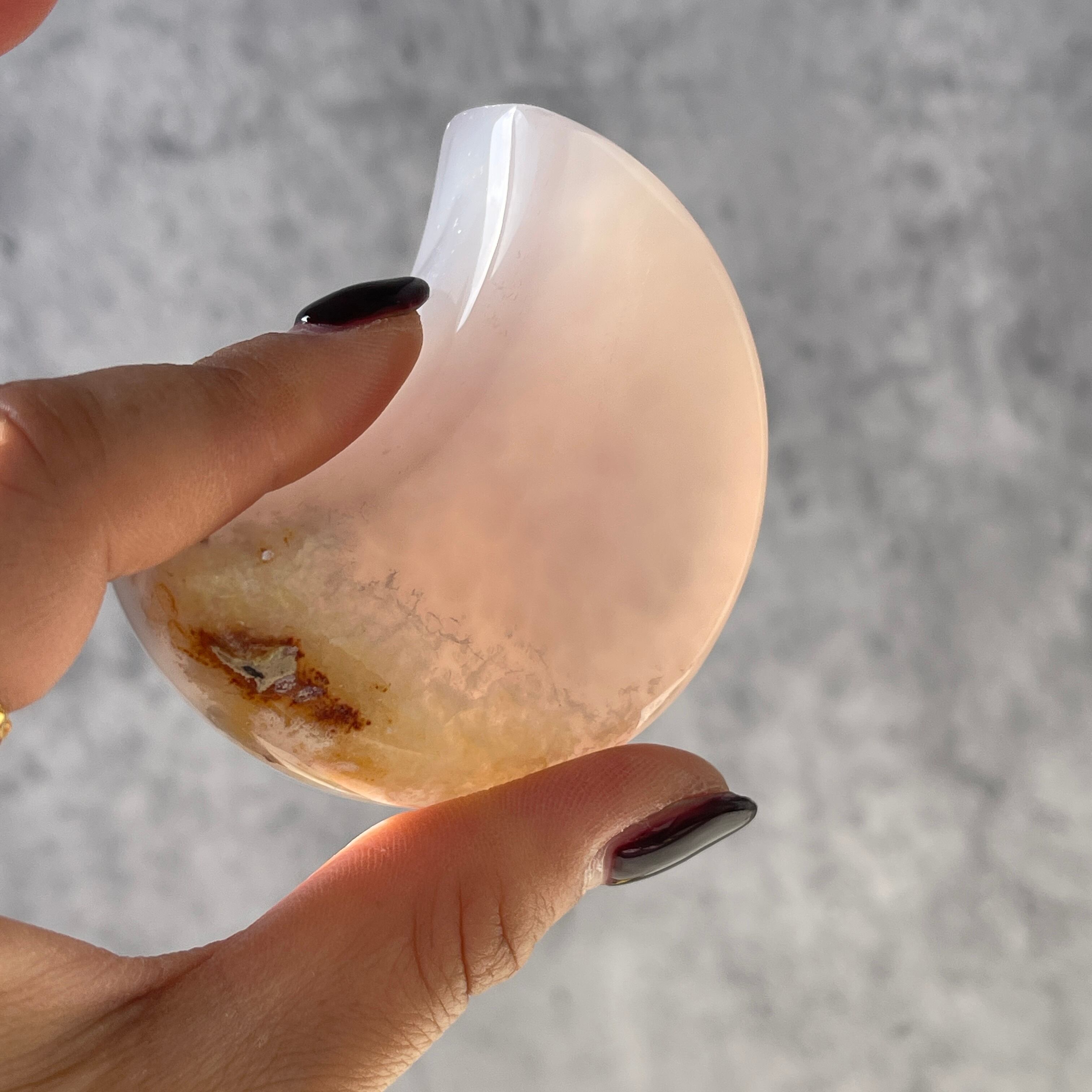 本品は、『ブラジル産のデンドリティックアゲート(瑪瑙)』を月の形に磨き上げた『ムーンシェイプの原石』です。