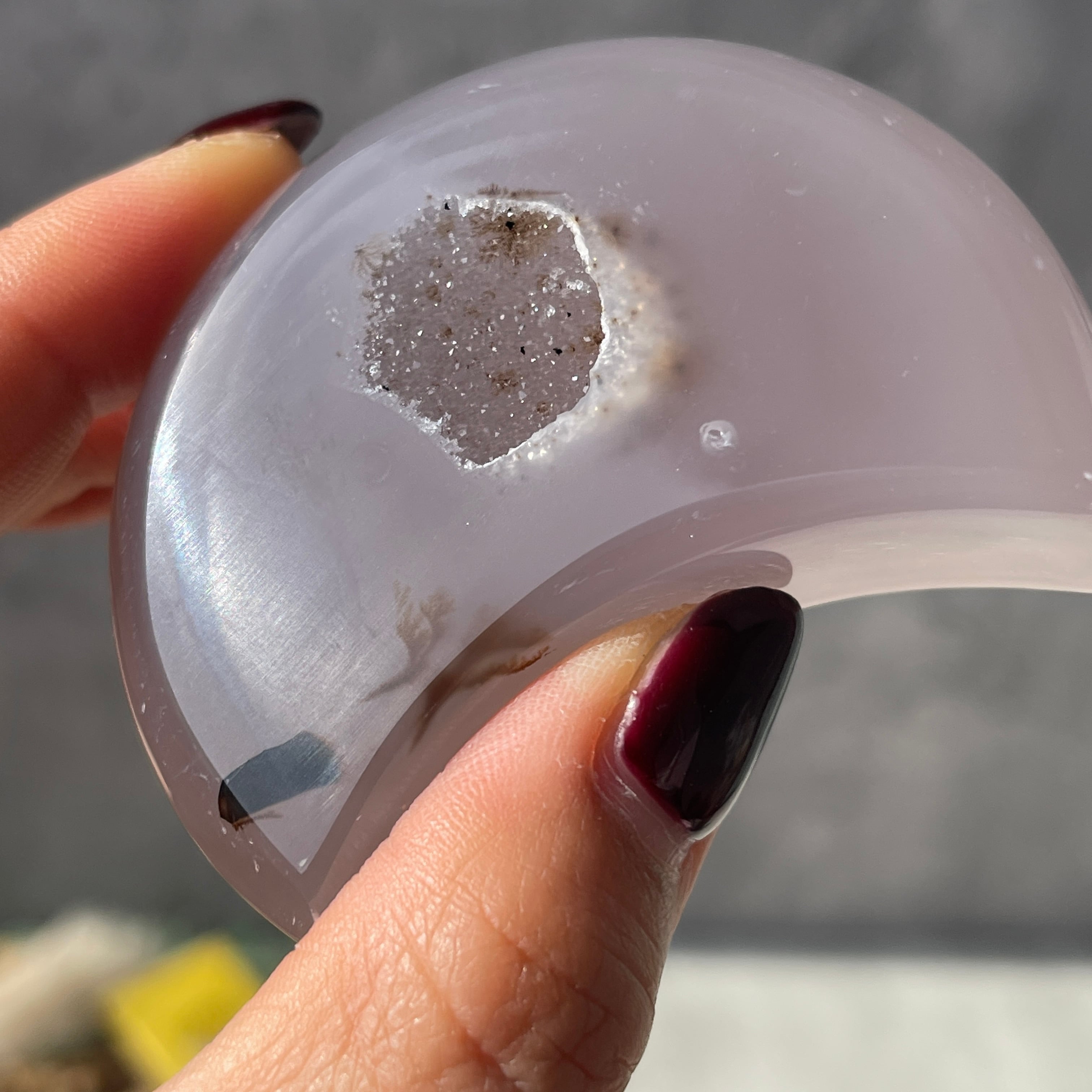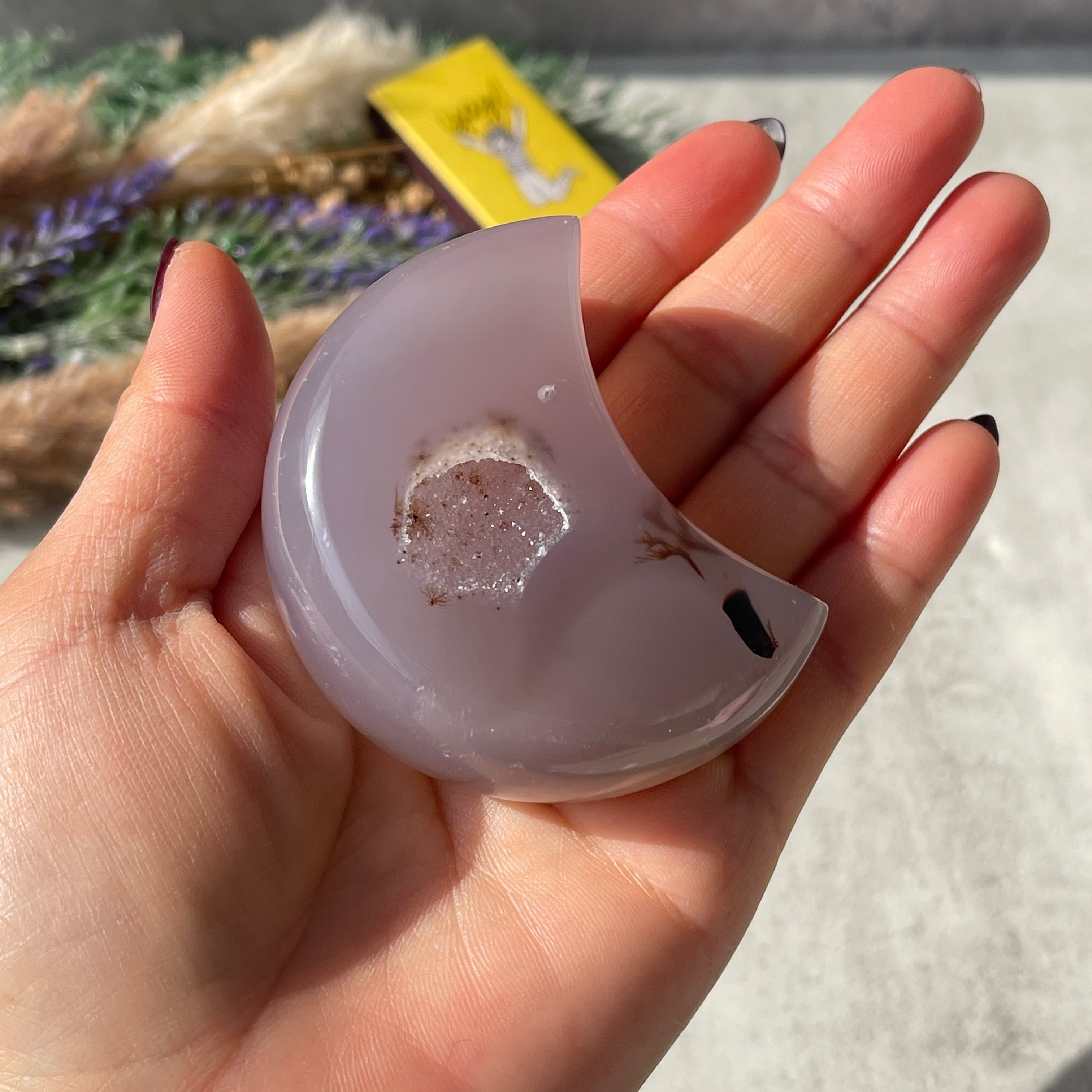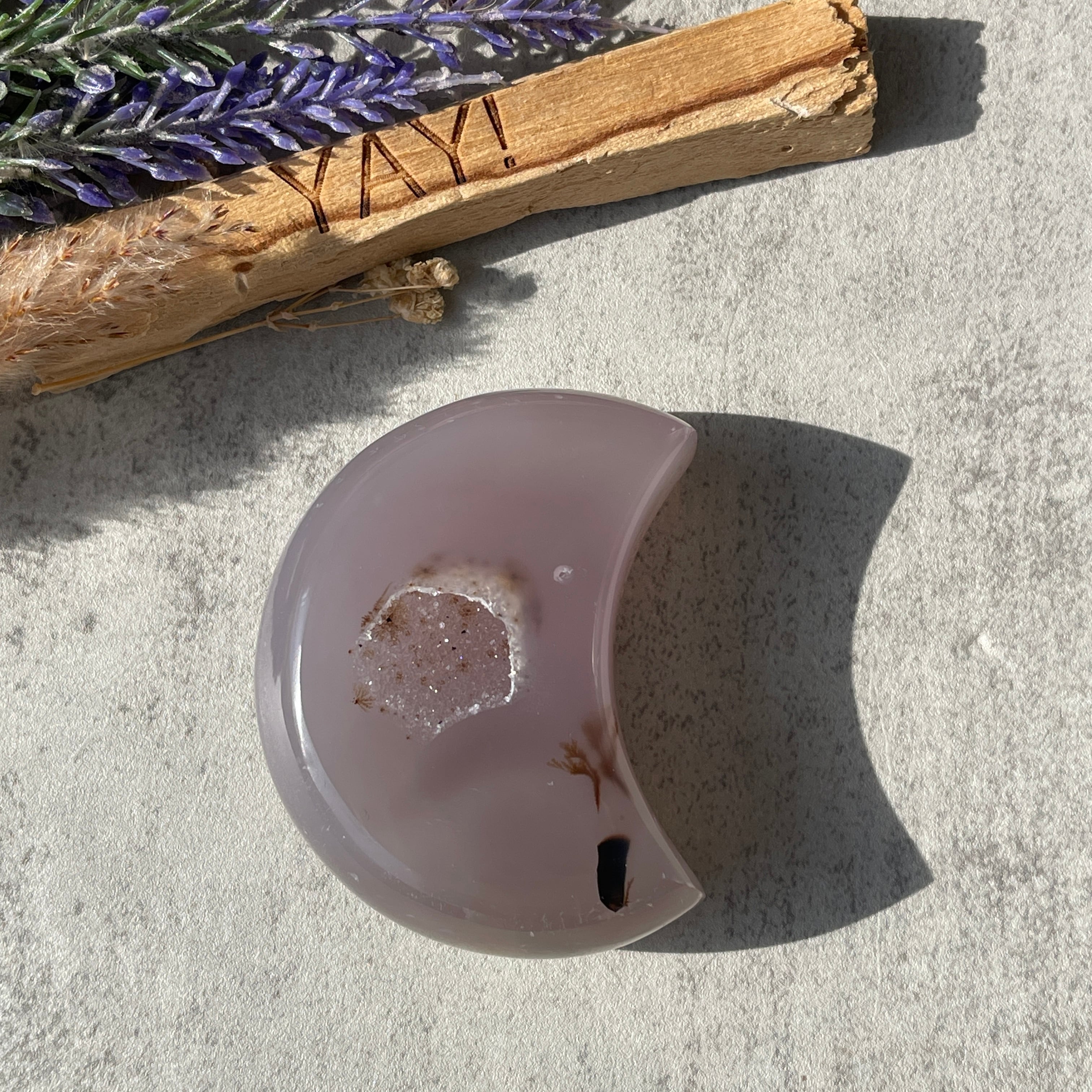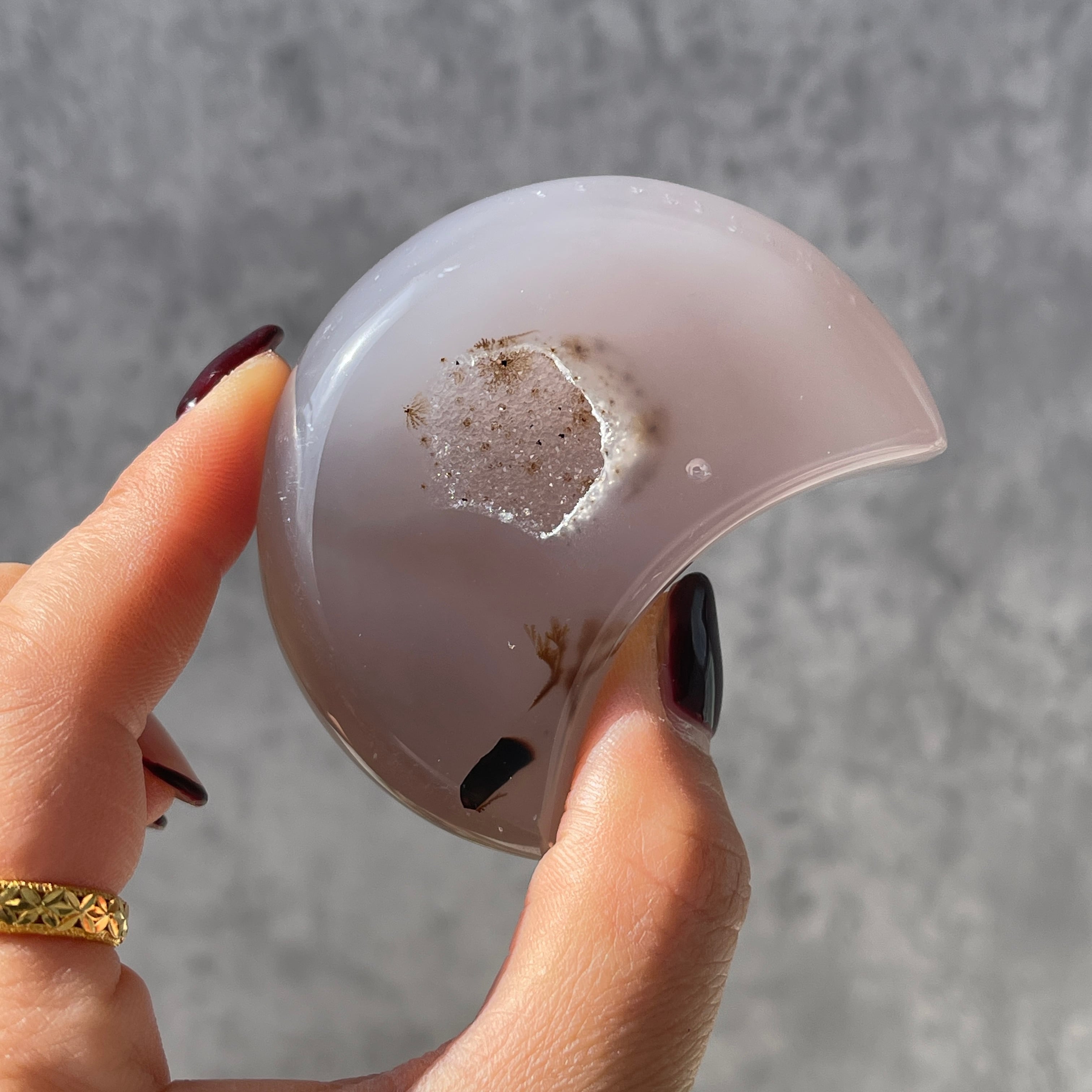 本品は、『ブラジル産のデンドリティックアゲート(瑪瑙)』を月の形に磨き上げた『ムーンシェイプの原石』です。