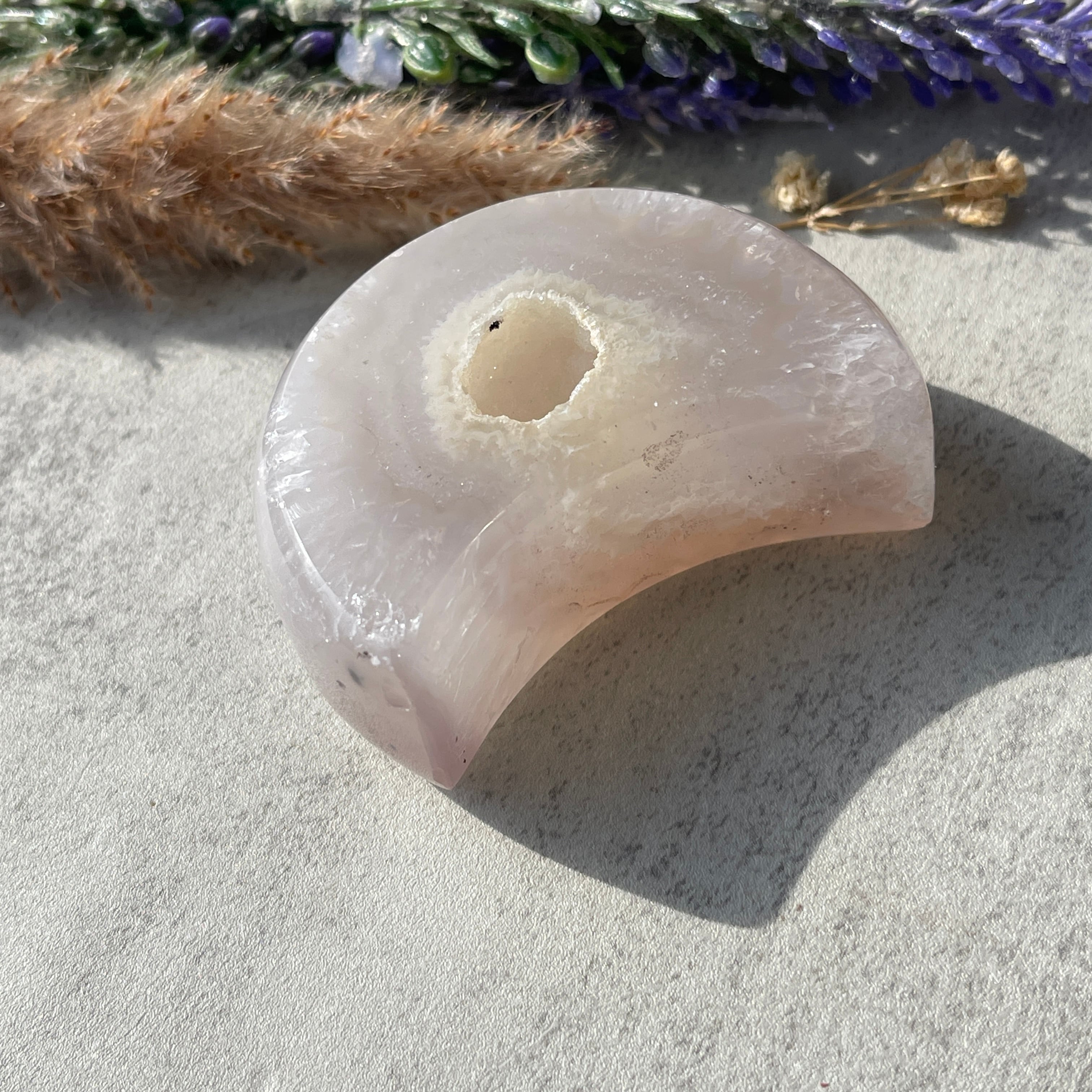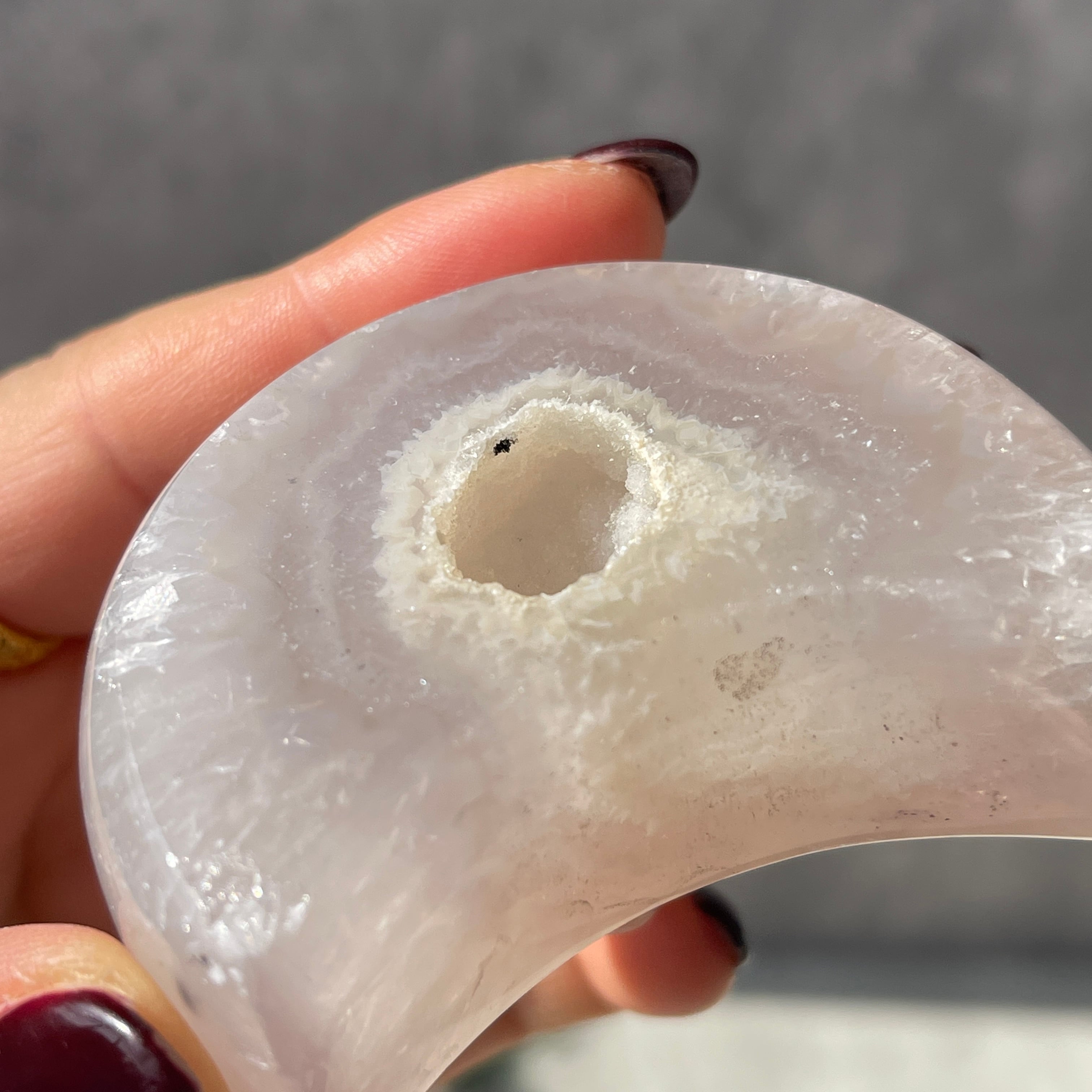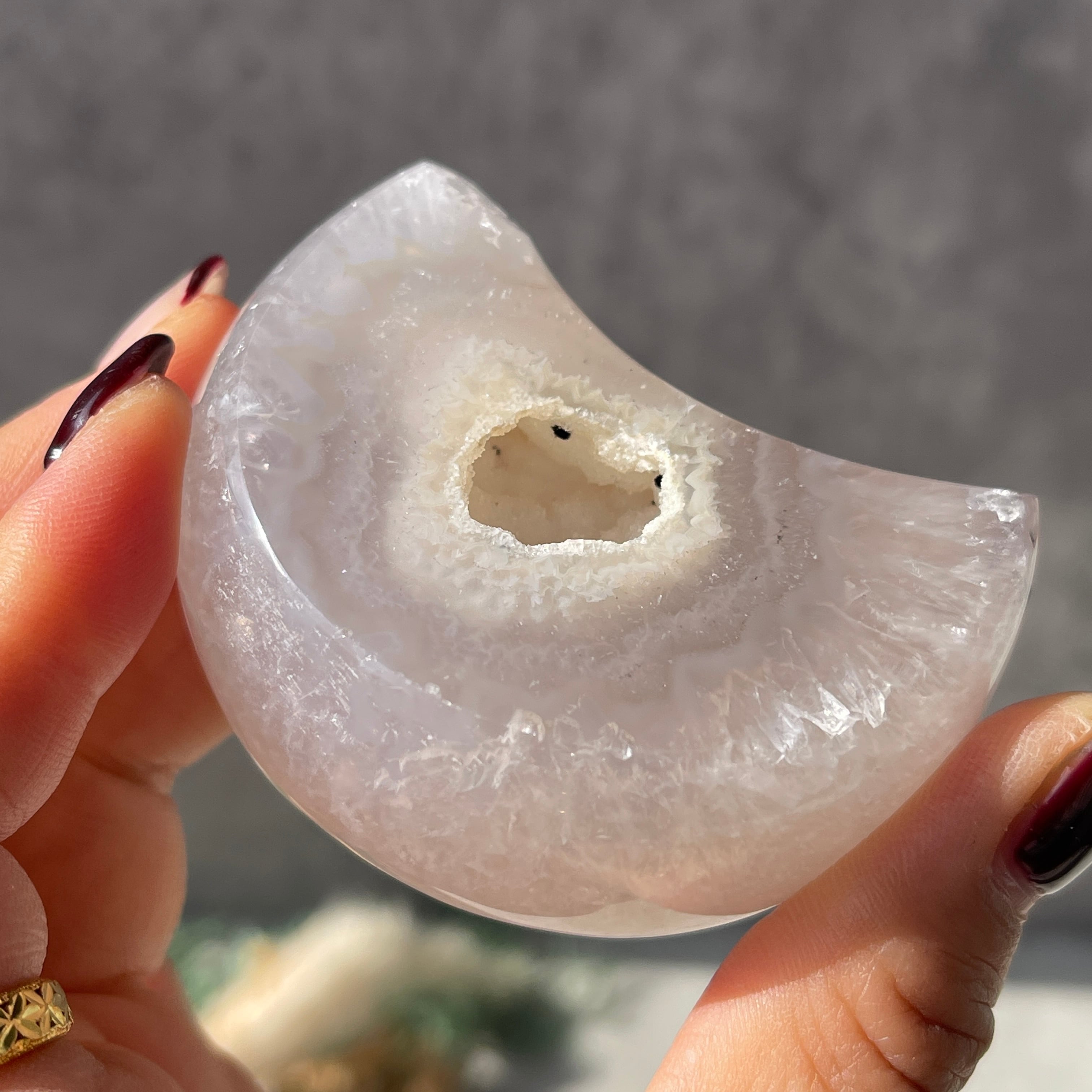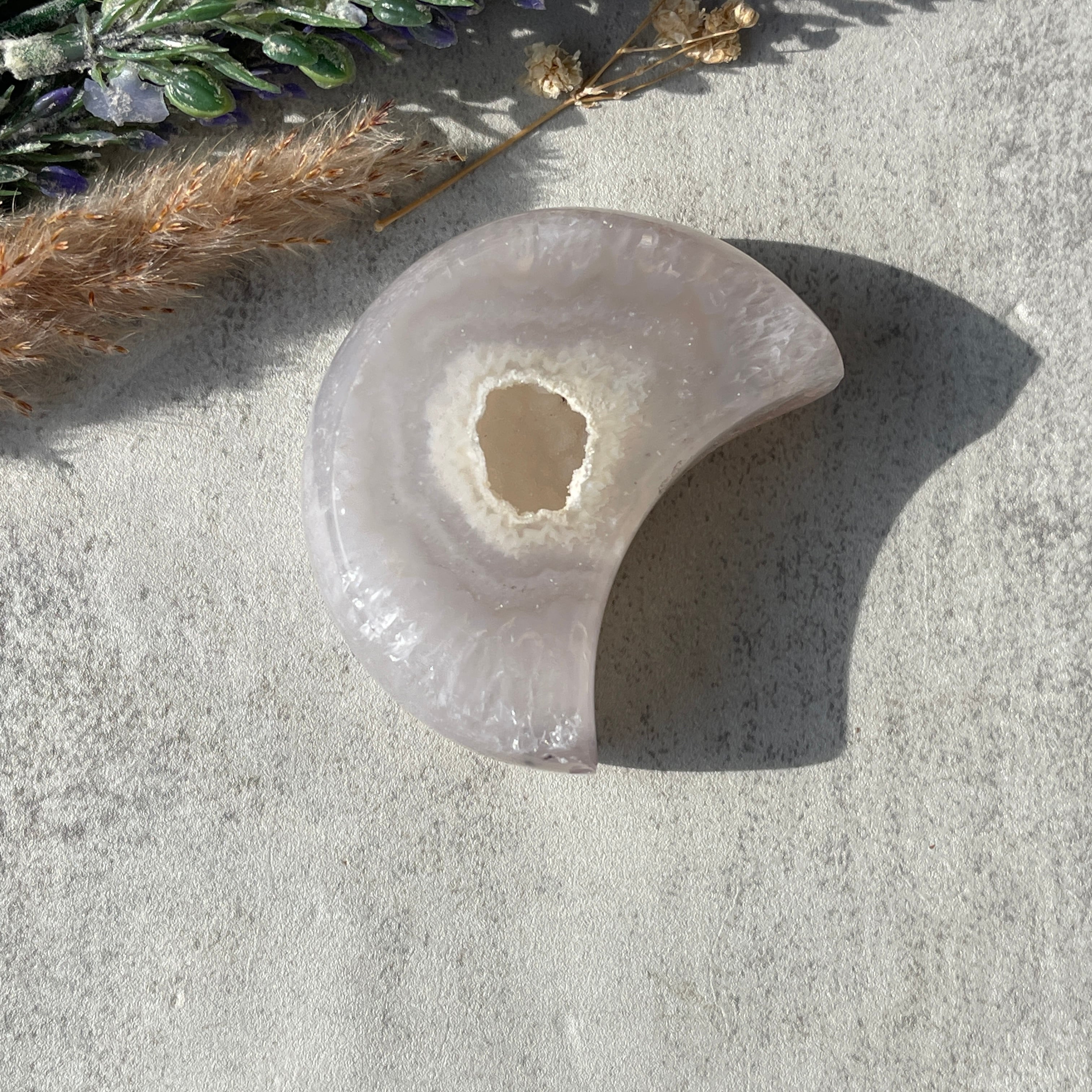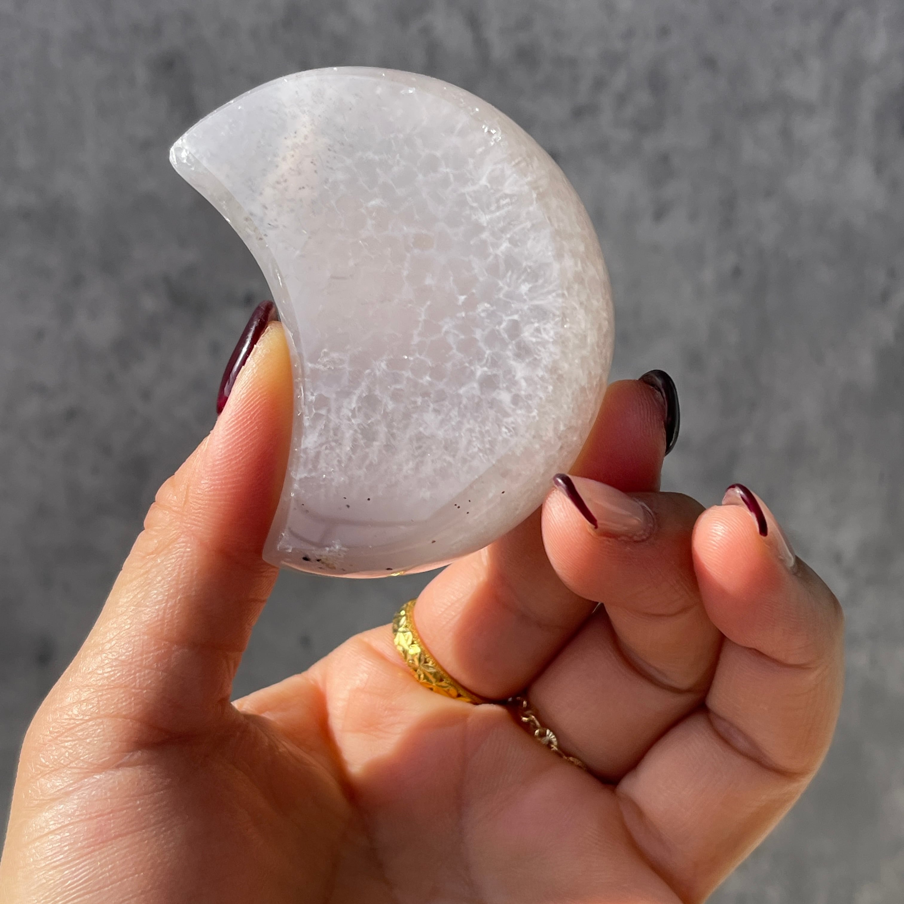 ブラジル産のアゲート(瑪瑙)を、月の形に磨き上げたムーンシェイプです。