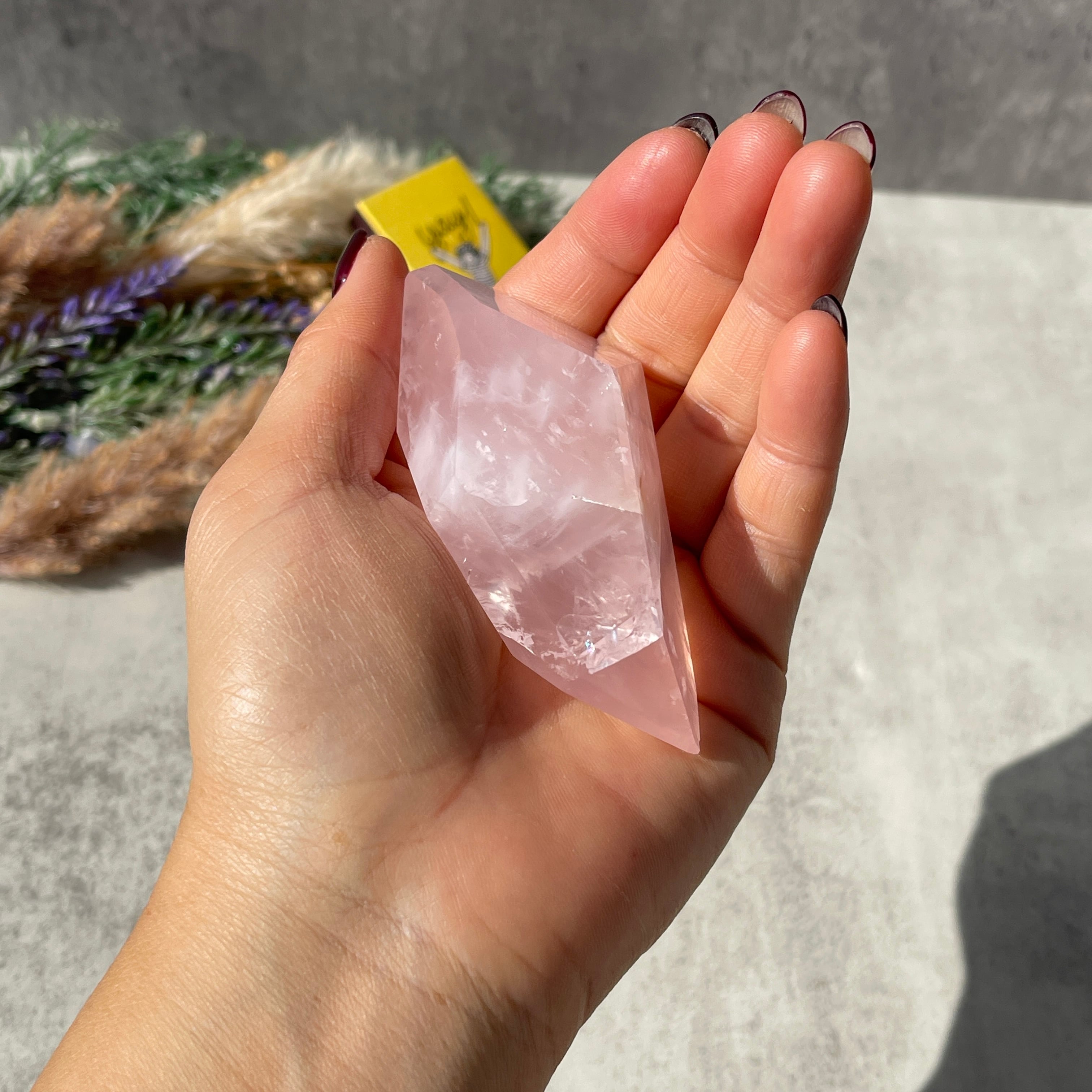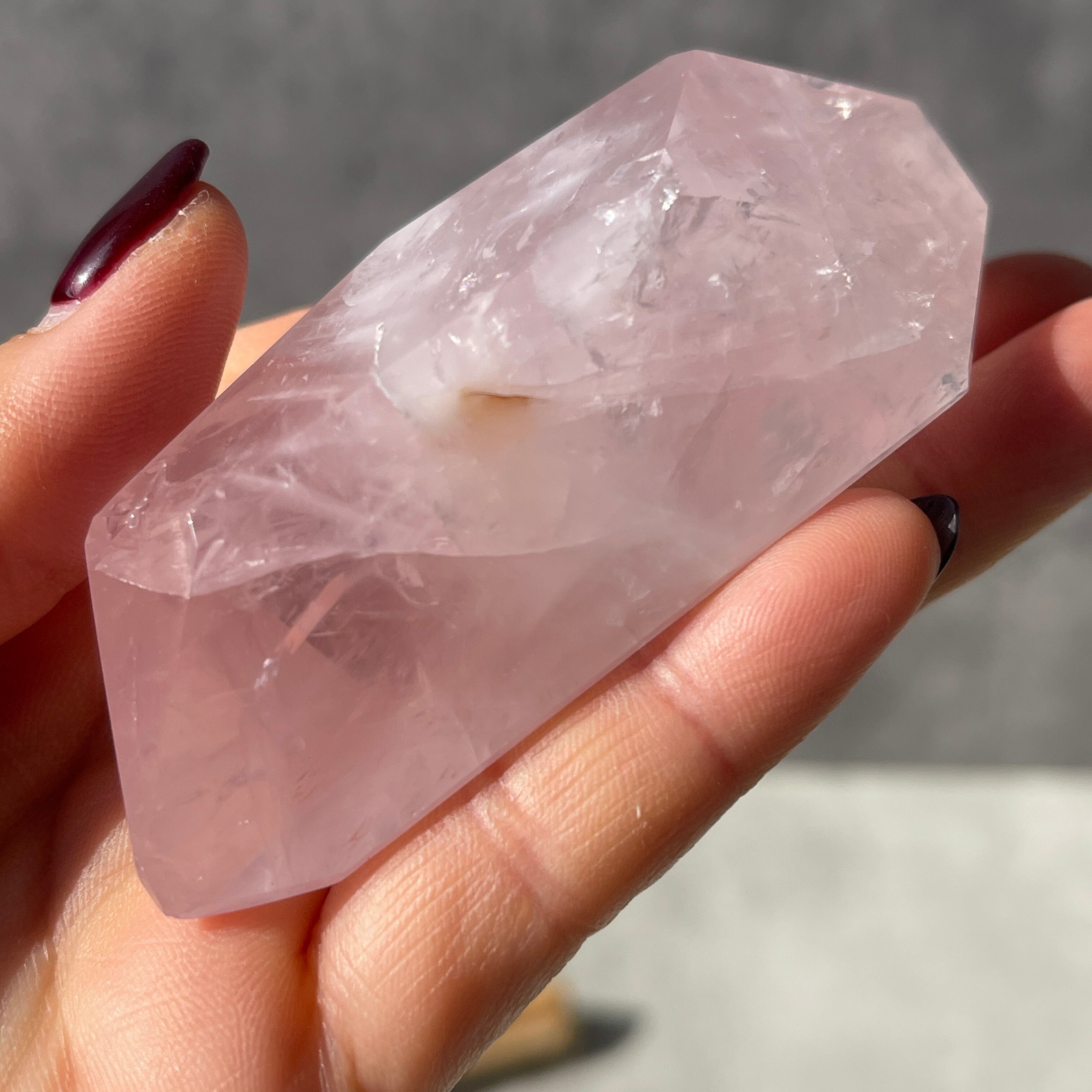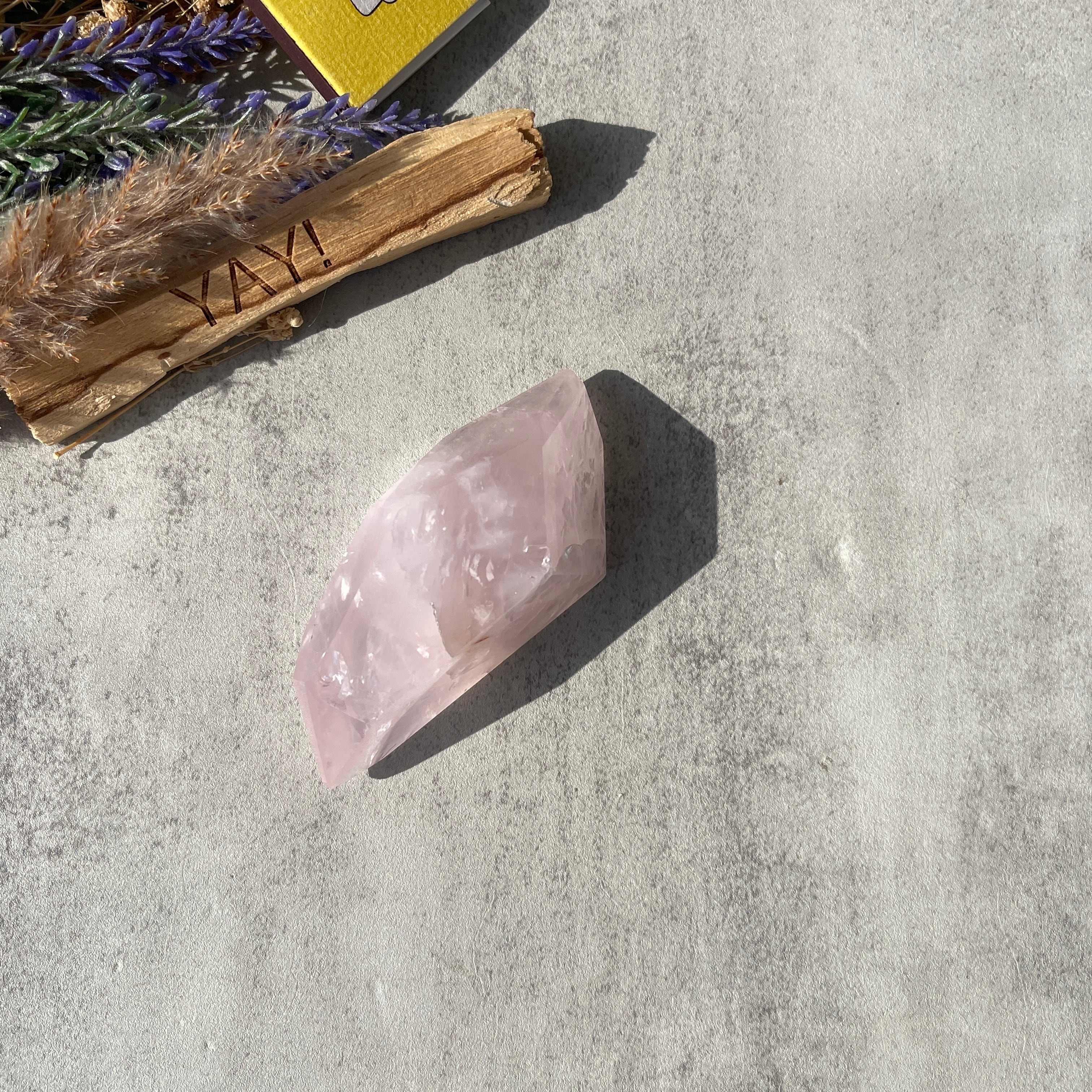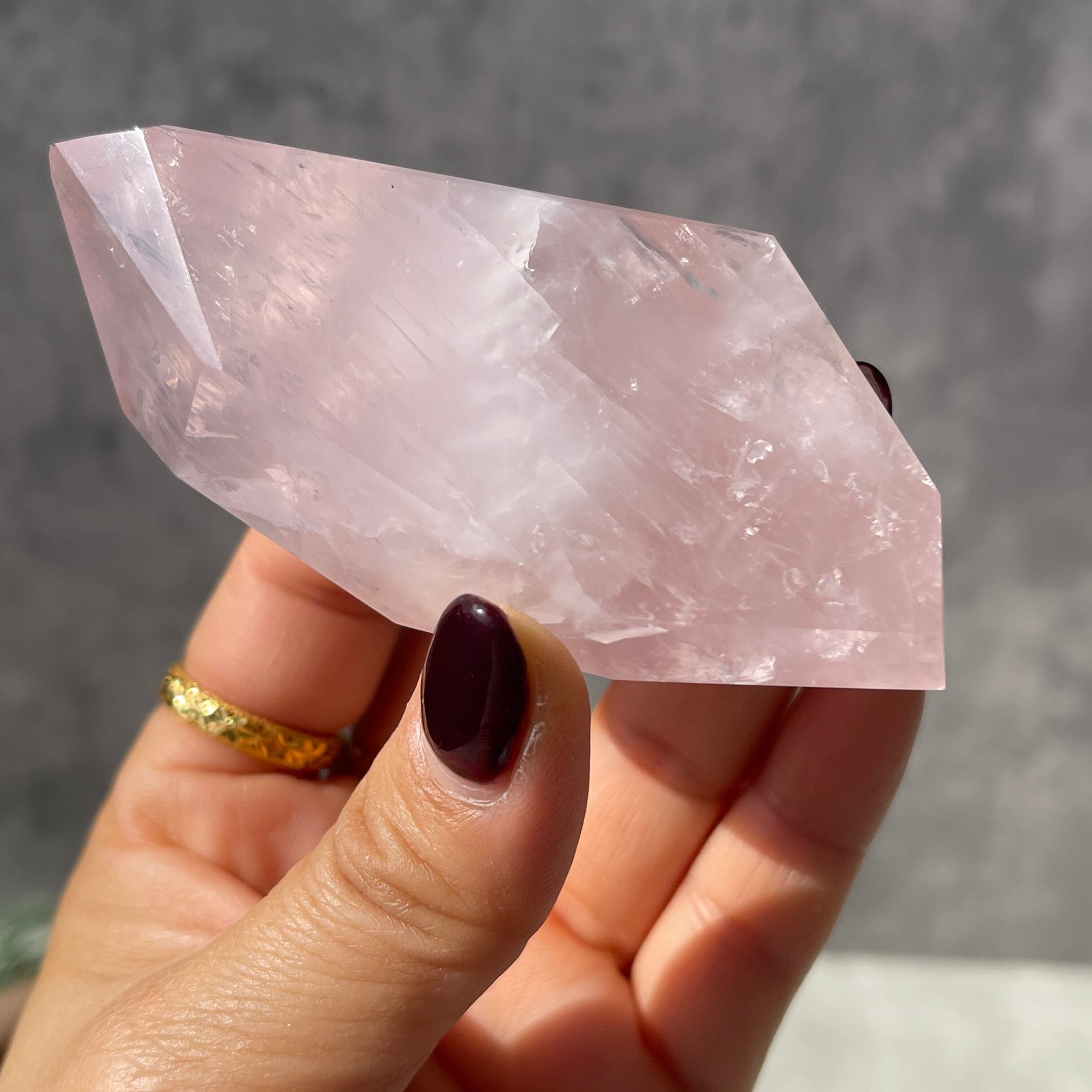 ブラジル・バイーア州産のローズクォーツを、握りやすいサイズ感で仕上げたポリッシュポイントです。