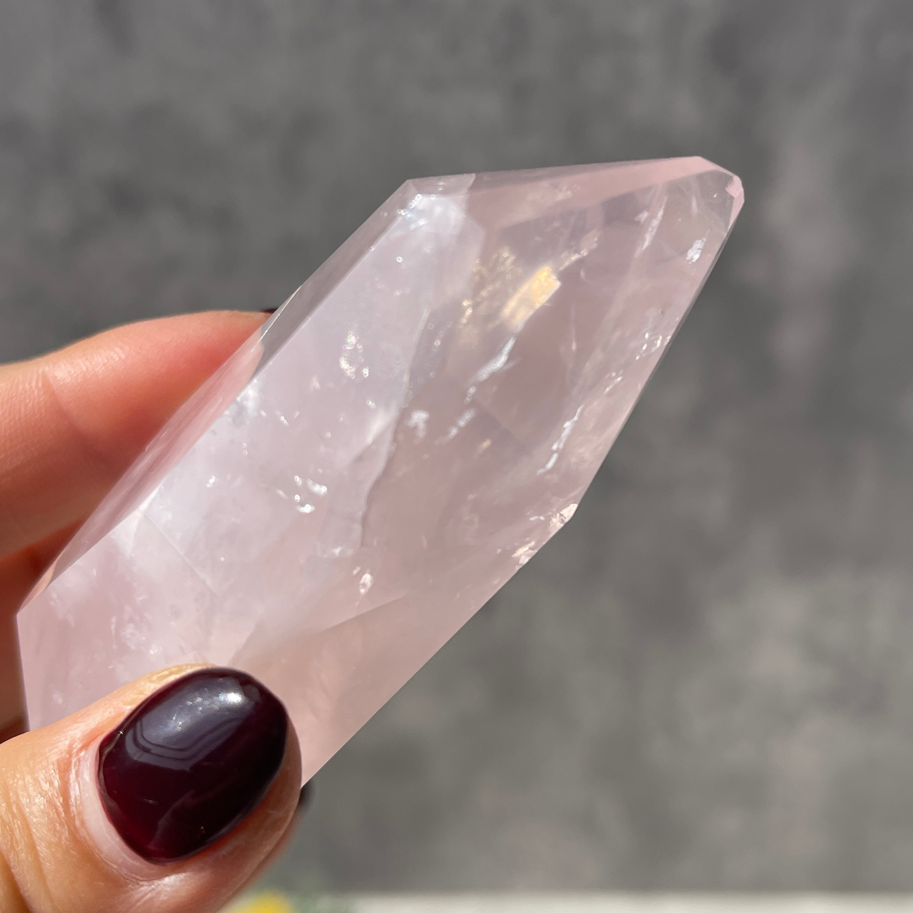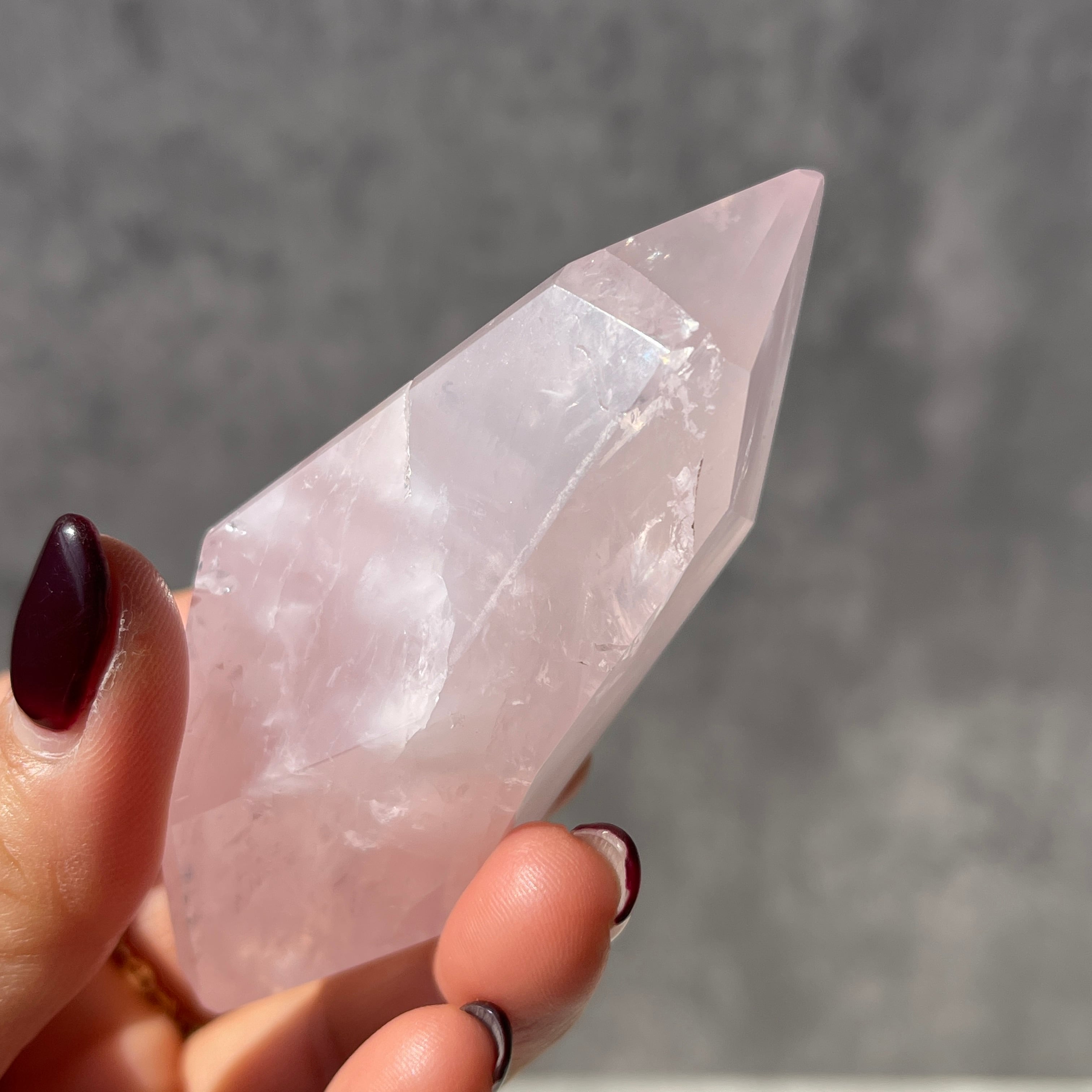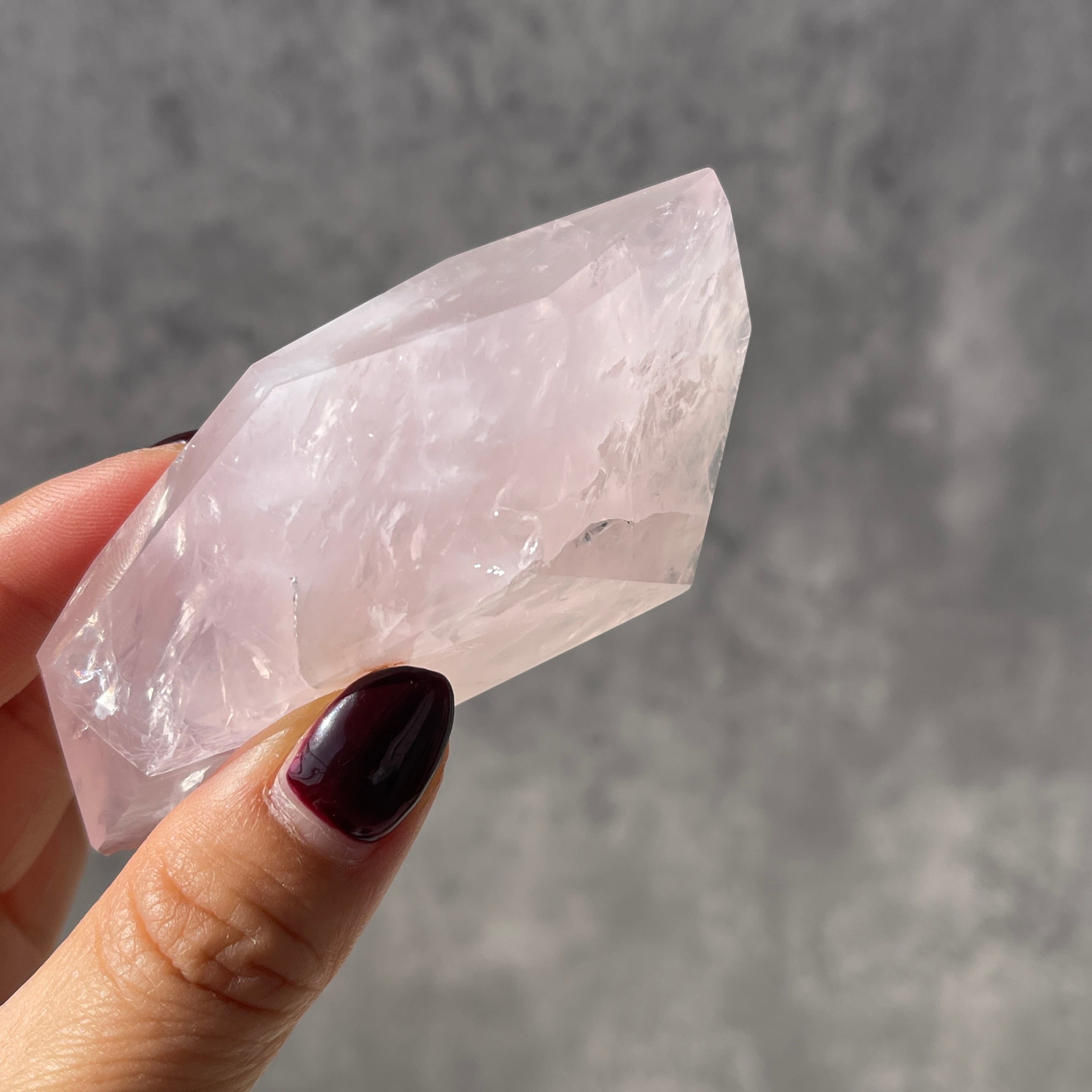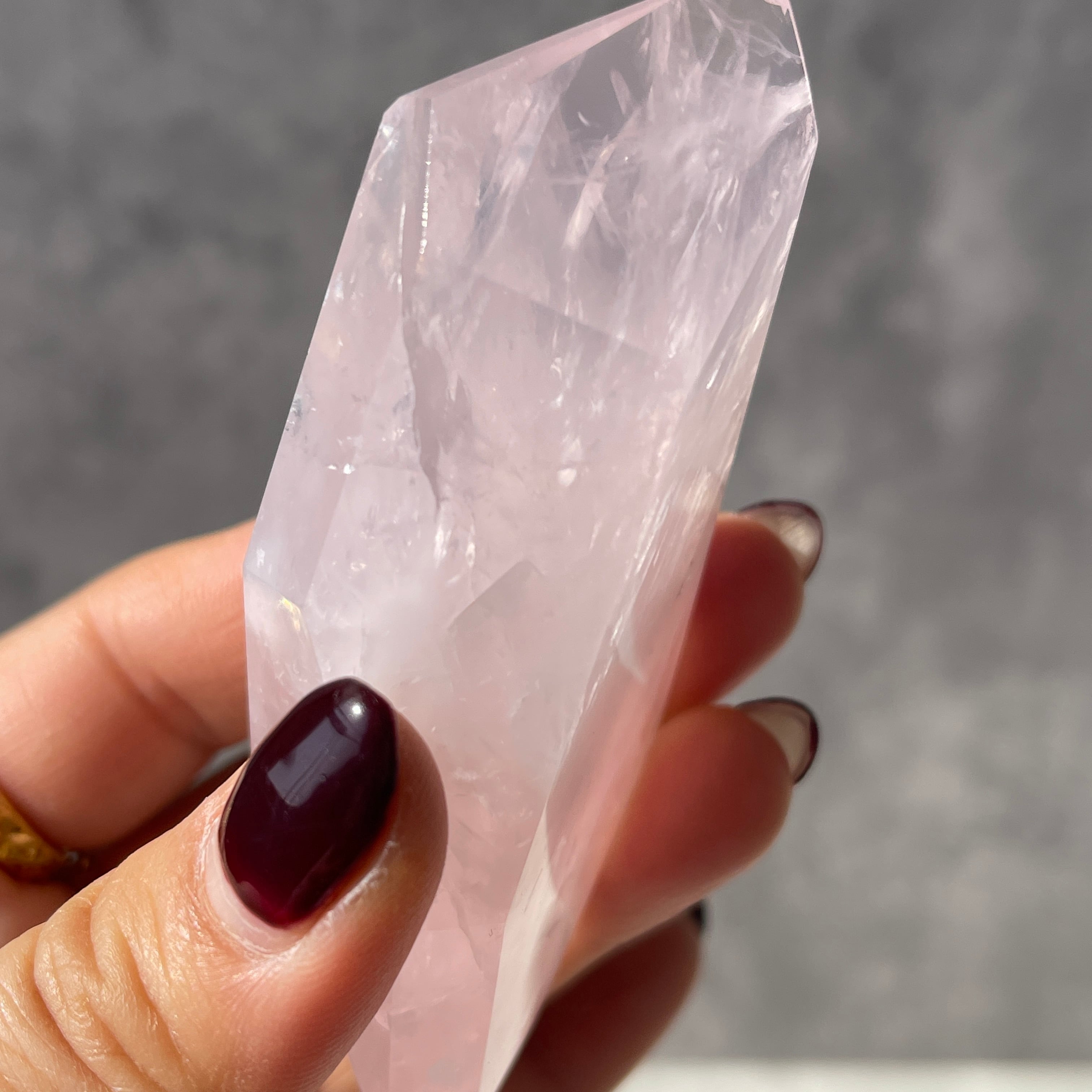 ブラジル・バイーア州産のローズクォーツを、握りやすいサイズ感で仕上げたポリッシュポイントです。